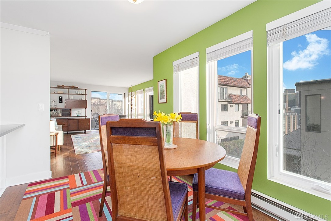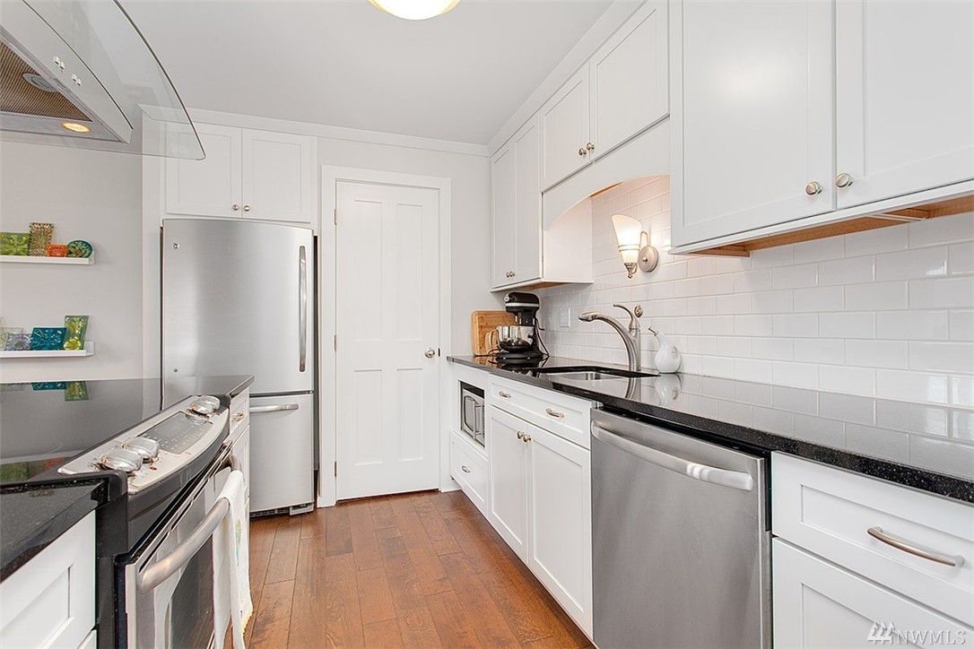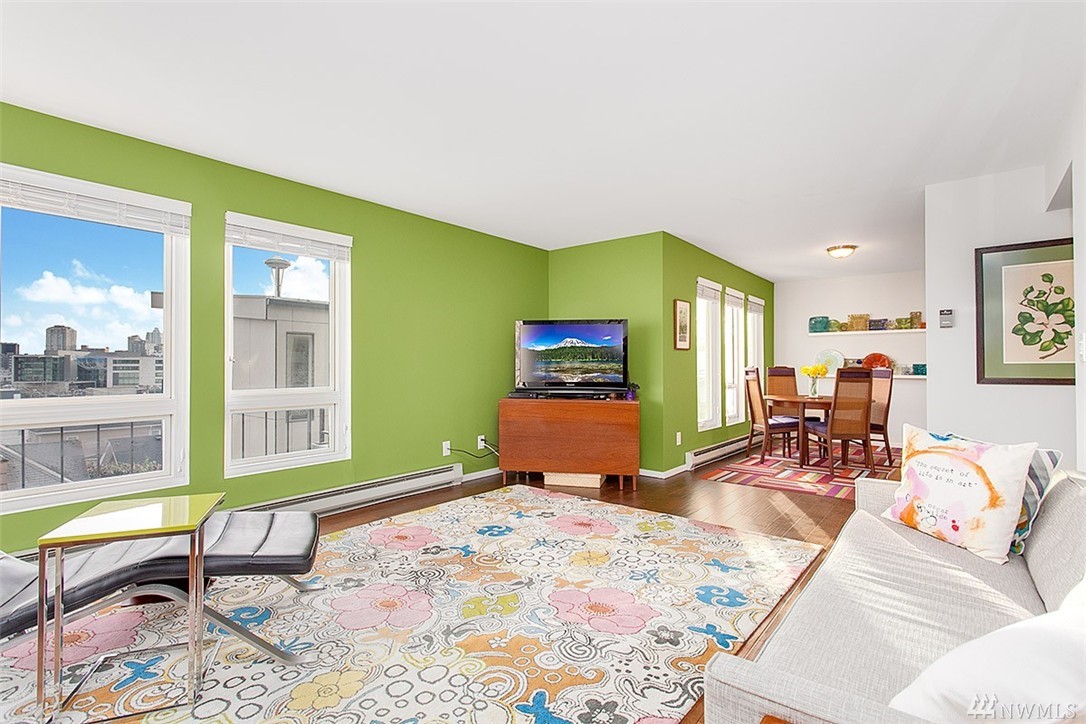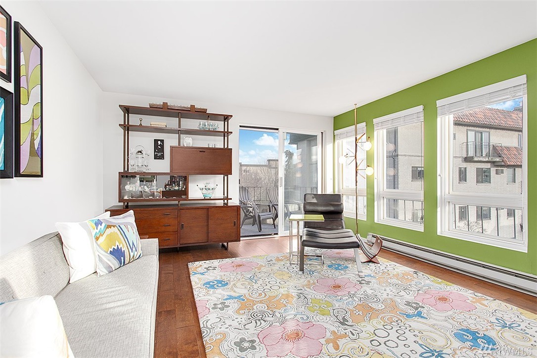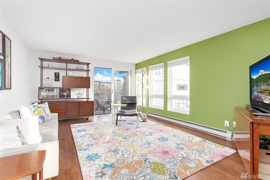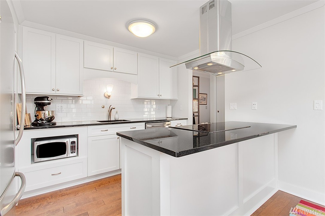 Incredible opportunity in this light & bright Vuewind Condo in Queen Anne! So many things to love & highlights include wide plank hardwds, flr to ceiling windows, private balcony, thoughtful flr plan & stylish finishes throughout. Updated kitchen features ss appliances, granite counters tile backsplash & bright white cabinetry.In unit w/d, dedicated parking, addnl storage, low monthly dues & pet friendly bldg. Enjoy the best of QA's dining & entertainment. Easy access to Downtown, SLU & buses.