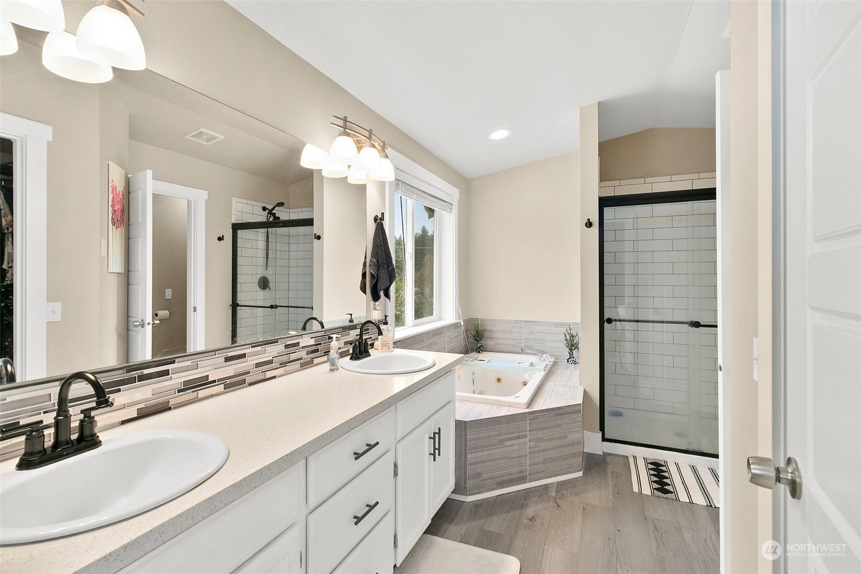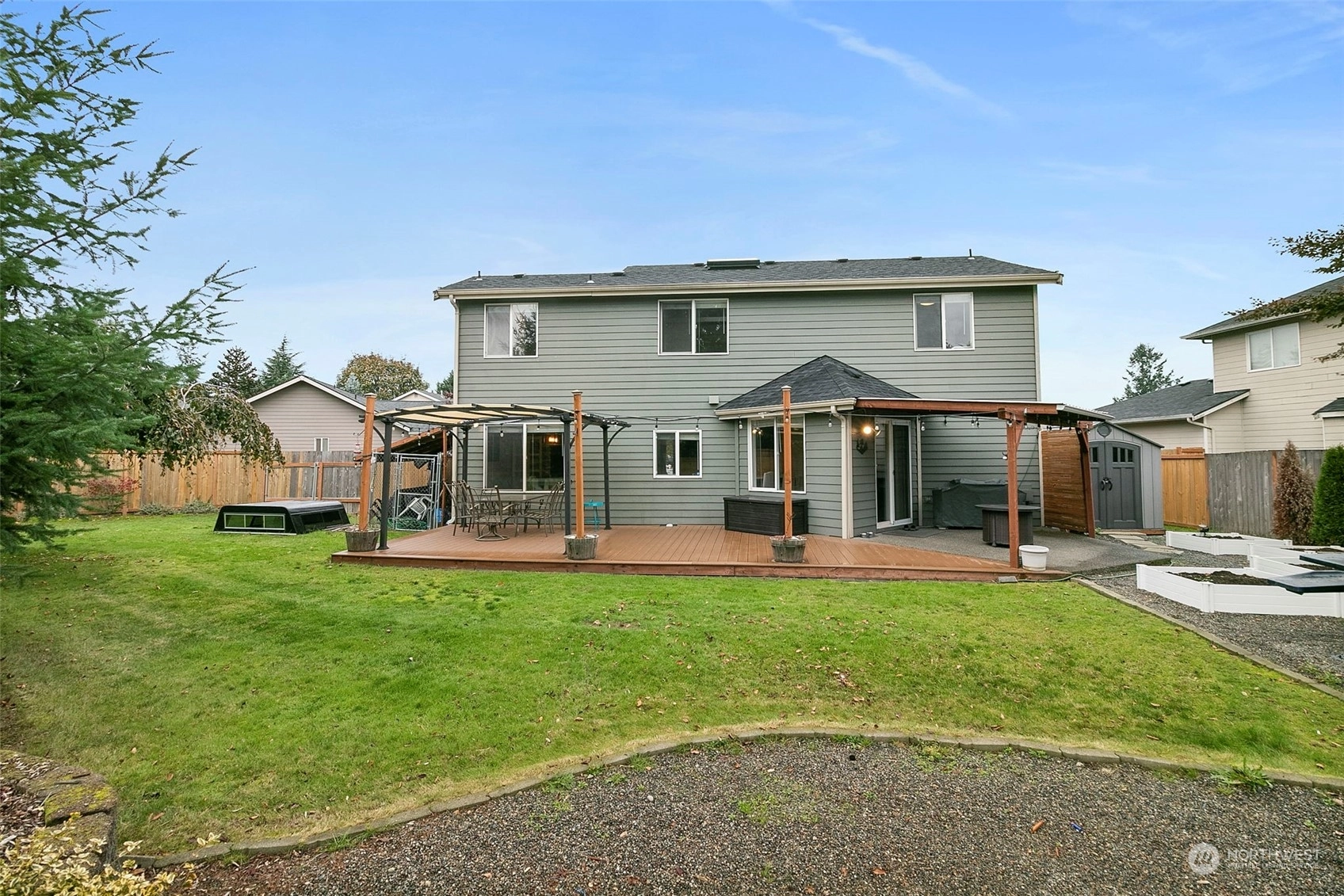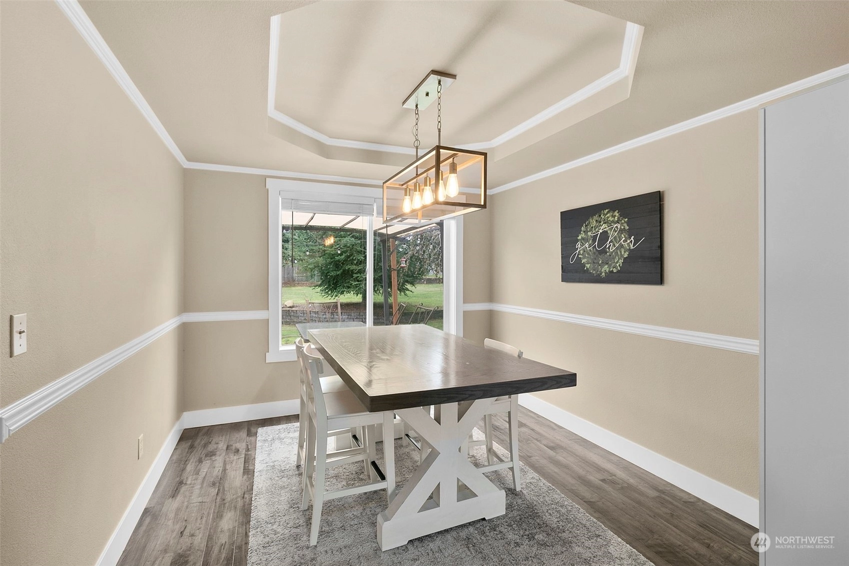 Welcome to your perfect home in Puyallup tucked in a quiet cul-de-sac on a large expansive lot! This stunning residence boasts an upgraded kitchen with modern appliances, a breakfast bar & beautiful quartz countertops. Admire the elegant woodwork and arched entryways throughout the home. Gather with guests in welcoming dining room featuring decorative wainscoting & coffered ceiling. This home offers an ideal space for the perfect home office. Outside, enjoy the vast .388-acre lot, offering endless possibilities for gatherings, bon-fires, garden space and more. Plus, convenience is key, with shopping, dining, and restaurants just moments away. Embrace the ultimate blend of comfort and style in this charming property. Your dream home awaits!