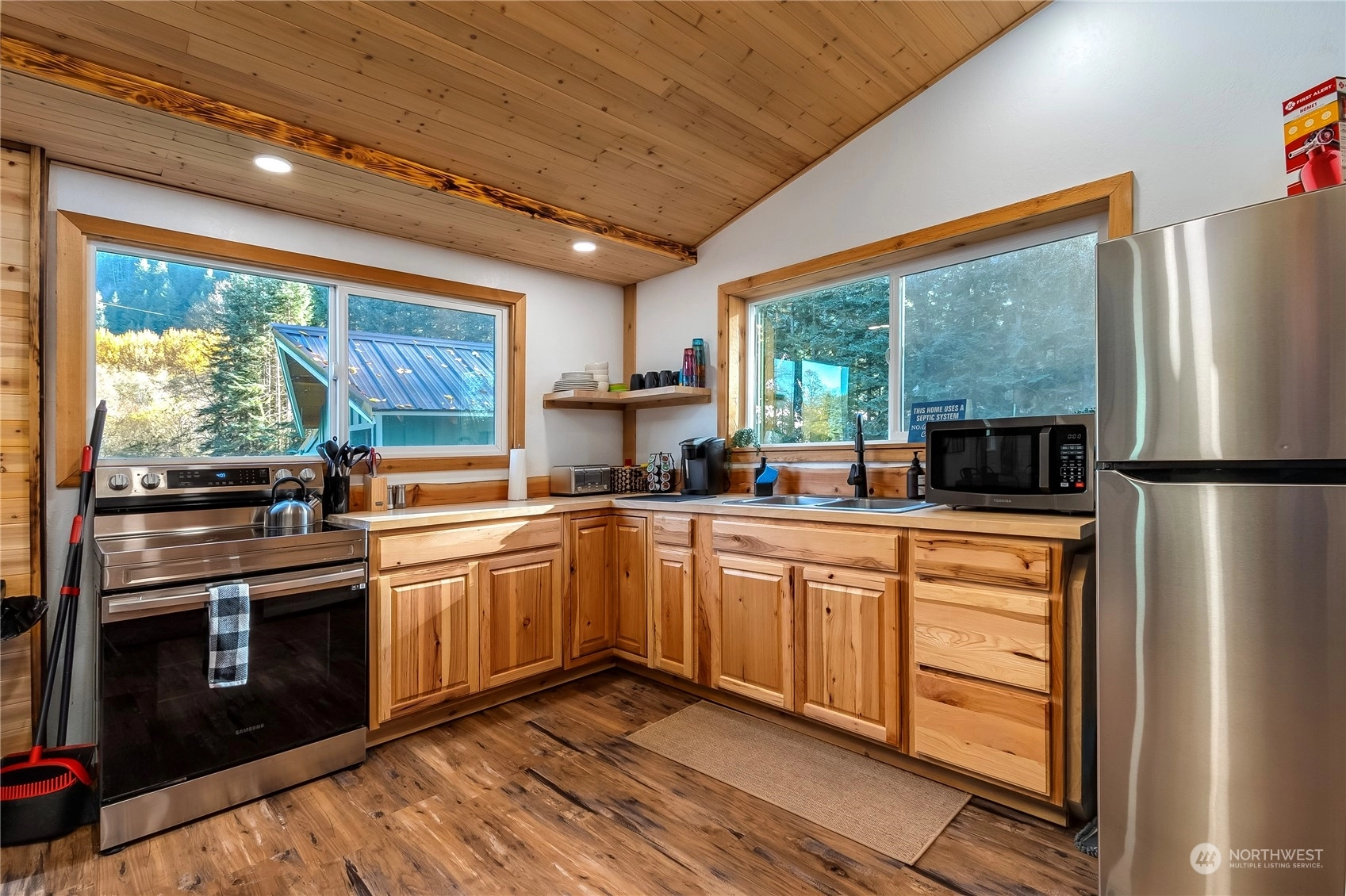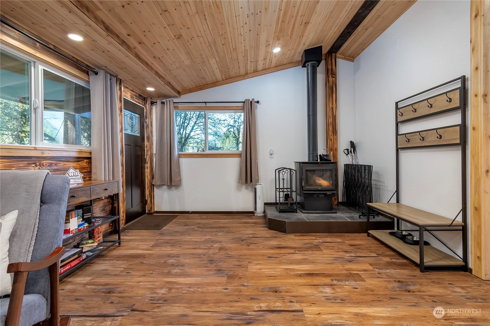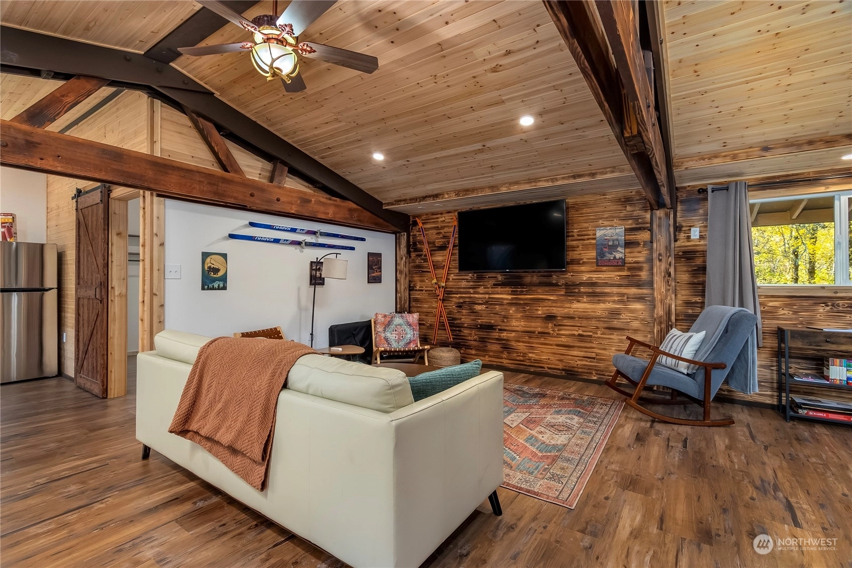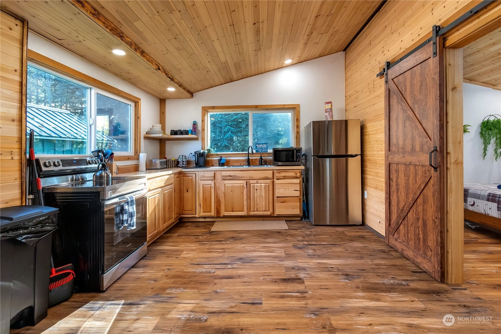 Modern, rustic single level cabin on 2.40 acres just minutes from Packwood. Exposed beams & custom wood detailing throughout put this little cabin over the top. Open floor plan with updated kitchen and bath make this a perfect solitary get-away or bring a group. Single king size bedroom plus a detached bunkhouse with 2 queen beds. Bringing an extra crowd? RV parking and hook-ups are available. Easy access just off the highway but a great tree buffer lends to your privacy. Relax in the custom cedar soaking tub to take in the foothill views, gaze at the stars and watch the wildlife pass by. Covered wood fire pit & spacious deck are perfect for outdoor entertaining. Successful, highly rated short term rental! Short trip to White Pass!