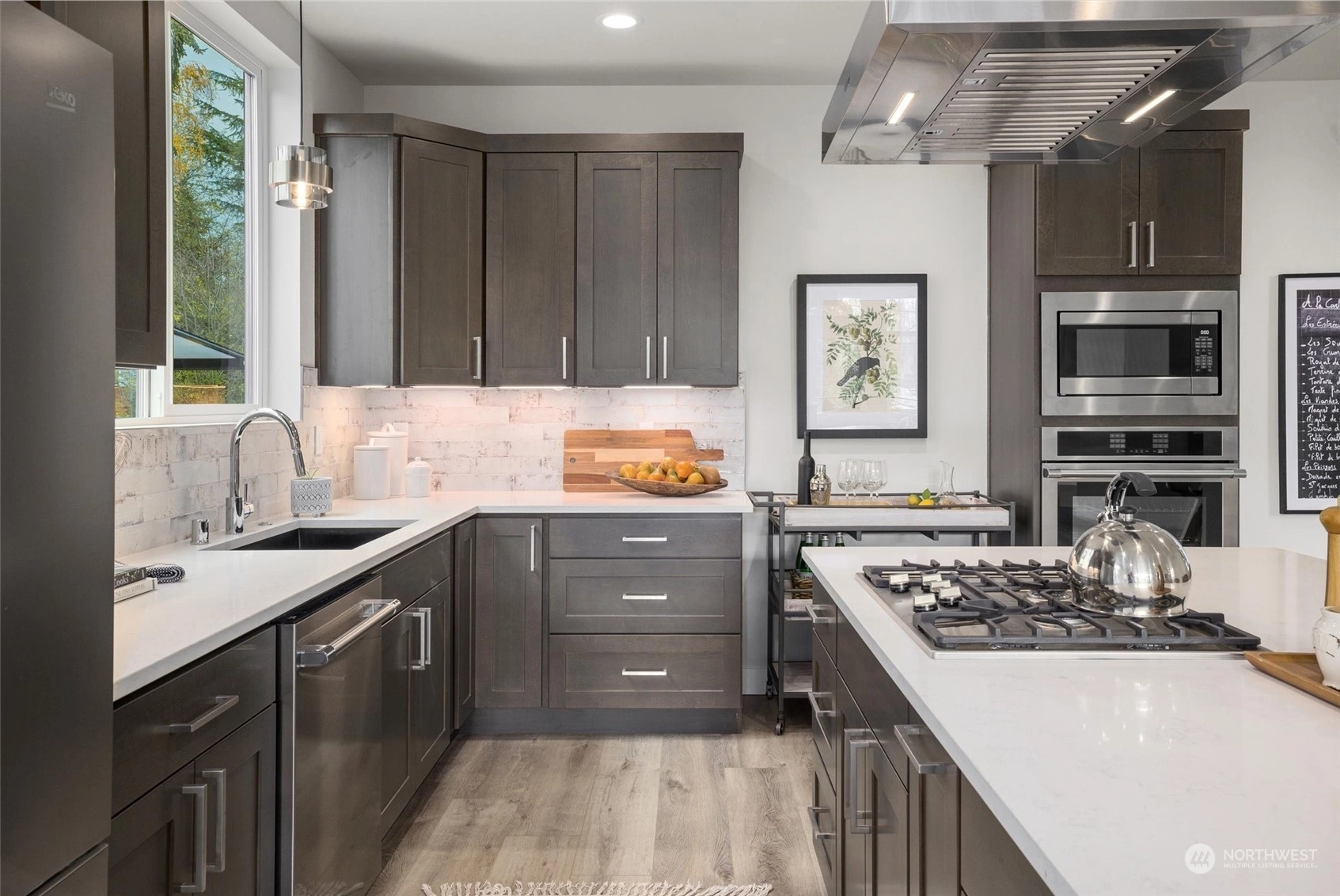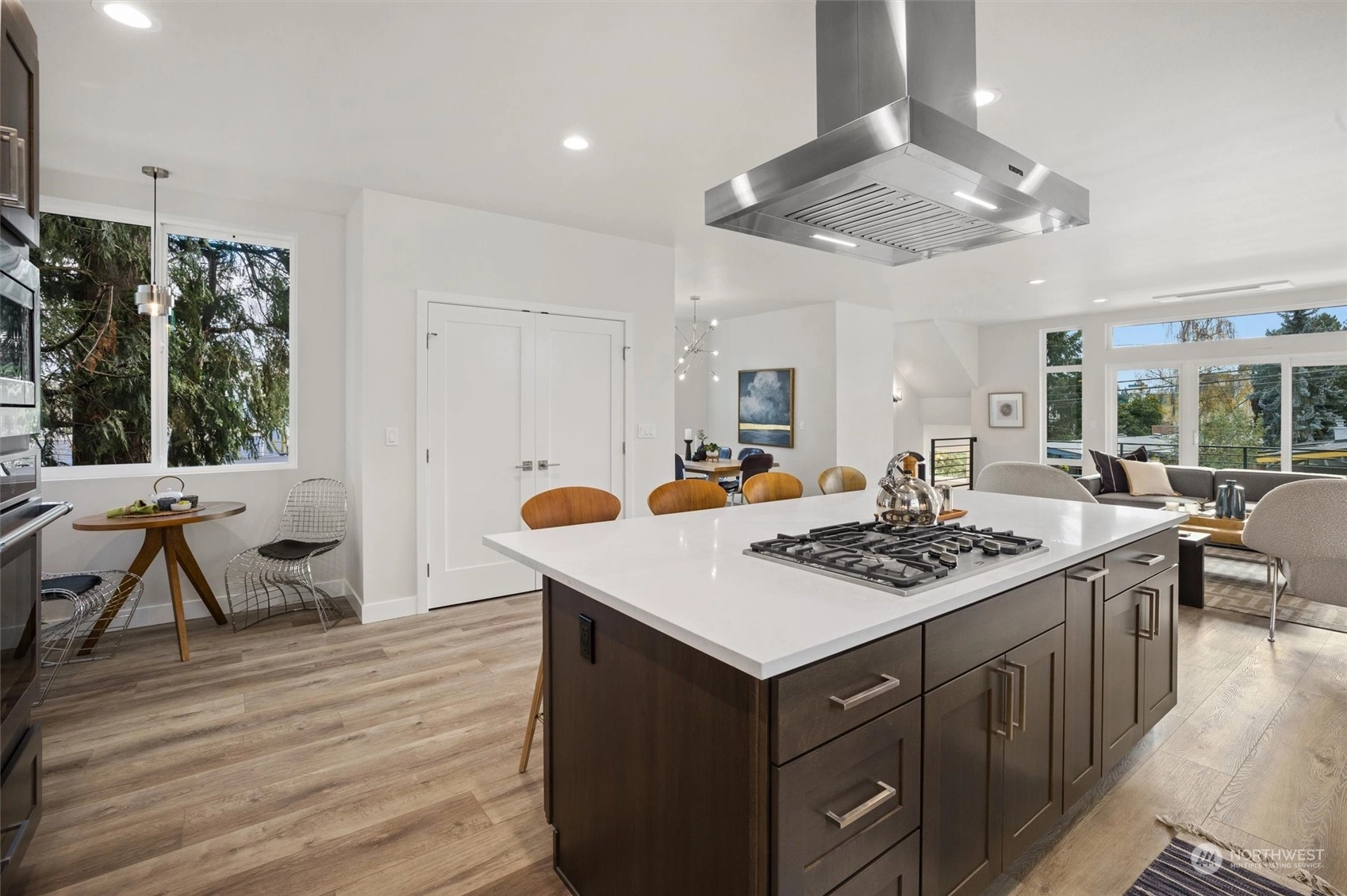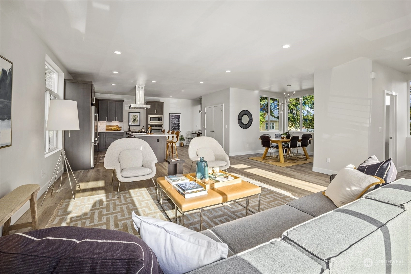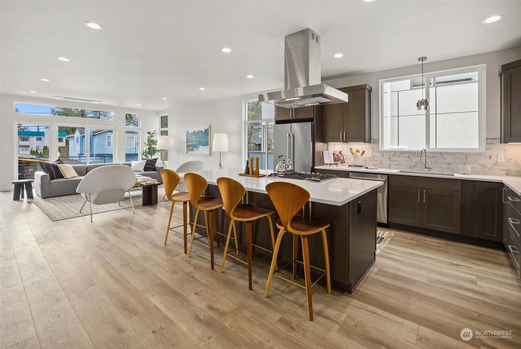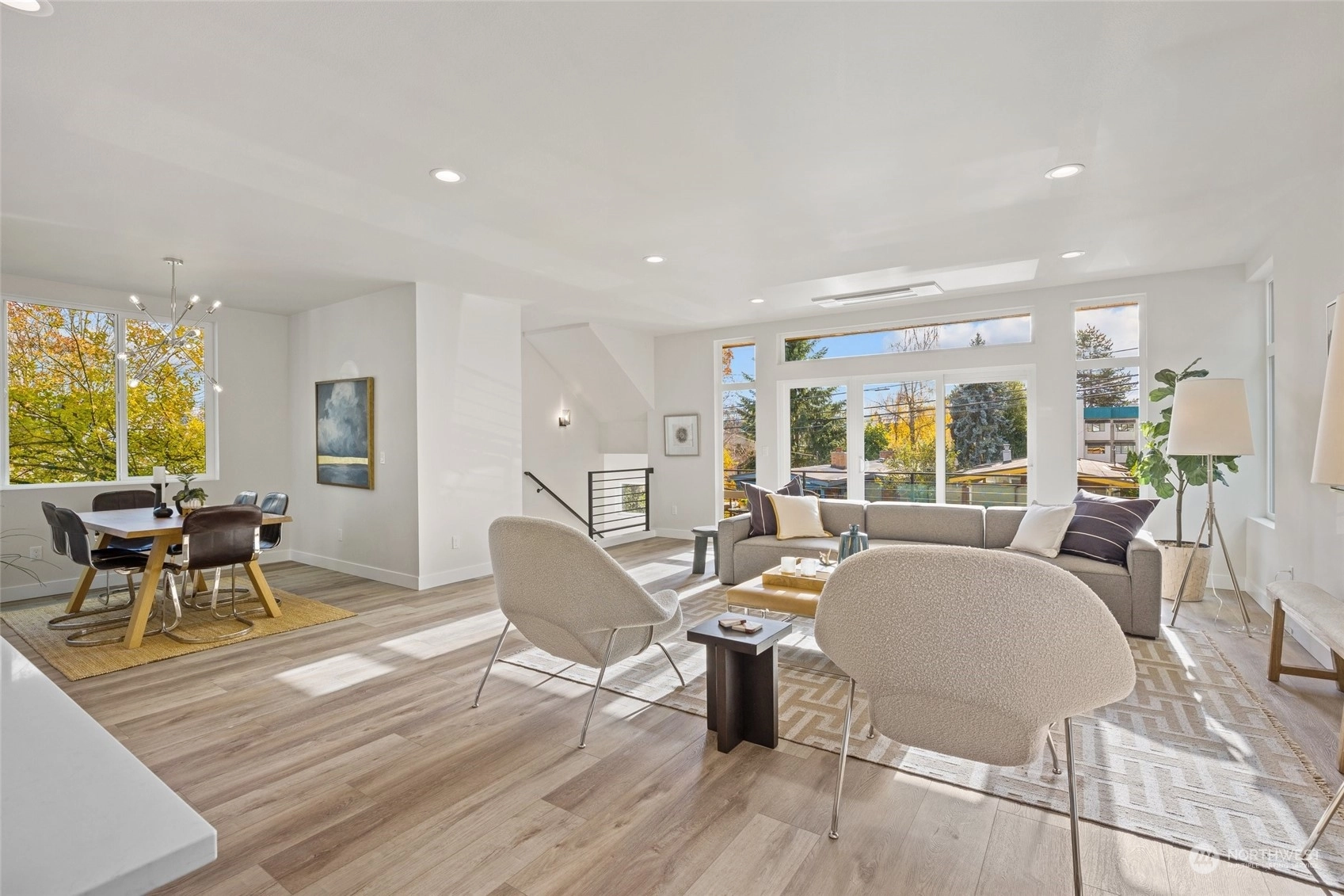 Presenting a thoughtfully designed home for contemporary living, this new Maple Leaf residence is one to see! Offering a gracious floor plan with tons of natural light, it instantly feels like you're home. Featuring 4 bdrms, 4 bthrms, plus a sizable rooftop deck w/ territorial views. Noteworthy features: deck off the living room, large pantry, reading nook, grand primary suite with vaulted ceilings. EV-ready 2-car tandem garage. This home is situated in the vibrant heart of NE Seattle, providing easy access to I-5, Green Lake, Maple Leaf Reservoir Park, Dahl Field, University of Washington, University Village, and Seattle Children's Hospital. Nearby Pickleball Courts, Macrina Bakery! Walking distance to Express Transit to Downtown Seattle.