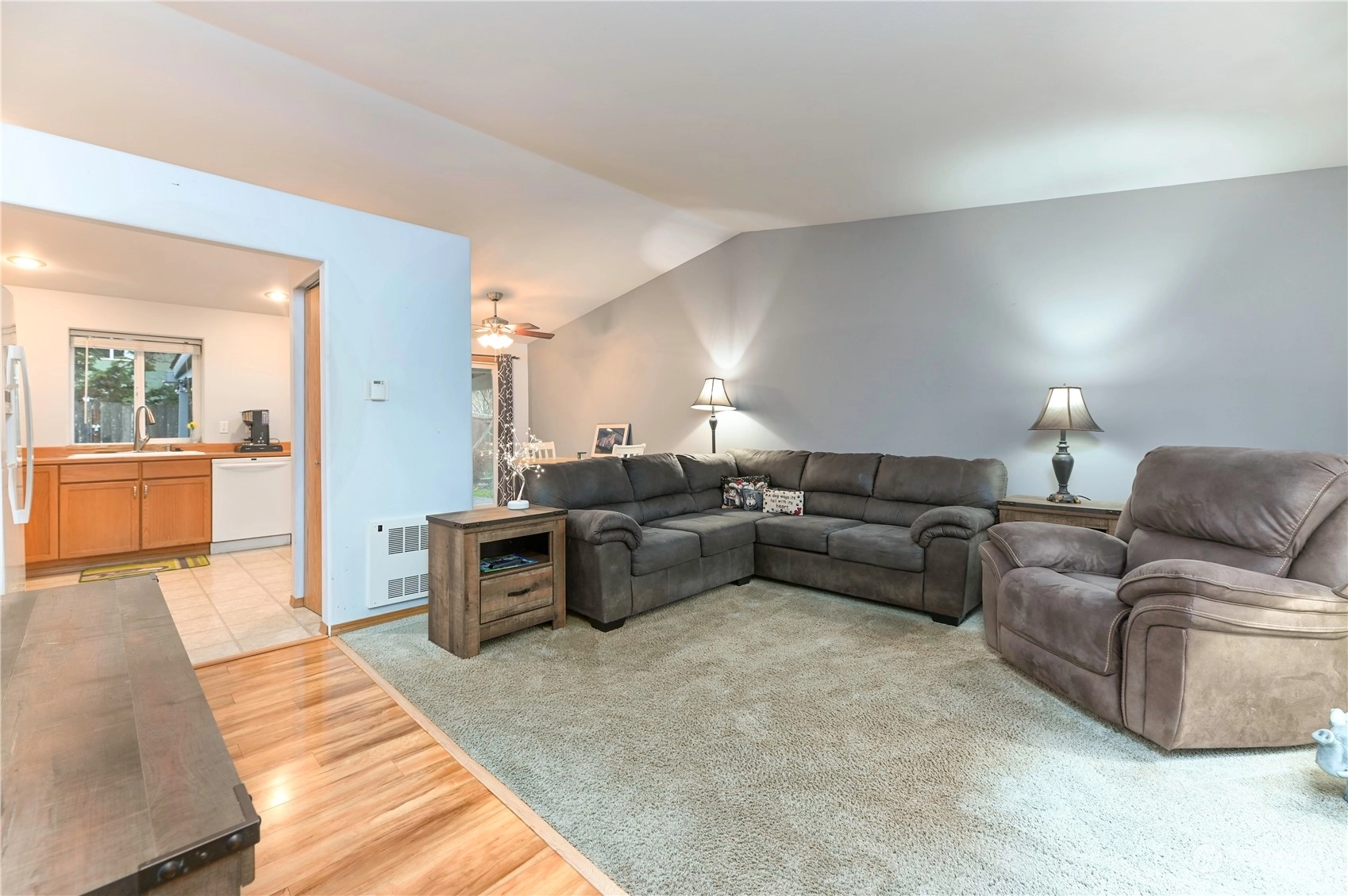 Eagle Ridge RAMBLER!! This warm and cozy home features vaulted ceilings in the spacious living areas. 3 bedrooms and 2 bathrooms including a owners suite with attached bath. Light and bright kitchen. Fully fenced yard and mature landscape, great for entertaining! Covered deck for awesome year round use! 2 car garage. New 50 year roof with transferable warranty. All appliances stay. Neighborhood trails and parks. Close to highway 2. Close to lots of winter recreational activities!! Don't miss out on this one!!