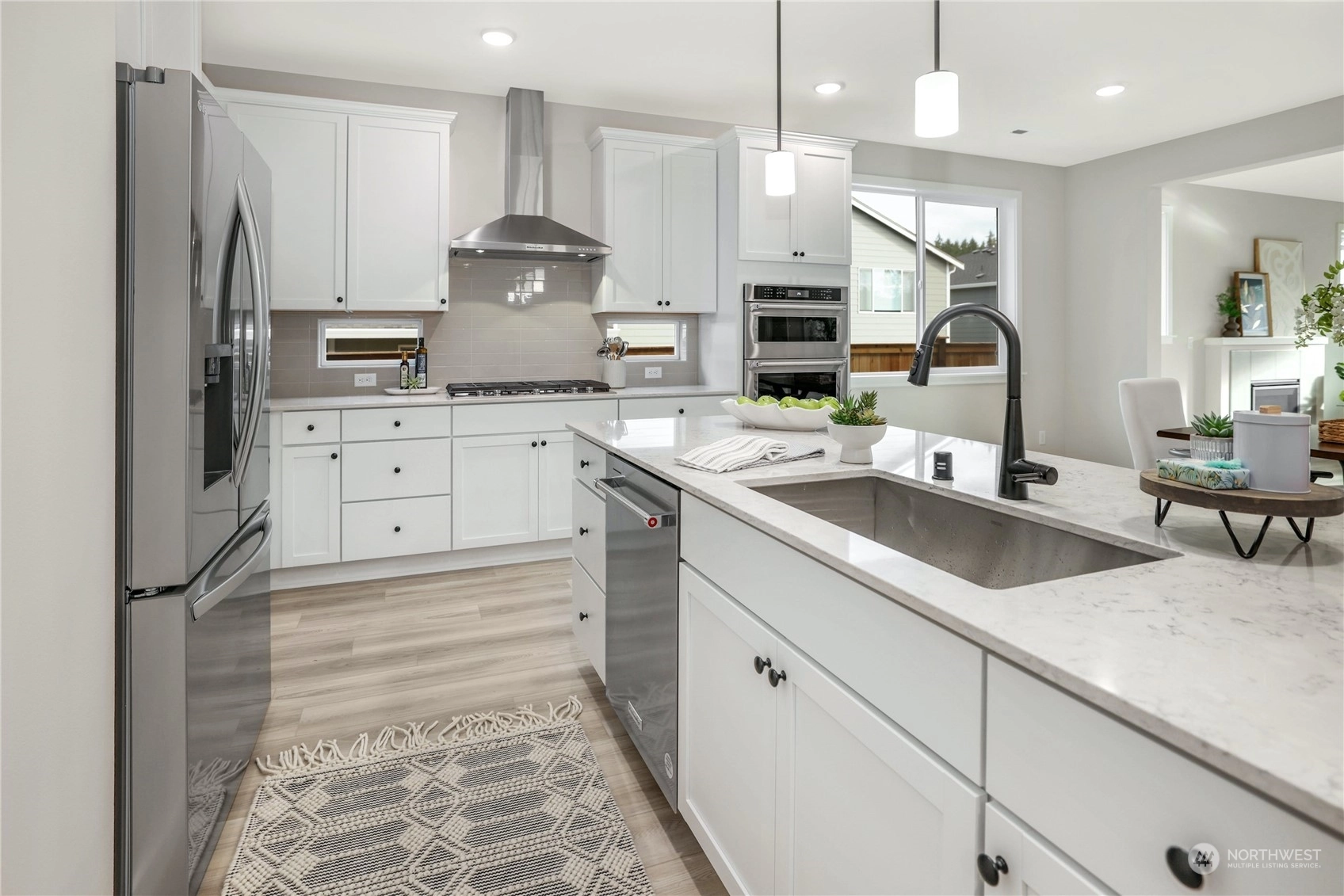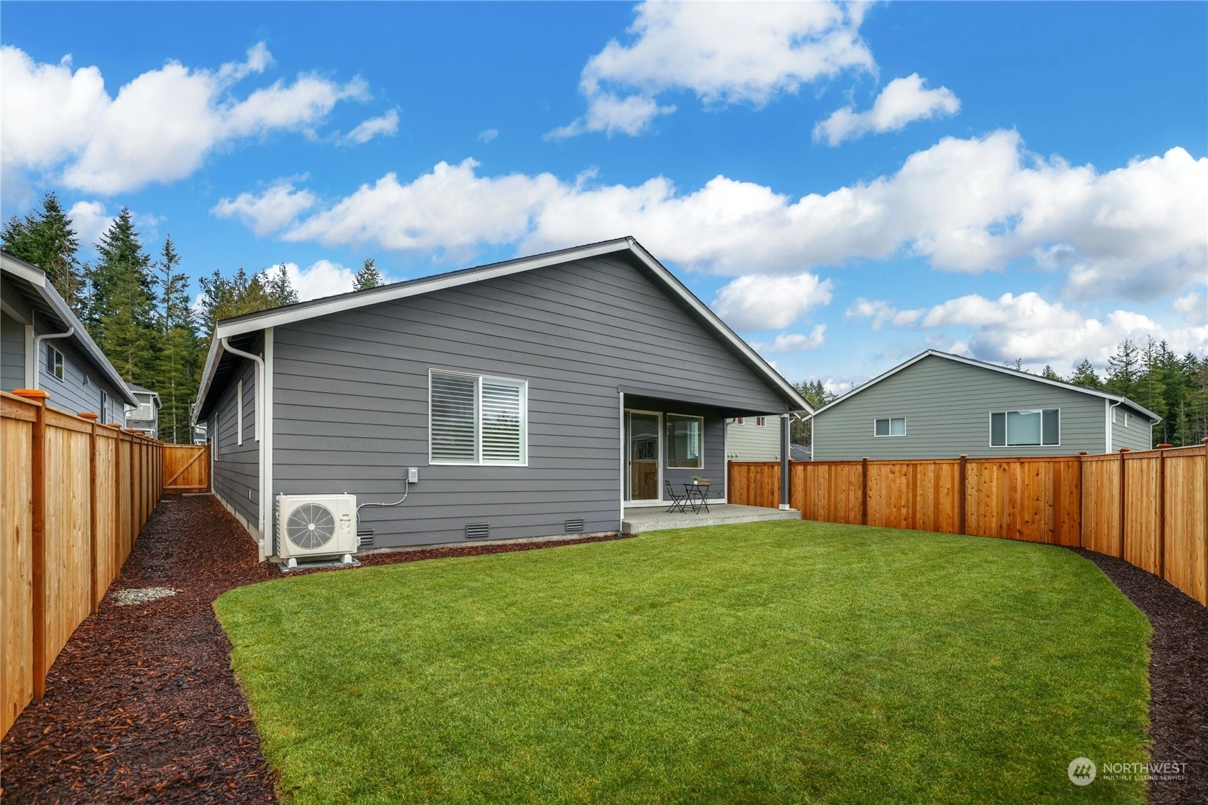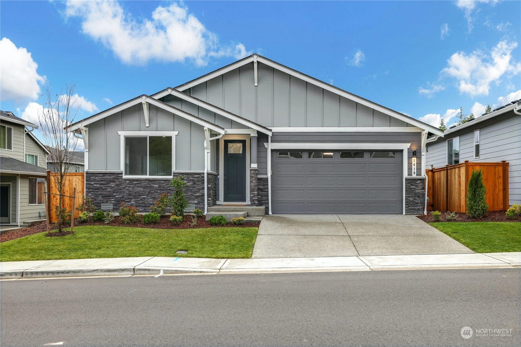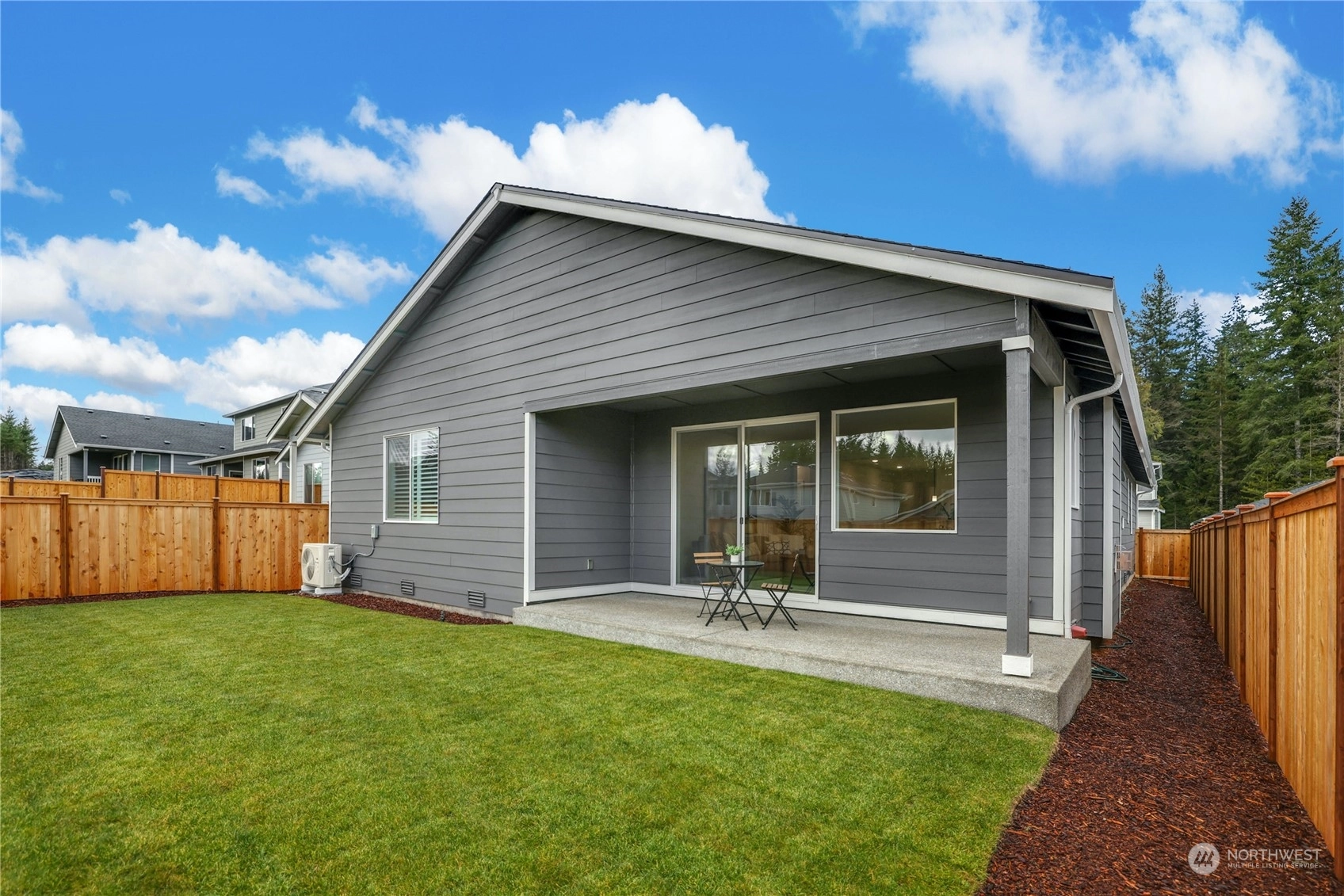 GORGEOUS MOVE-IN READY RAMBLER! 2,237SF, 3BR/2BA sunny home boasts a light and airy floor plan with vaulted 9’ ceilings! Gourmet island kitchen with white maple soft close/dovetail cabinets, full subway tile backsplash, gas cooktop, built-in wall oven, microwave + walk-in pantry. Living room with gas FP opens to a covered back patio. Huge primary BR boasts a spa-like bath with tiled shower/ bench & frameless glass shower door. Builder upgrades: Matte black fixtures, quartz countertops in kitchen & baths, BBQ gas stub@19' covered patio, wrapped interior windows, grass yard! Owner upgrades: fridge, epoxy garage floor, fenced yard, & plantation shutters! Near schools with easy commutes to Bangor, Keyport, PSNS, Kingston or Bainbridge ferries.