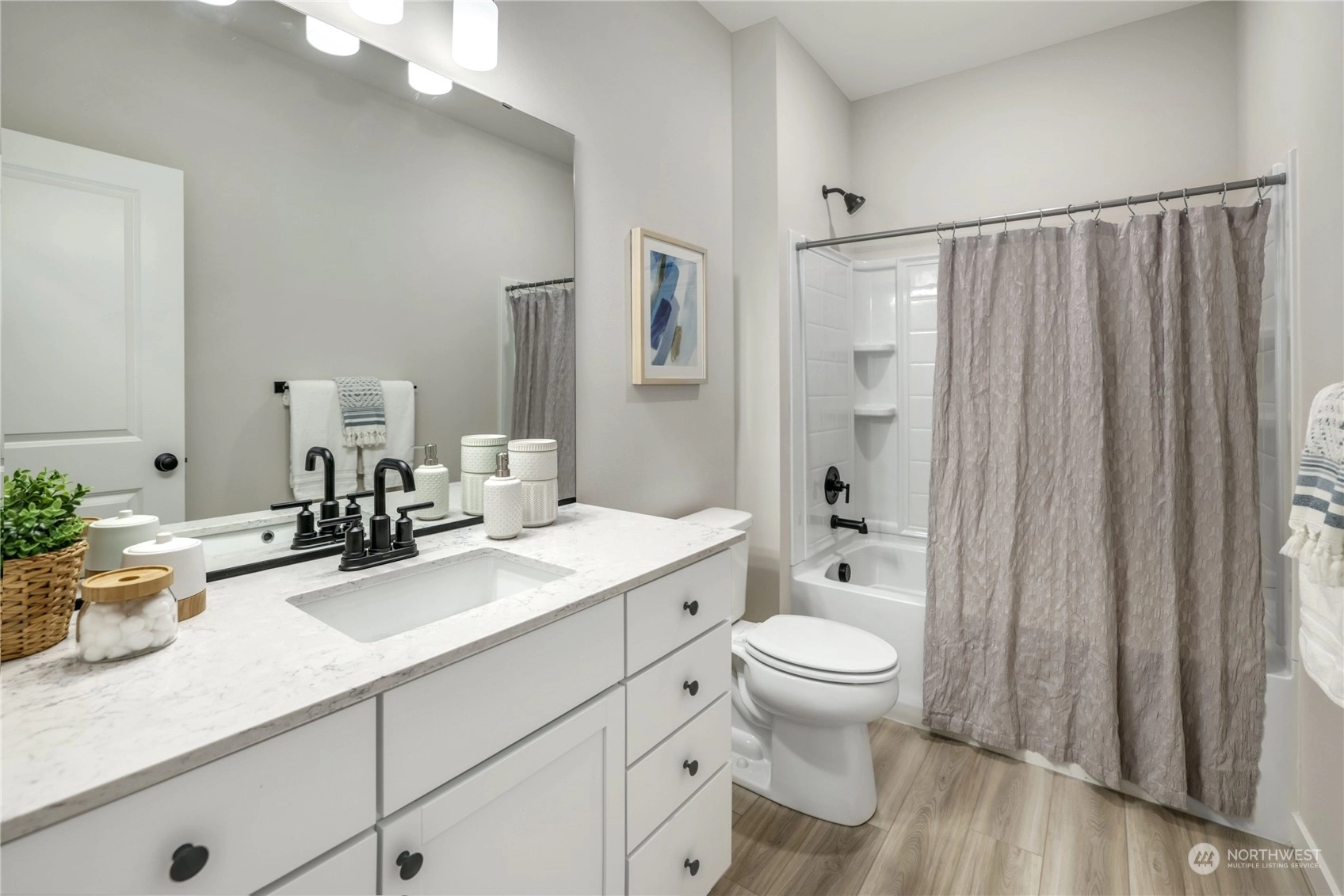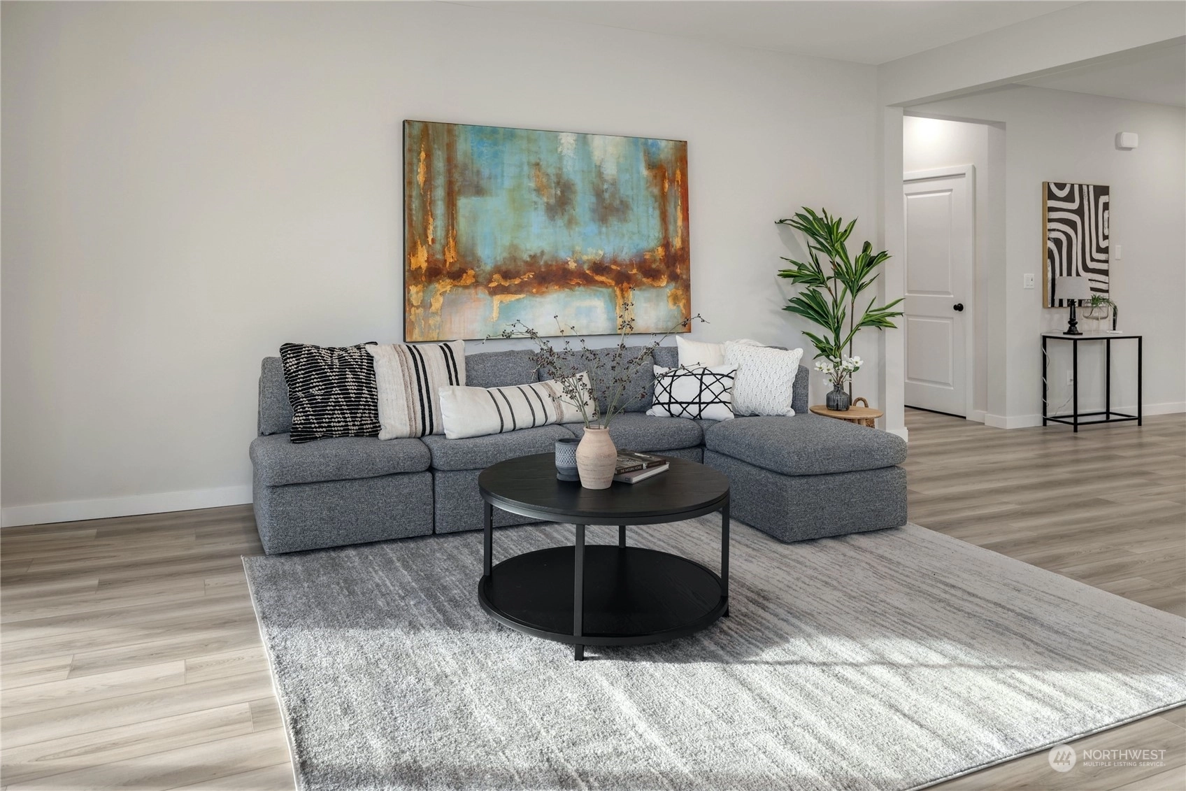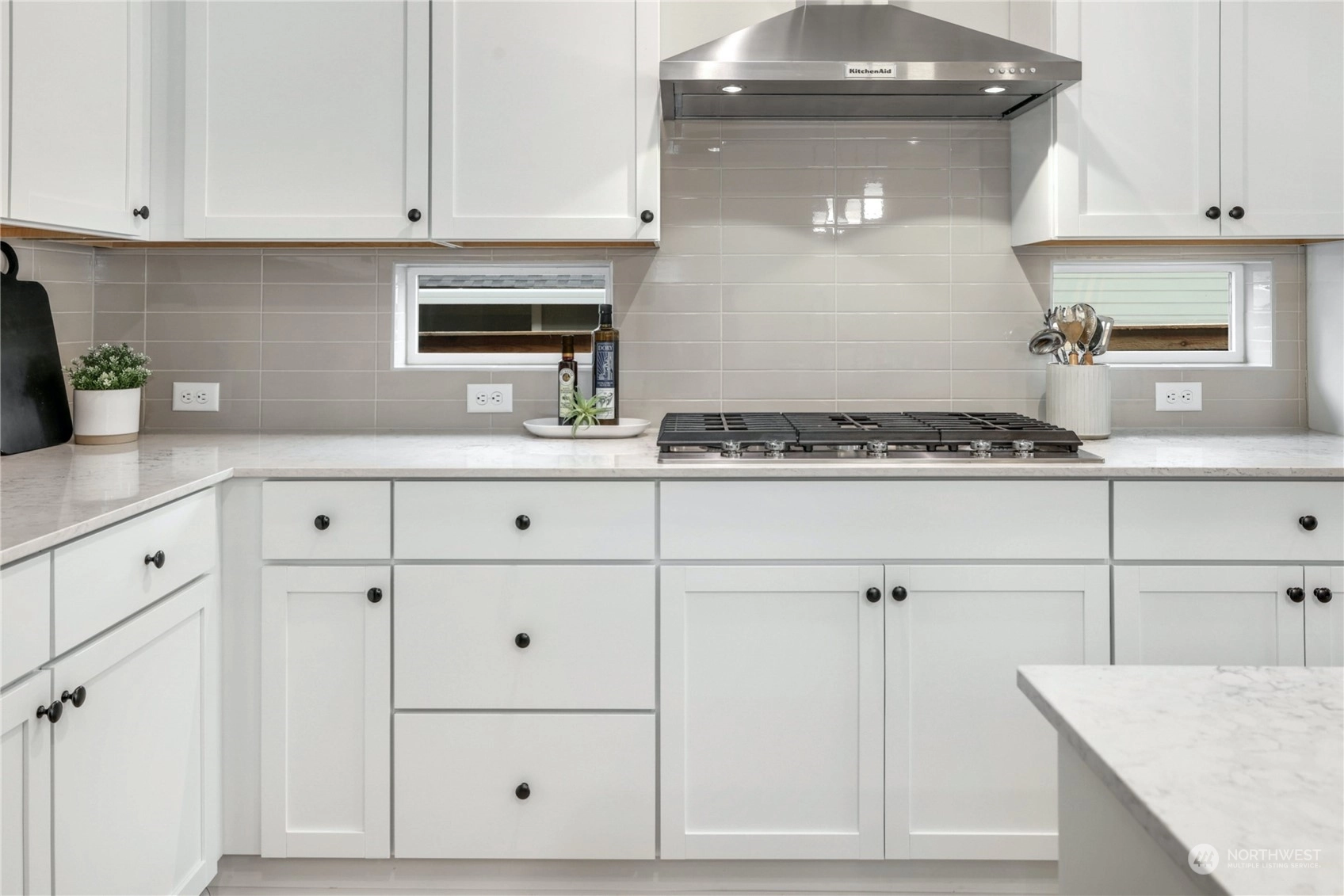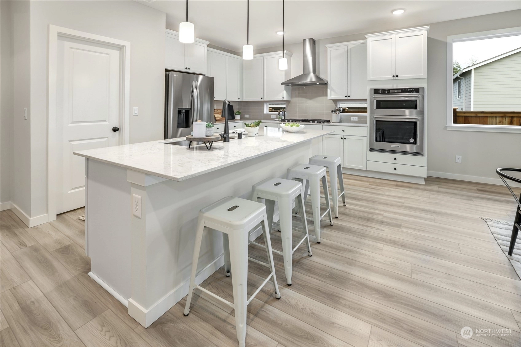 GORGEOUS MOVE-IN READY RAMBLER! 2,237SF, 3BR/2BA sunny home boasts a light and airy floor plan with vaulted 9’ ceilings! Gourmet island kitchen with white maple soft close/dovetail cabinets, full subway tile backsplash, gas cooktop, built-in wall oven, microwave + walk-in pantry. Living room with gas FP opens to a covered back patio. Huge primary BR boasts a spa-like bath with tiled shower/ bench & frameless glass shower door. Builder upgrades: Matte black fixtures, quartz countertops in kitchen & baths, BBQ gas stub@19' covered patio, wrapped interior windows, grass yard! Owner upgrades: fridge, epoxy garage floor, fenced yard, & plantation shutters! Near schools with easy commutes to Bangor, Keyport, PSNS, Kingston or Bainbridge ferries.