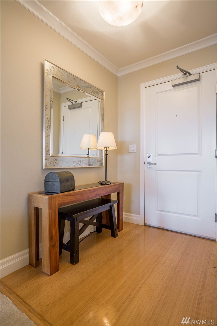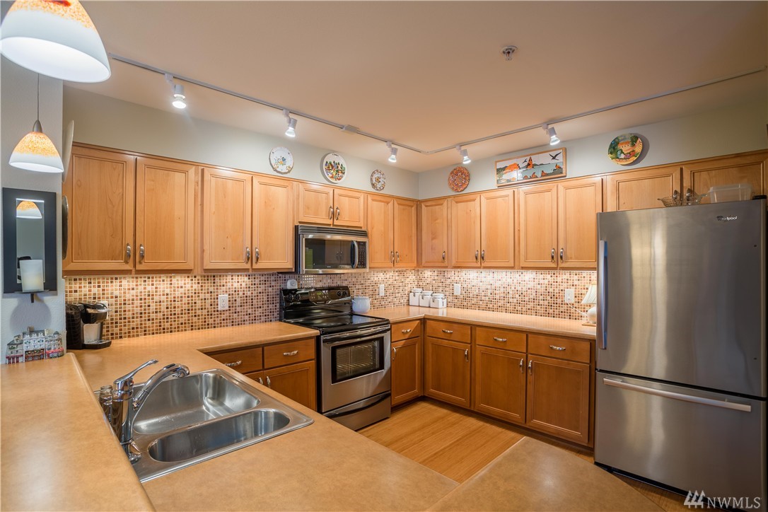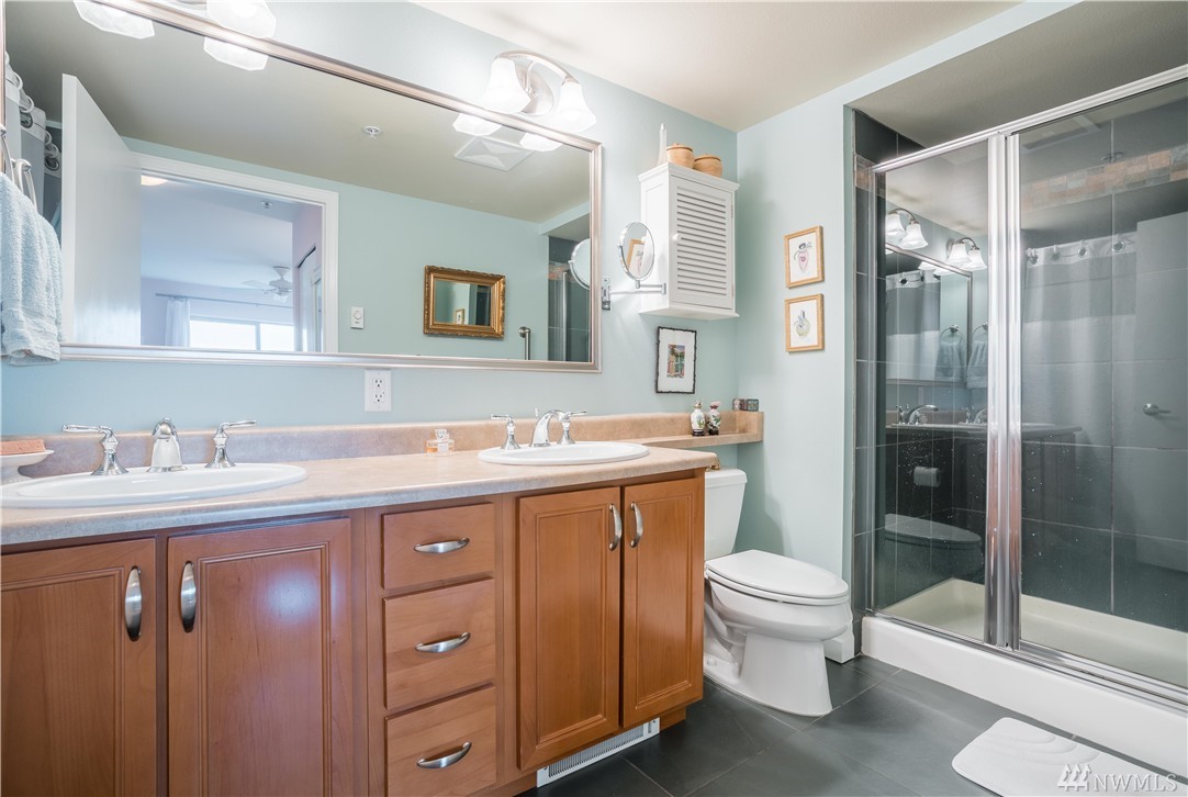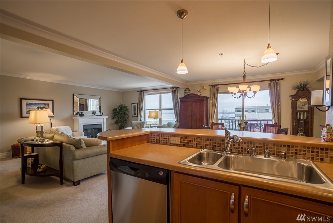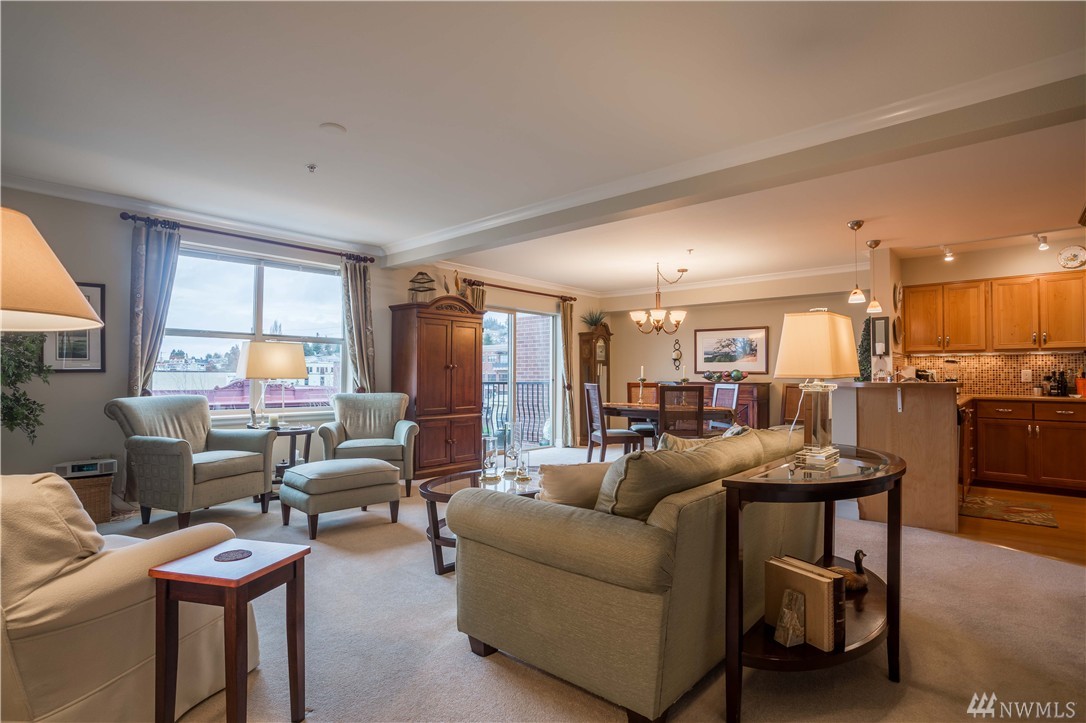 Harris Square Condo: One-level, beautifully maintained 2 bd/2ba in the heart of Fairhaven. Secure lobby entrance & elevator, garage parking for 2 cars! Featuring large oversized window, unobstructed views of Bay, City & mountains, open kitchen with SS appliances, Lv room w/fireplace & Master-suite w/walk-in, plus a fireplace, warm designer colors throughout. Condo is in spotless condition, perfect in every way.