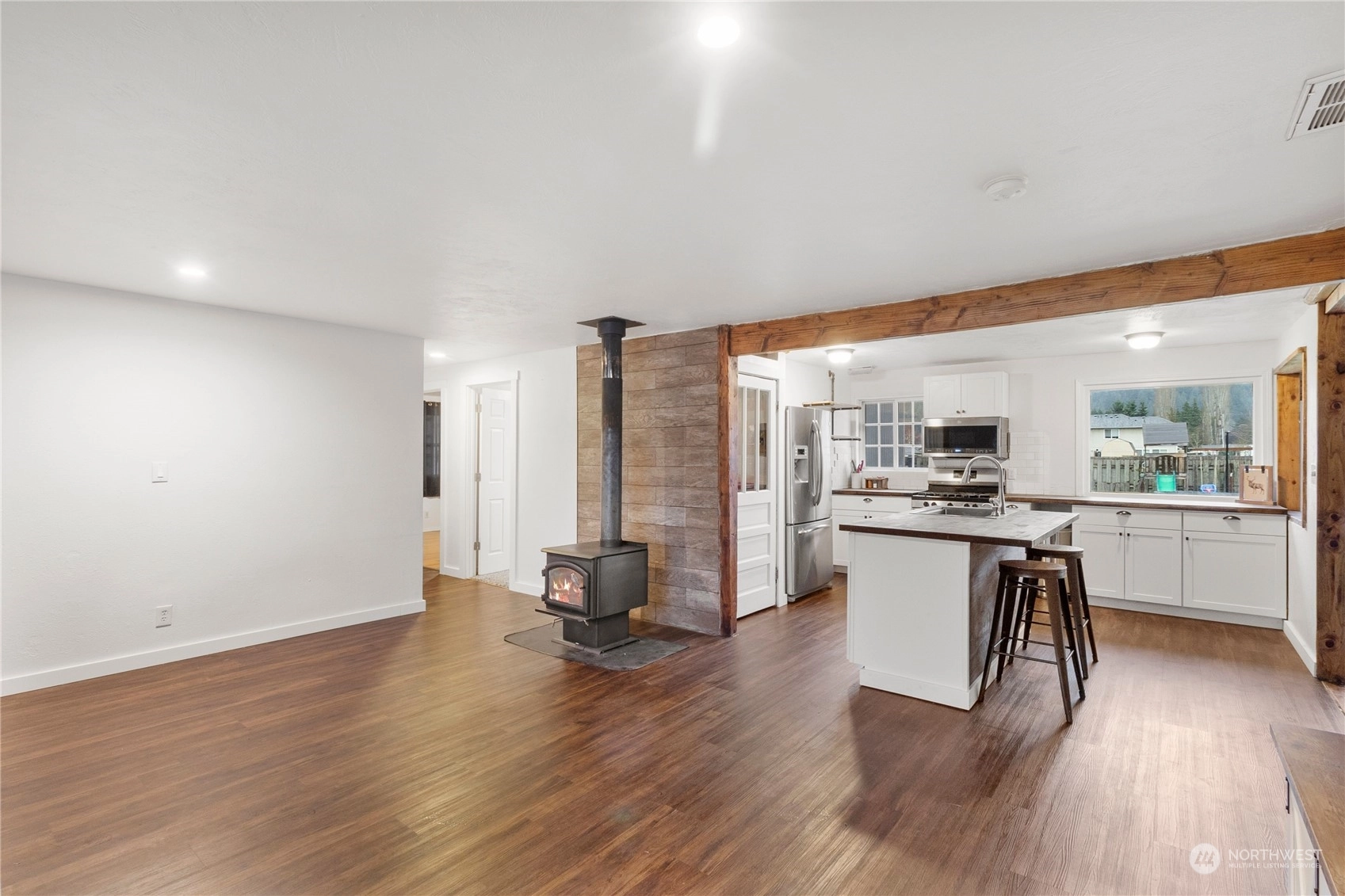 Discover your dream home in the quaint town of Orting! Updated 3 bed, 1 bath rambler exudes modern farmhouse charm & is perfect for entertaining. New LVP flooring throughout most of home. The stylish kitchen boasts butcher block countertops, gas stove & updated appliances. Stay cozy this winter by the wood-burning stove-& in the summer you'll stay cool w/ the central AC. Unobstructed Mt. Rainier views on this spacious 1/3 acre lot. 24X40 insulated shop w/loft, 220v power & an abundance of outlets. RV hookup and dump beside shop. The property offers a cool treehouse for added allure. ALL appliances stay. Xtra storage w/possibility for ADU. Near city park-Orting has 19 miles of bike & walking trails, adventure is at your doorstep.