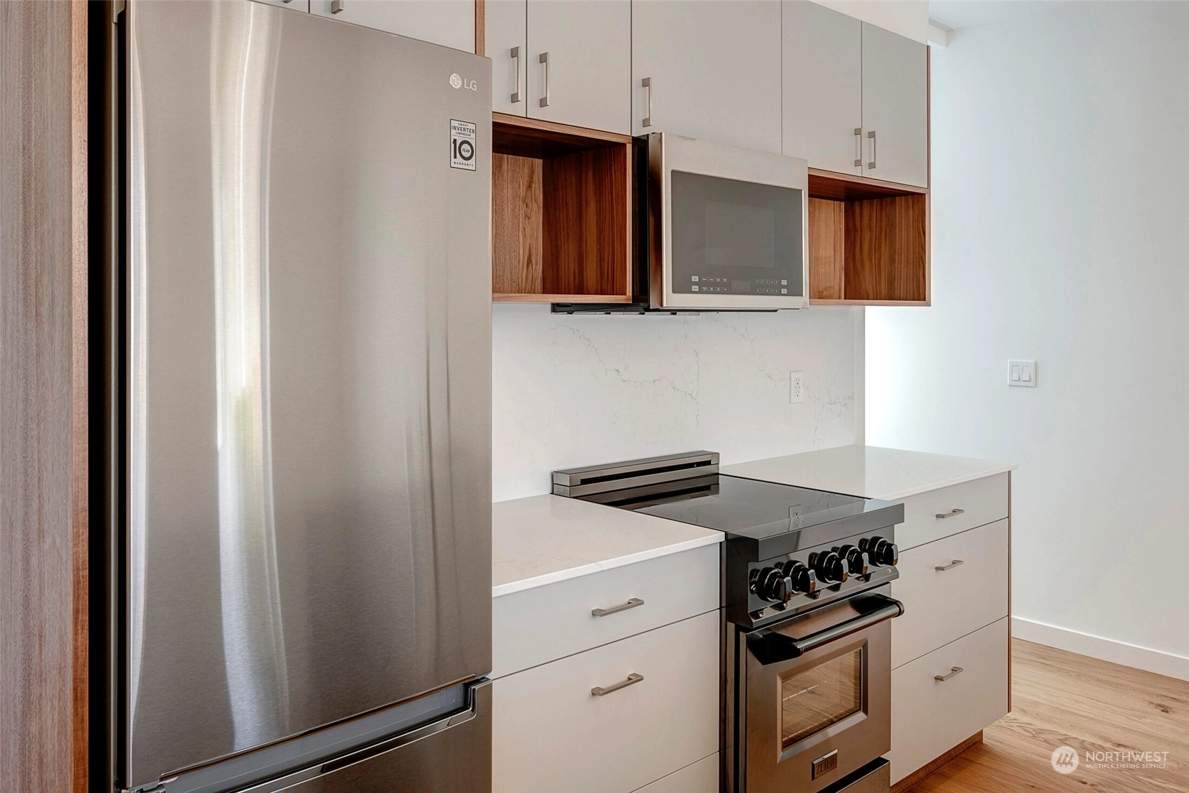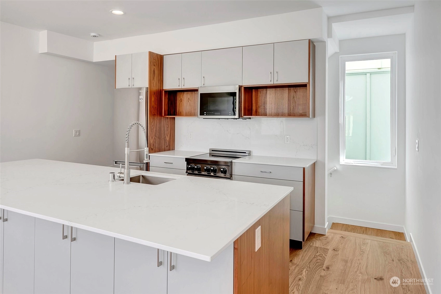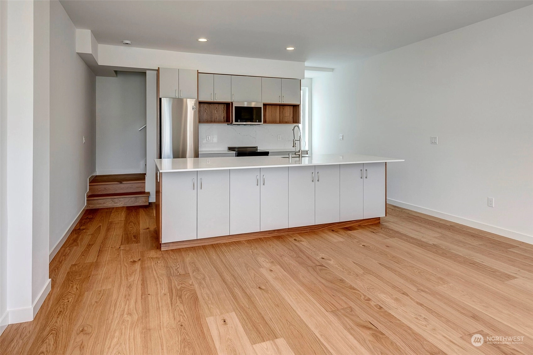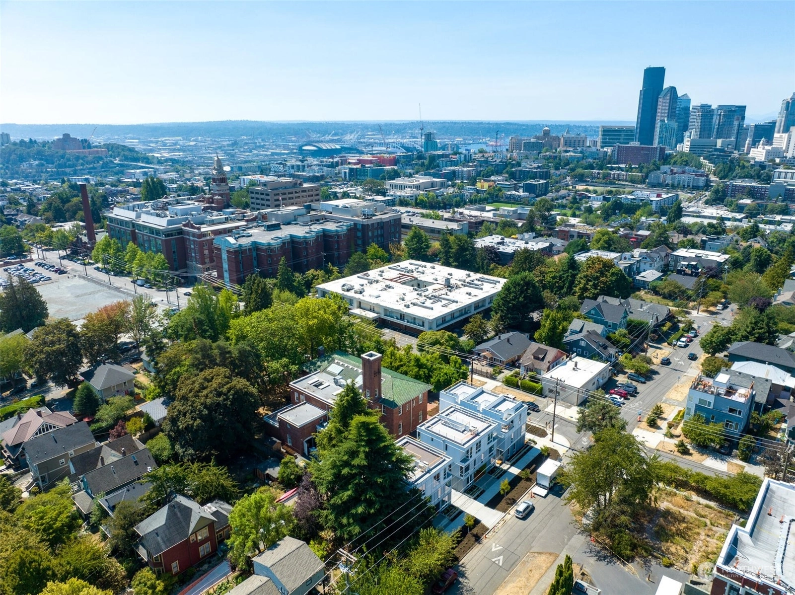 This end unit captivates with its flooded natural light from floor-to-ceiling windows. The chef's kitchen boasts custom cabinets, sleek Caesarstone countertops, and high-end appliances. The top-floor primary bedroom offers a luxurious escape with an impressive walk-in closet and elegant bathroom. Quality craftsmanship shines through with smooth drywall finish, hardwood floors, and energy-efficient ductless mini-splits for comfort. Conveniently situated, just steps away from Chuck's Hop Shop, Ezell's, Ba Bar, Swedish Hospital, Seattle U, Pike/Pine, and PCC. OFF Street parking available. Walkscore of 81 - very walkable!