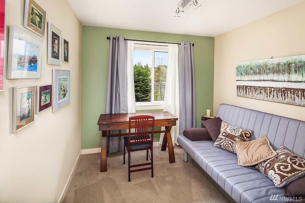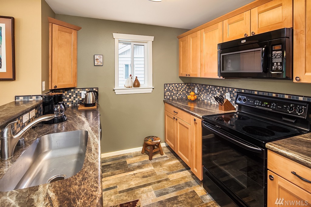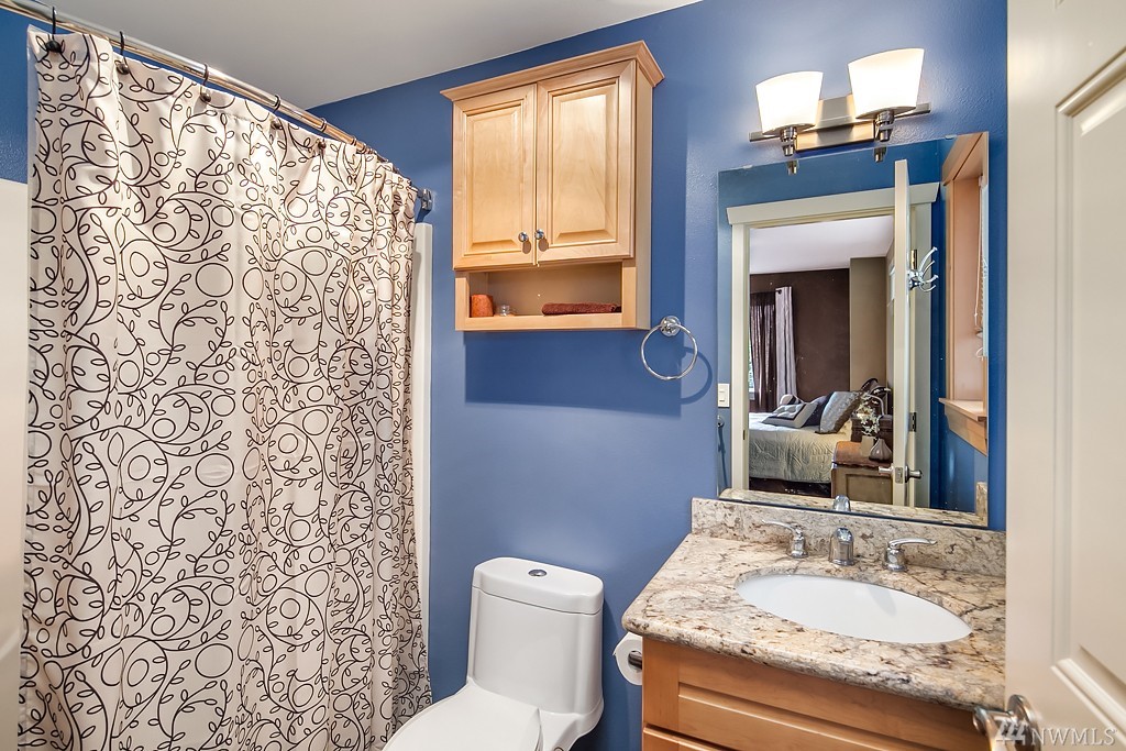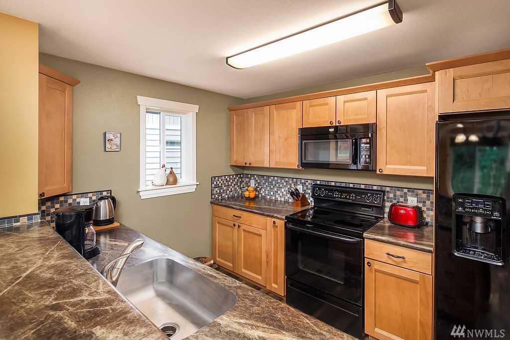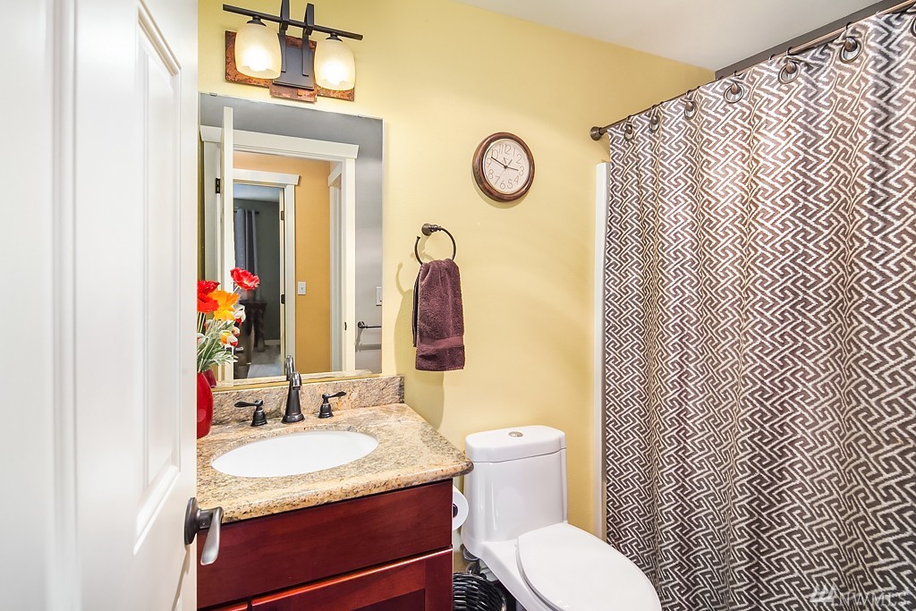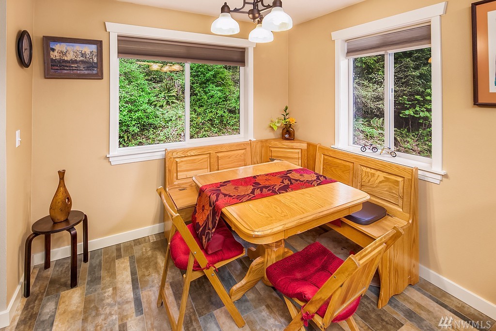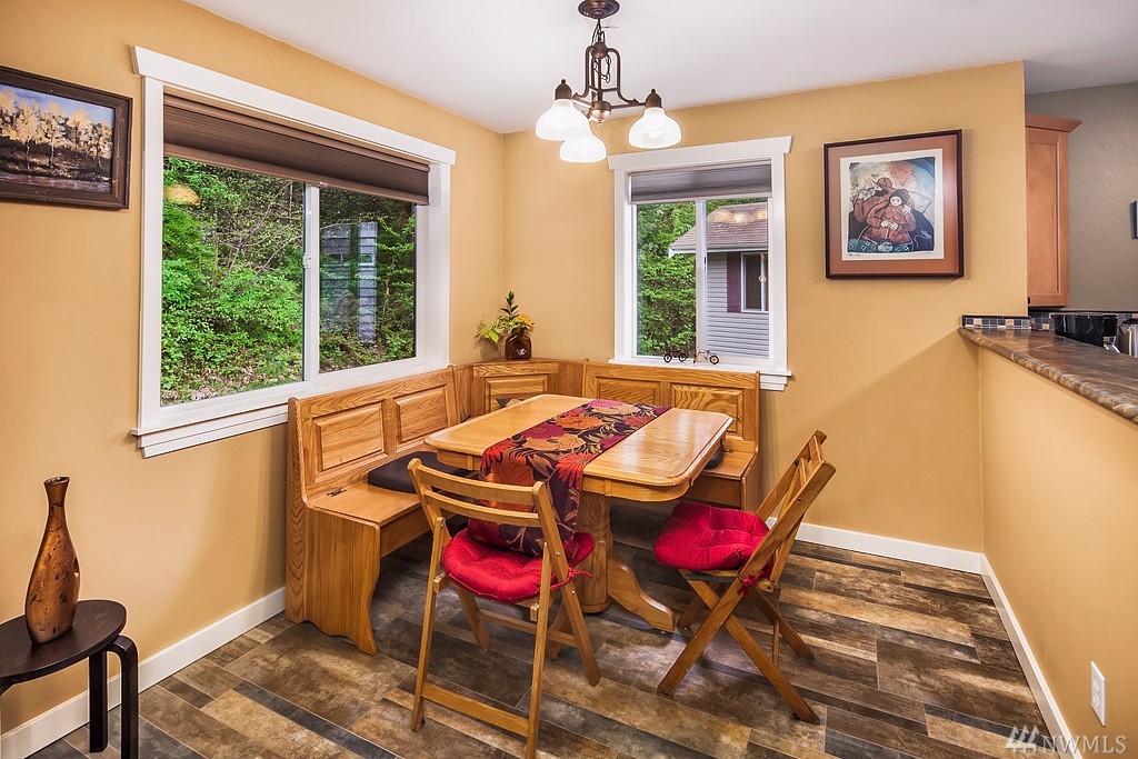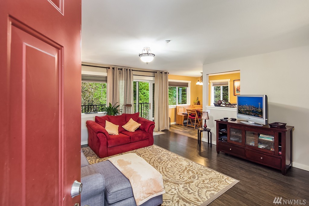 A unique gem tucked away in the heart of downtown Issaquah! Terrific 2 bd 2 bth condo is perched up high & has scenic greenbelt views. A quality remodel & very well cared for w/ upgrades throughout. Kitchen has newer appliances, custom soft close cabinets, upgraded lighting, stylish tile backsplash, built in breakfast nook & new counters. Both bthrms have been updated w/ granite & new light fixtures. Huge secure garage below unit + 1 more space.Buy it fully furnished, perfection at every turn.