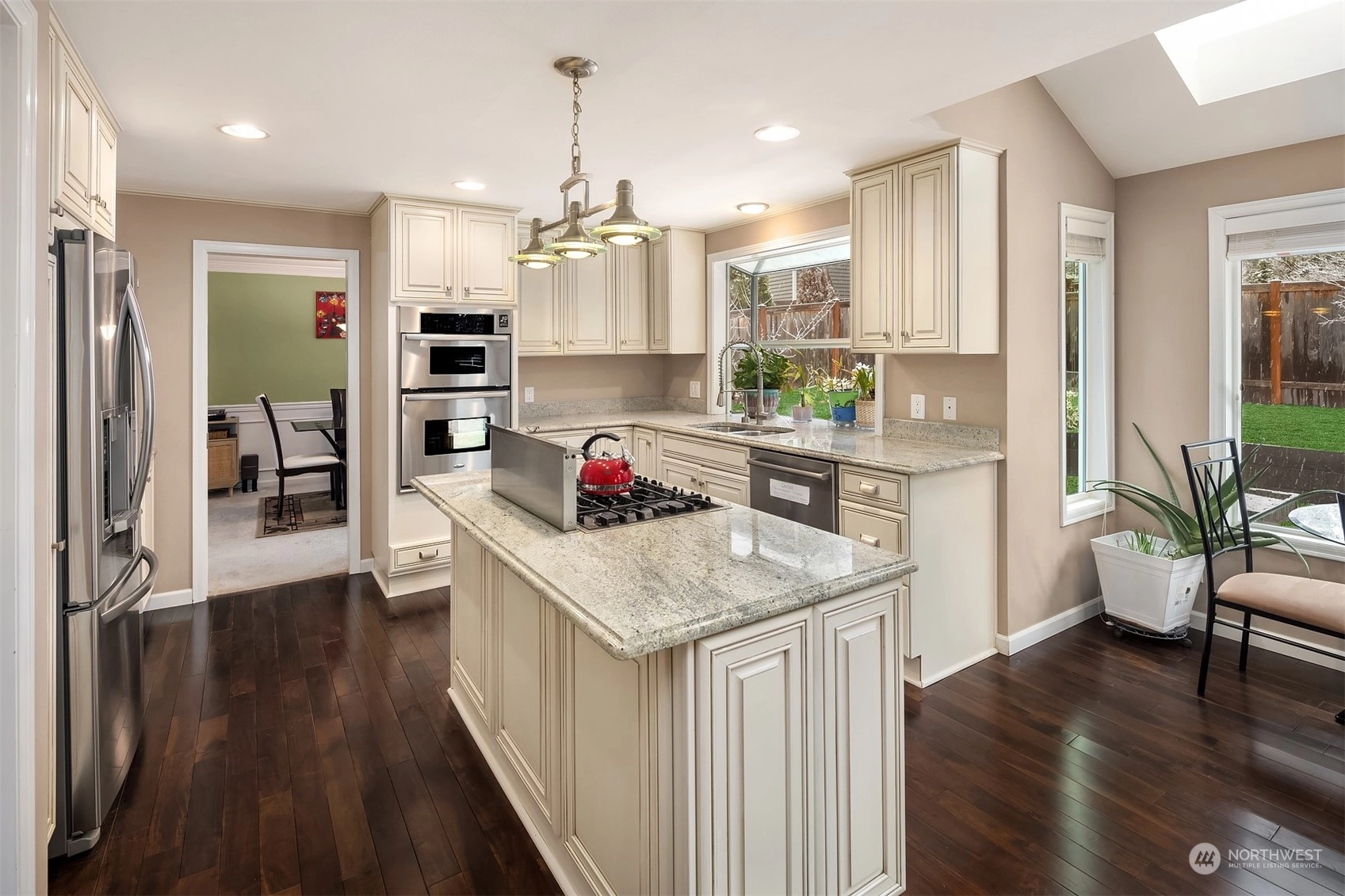 Beautiful upgraded home in the coveted Deerfield neighborhood. This pristine condition home offers great curb appeal, formal and informal spaces, gleaming hardwood floors, Central AC and new backup generator. Open kitchen with granite countertops, stainless steel appliances & island opens to family room with gas fireplace. Main level room can be used as a bedroom or office. Spacious primary suite with remodeled 5 piece bath & walk in closet. Two more good sized bedrooms & upgraded guest bath. Large landscaped yard with ample room to relax, garden & play. True 3 car garage. Steps away from shopping, parks, schools & trails. Award winning Lake WA schools. Pre-inspected.