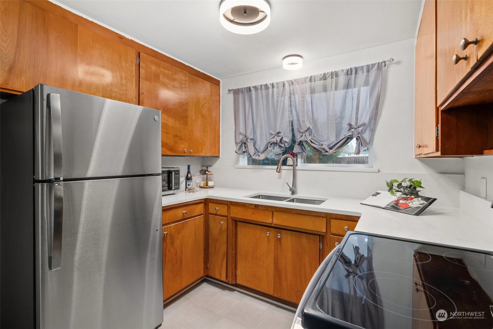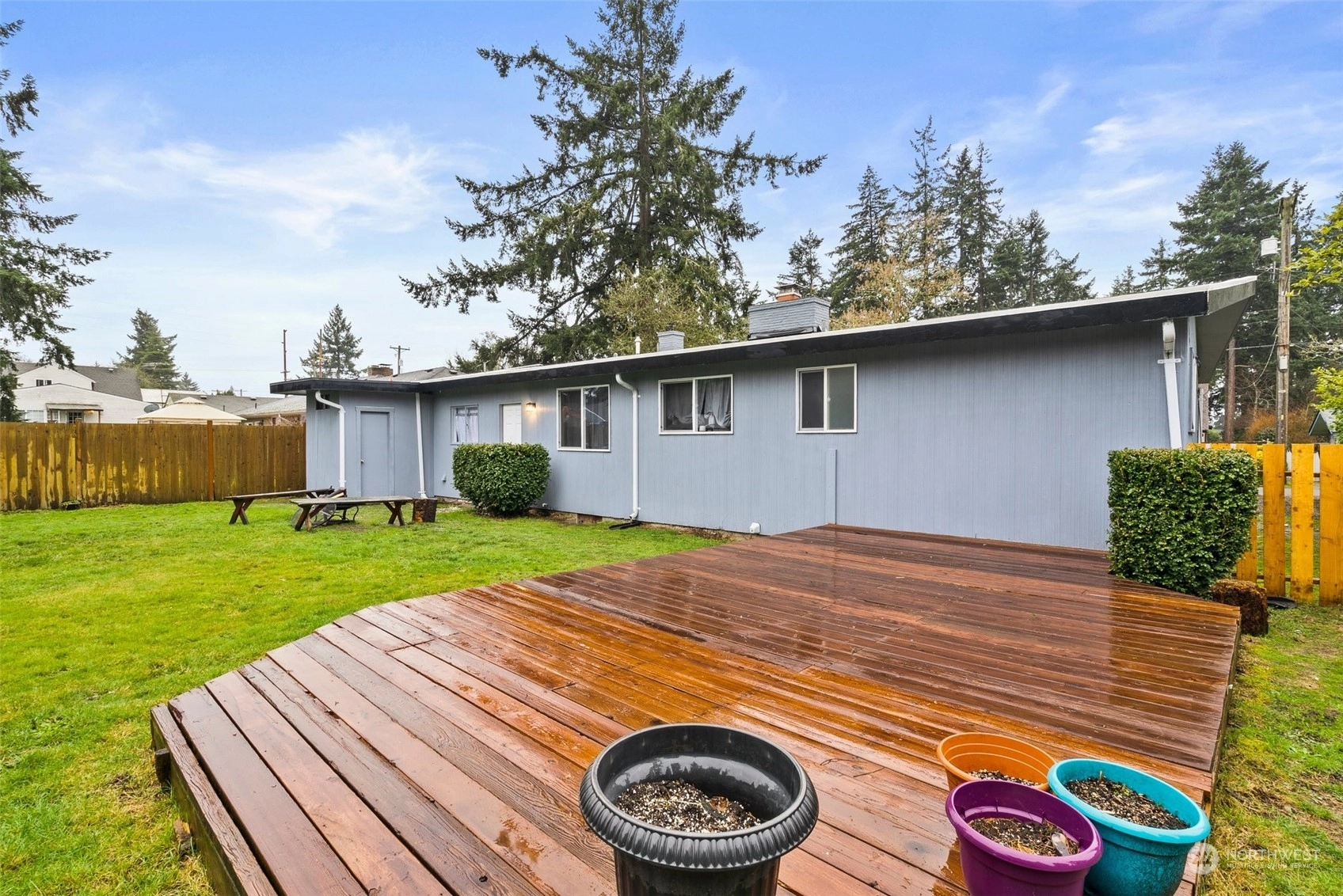 Welcome to your newly updated home! This charming 3 bedroom rambler boasts beautifully refinished original hardwood floors, fresh paint throughout, updated kitchen counters and new appliances. Washer/dryer in your large laundry room also stays! Living room is perfect for easy entertaining or just relaxing by the fireplace. You will be sure to enjoy summer BBQs or just relaxing on the deck in your fenced backyard or on the private deck just off your large bedroom. Two driveways are perfect for RV parking or for additional vehicles. Close to schools and parks. easy access to I-5. This home is waiting for you!