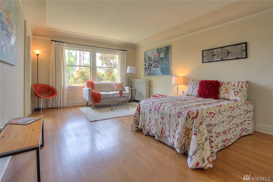 Welcome to Mara Bella, a delightful turn-of-the-century Brick condo located on a quiet tree lined street in Eastlake. All the original charm & detailing including hardwood floors, tiling, coved ceilings & trim. Light-filled & updated kitchen with eat-in dining overlooking greenery, spacious living/sleeping area with large walk-in closet, beautiful tiled bath & in-unit laundry. Storage locker in basement too! Great location & easy (zoned) parking.Close to Lake, parks, Eastlake hotspots & transit!