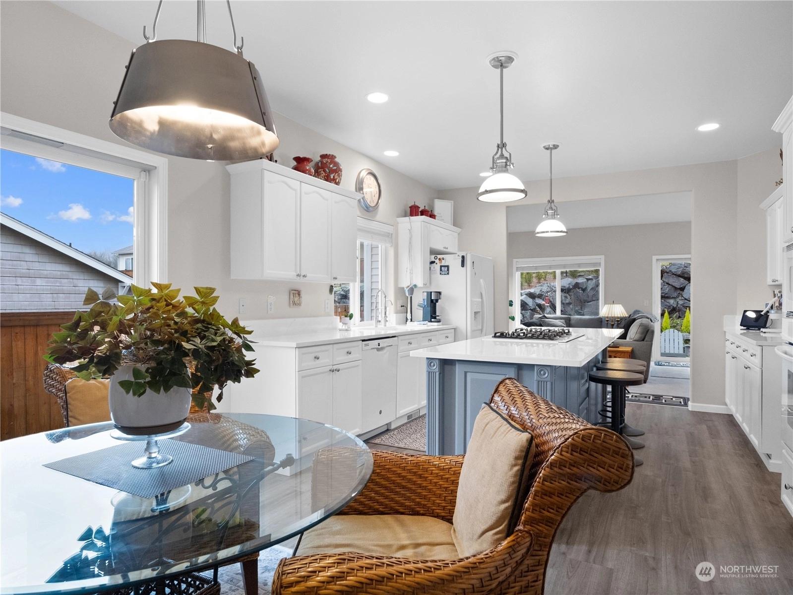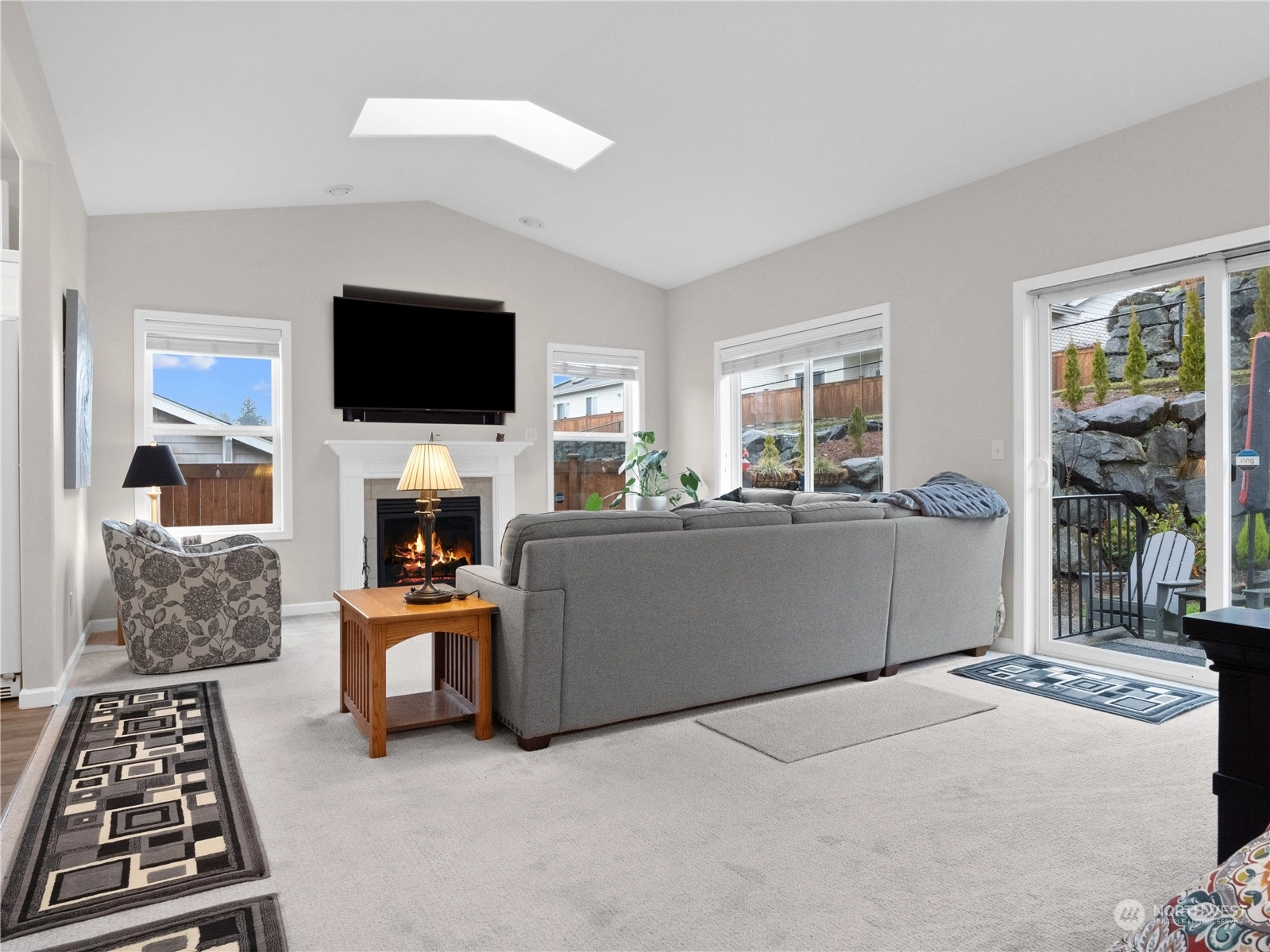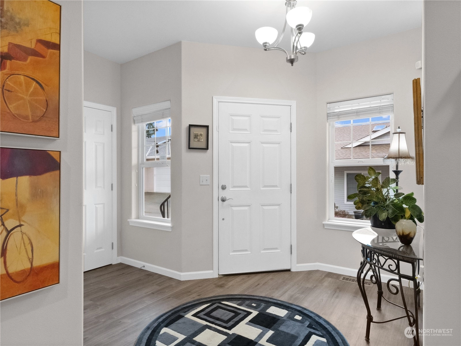 Semi-open concept living with lots of natural light! Updates are throughout. Quartz countertops in bathrooms, kitchen, island, and laundry room, primary bedroom with widened doorway to primary bath, updated shower, soaking tub, and new carpet. Primary bedroom and living room have sliding door access to private backyard. New flooring throughout kitchen and entry, new carpet in living room. New heat pump/AC. Tucked away in a private gated community that is quiet and very well-maintained! The community is NOT a 55+ community. Great location close to freeway access, Chamber Bay Golf Course and parks, shopping and so much more!