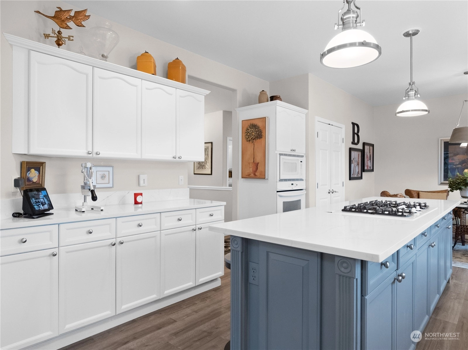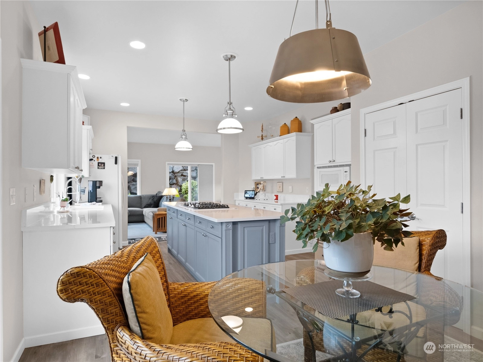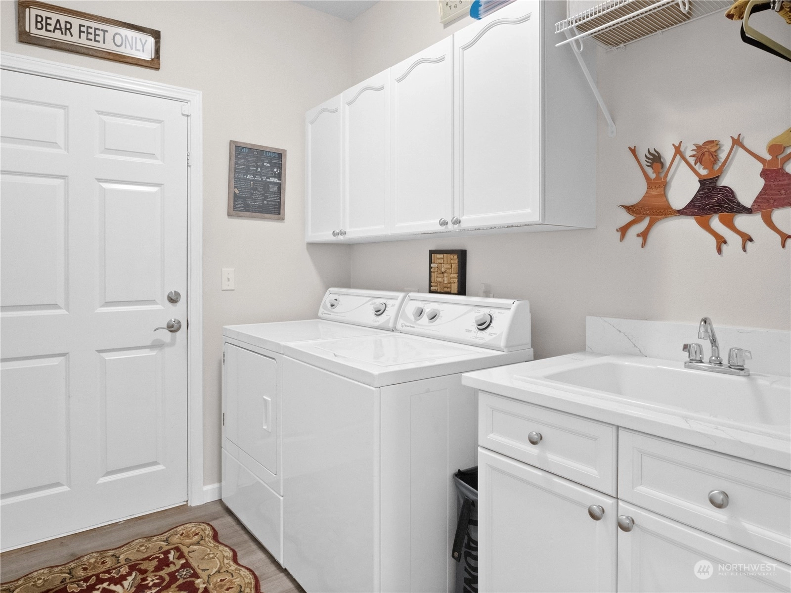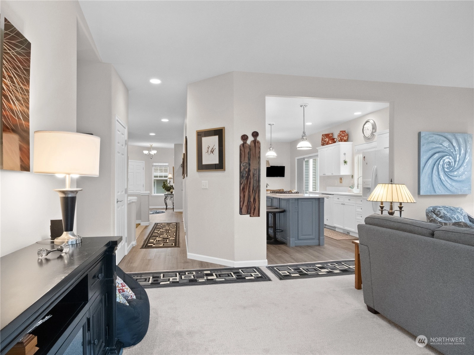 Semi-open concept living with lots of natural light! Updates are throughout. Quartz countertops in bathrooms, kitchen, island, and laundry room, primary bedroom with widened doorway to primary bath, updated shower, soaking tub, and new carpet. Primary bedroom and living room have sliding door access to private backyard. New flooring throughout kitchen and entry, new carpet in living room. New heat pump/AC. Tucked away in a private gated community that is quiet and very well-maintained! The community is NOT a 55+ community. Great location close to freeway access, Chamber Bay Golf Course and parks, shopping and so much more!