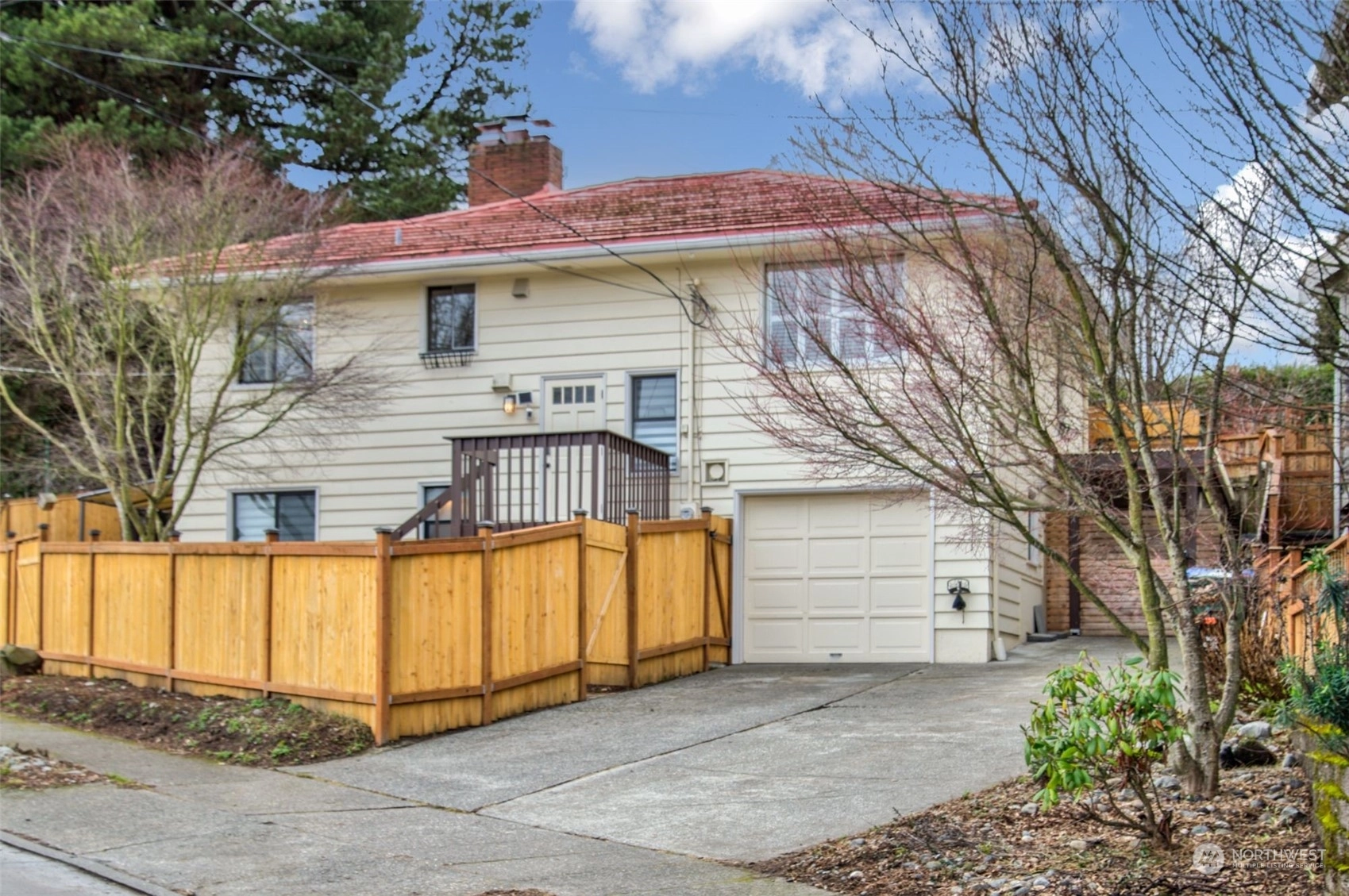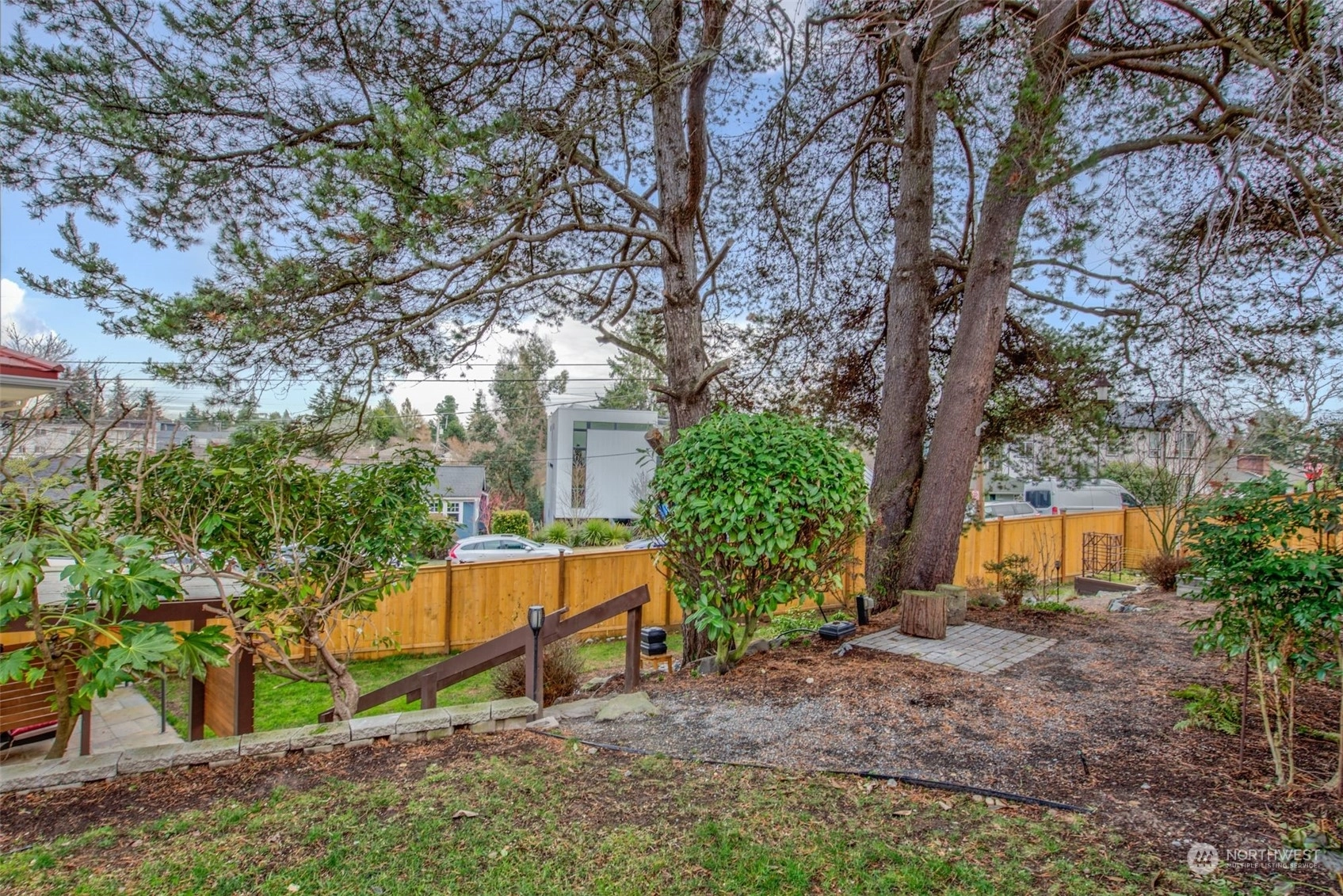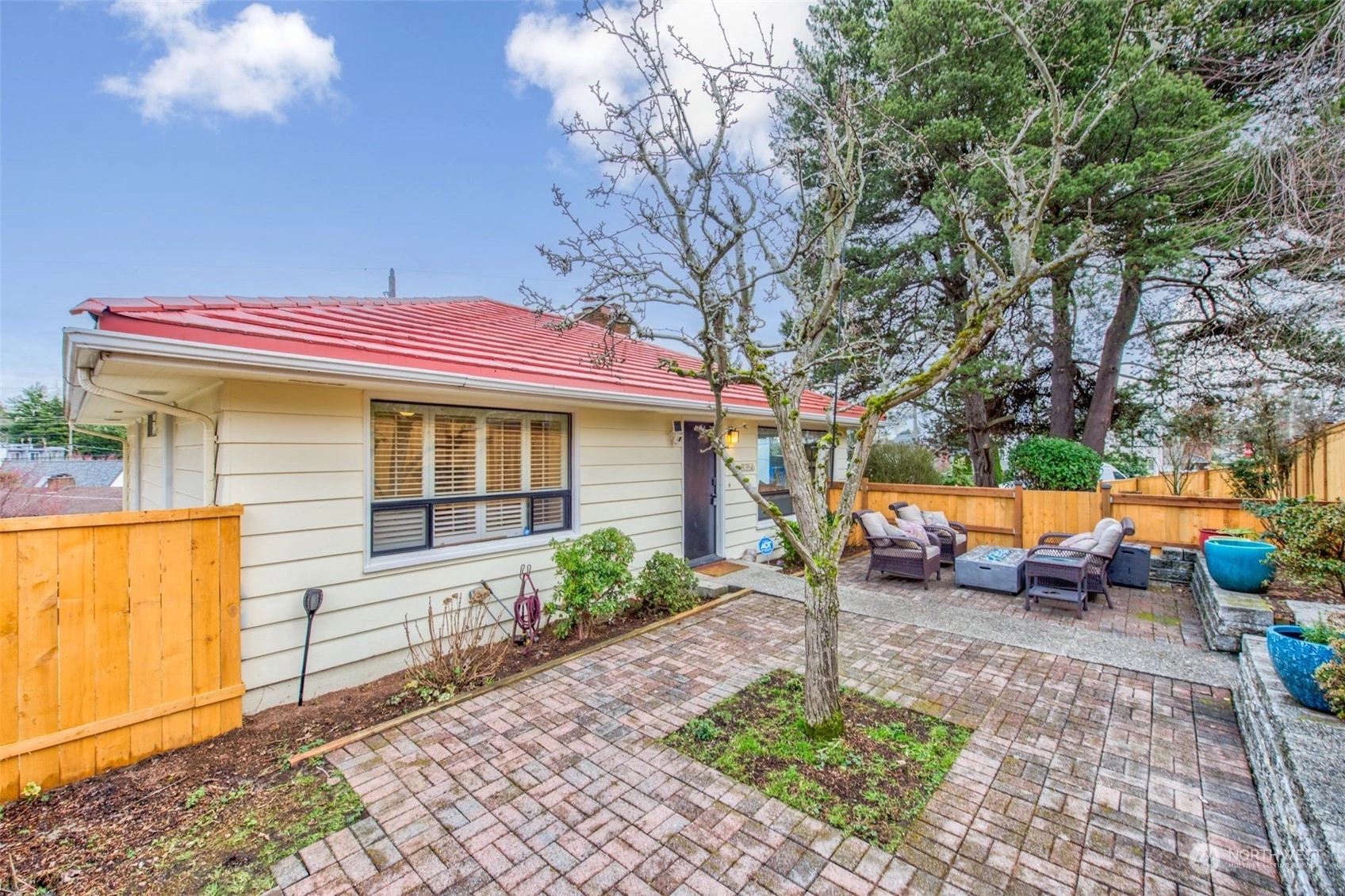 Step into this charming mid-century home in coveted Loyal Heights. Situated on a landscaped corner lot, it boasts an inviting living room with a cozy fireplace and abundant natural light. The main level features an updated kitchen with stainless steel appliances, an eating area, two bedrooms, and a bath. Downstairs, discover the primary suite with a fireplace and dressing area. Outside, the fully fenced backyard offers plenty of space for gardening, surrounded by original artwork by local artist Henry. With trendy restaurants and parks just minutes away, this home offers the perfect blend of comfort and convenience. Pre-inspected! Call it home now!