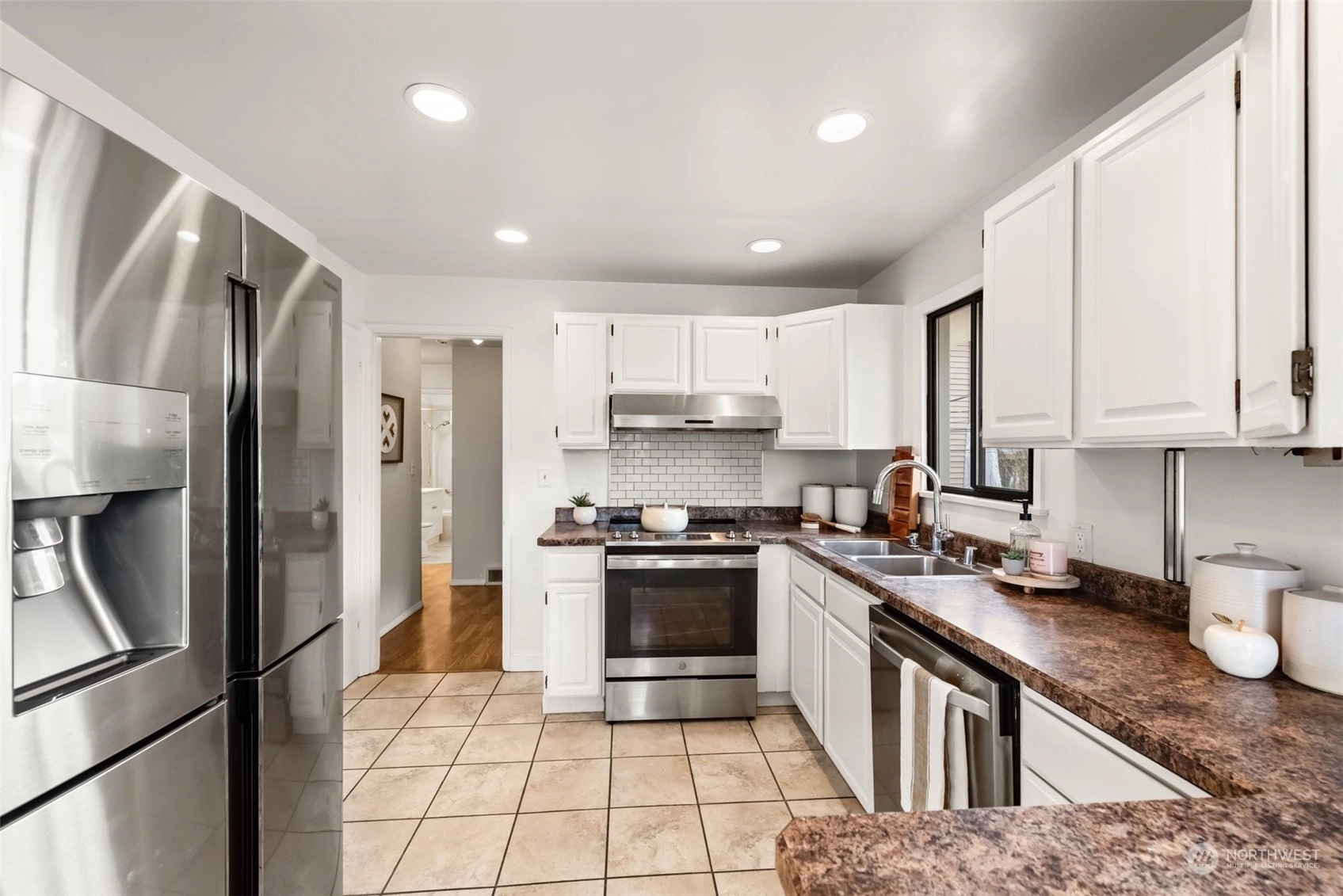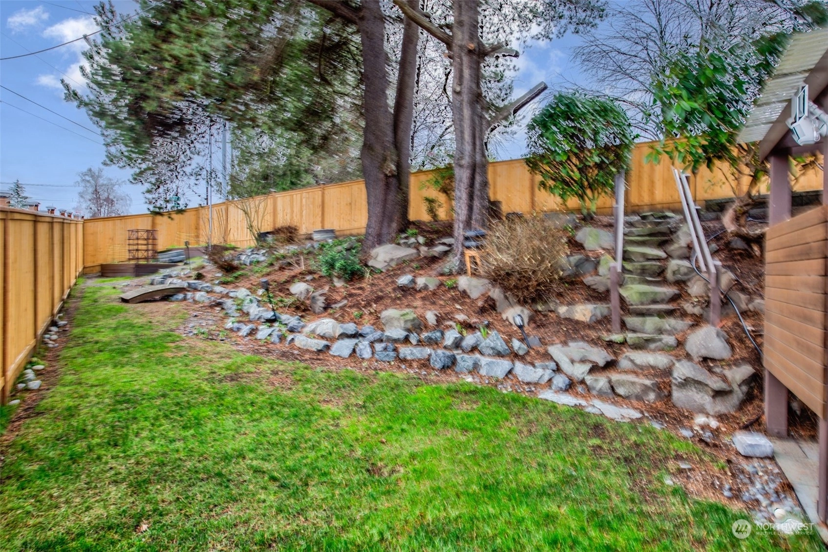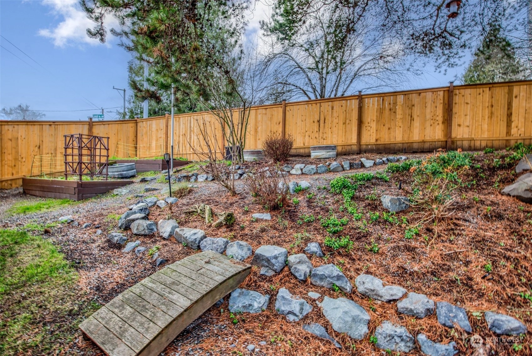 Step into this charming mid-century home in coveted Loyal Heights. Situated on a landscaped corner lot, it boasts an inviting living room with a cozy fireplace and abundant natural light. The main level features an updated kitchen with stainless steel appliances, an eating area, two bedrooms, and a bath. Downstairs, discover the primary suite with a fireplace and dressing area. Outside, the fully fenced backyard offers plenty of space for gardening, surrounded by original artwork by local artist Henry. With trendy restaurants and parks just minutes away, this home offers the perfect blend of comfort and convenience. Pre-inspected! Call it home now!