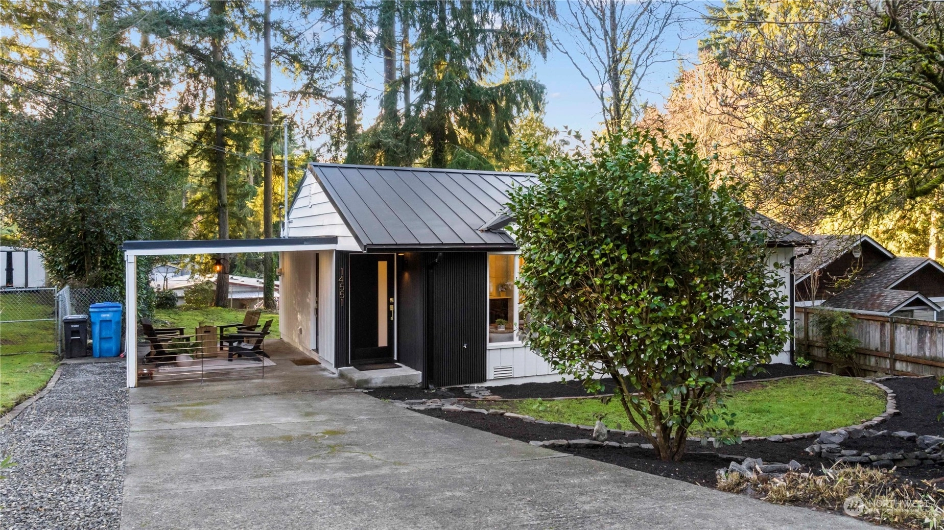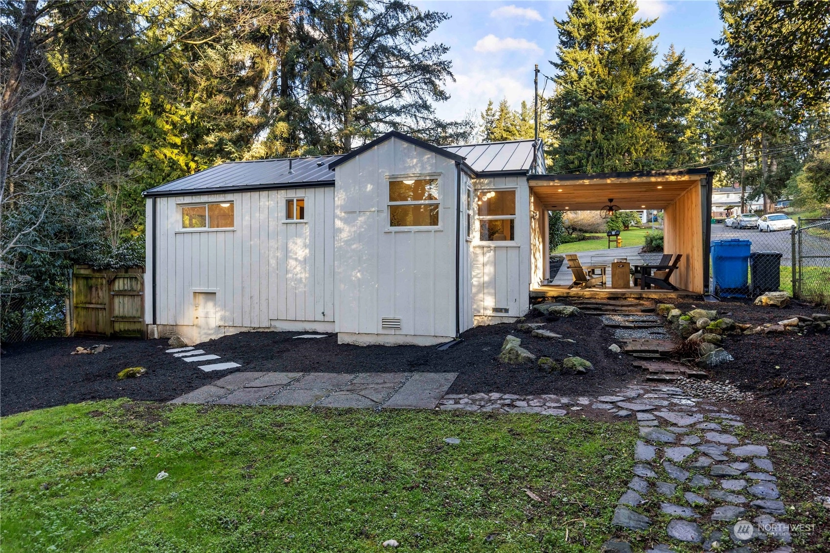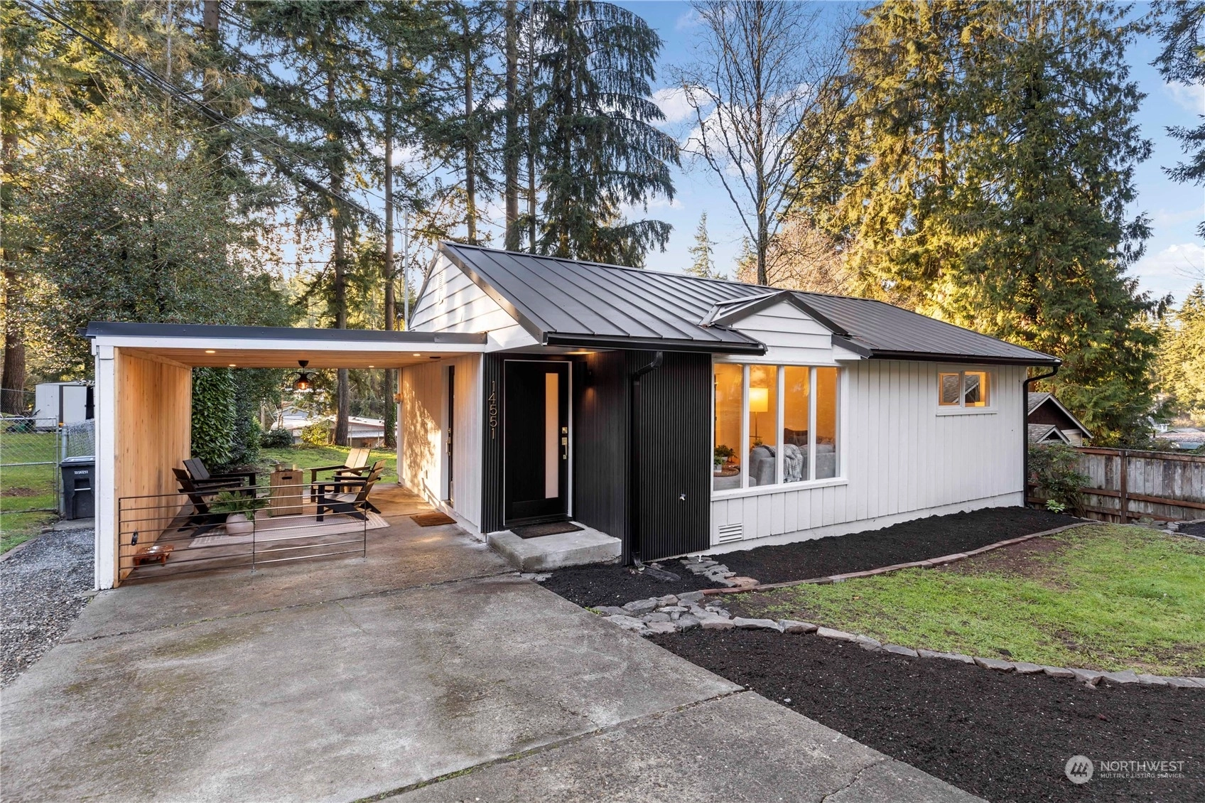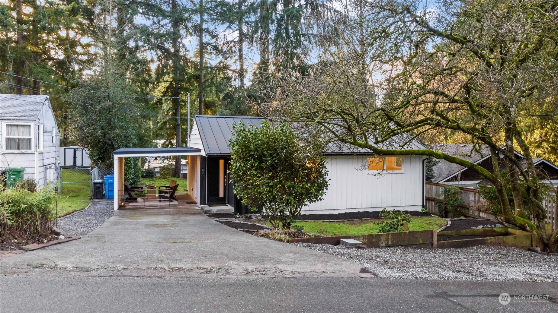 Charming, fully renovated rambler with no HOA dues: more value than a new condo and still get the upgrades. Remodeled from the studs out, it’s all new including the metal roof! Stylish vaulted ceilings, recessed lighting, stunning quartz counters, backsplash & shelves. Separate laundry & pantry room, and a dry storage room below. Innovative modern eHeat system & smart kitchen appliances included. The covered outdoor living space and an 8K+ sq ft lot provide countless options for pets, gardening, or even an ADU. On a peaceful street away from traffic, yet minutes from major commuter routes. One mile west of Shoreline South light rail station. Take pride in the exceptional work & professionally designed property from “The Fixer Upper Couple!"
