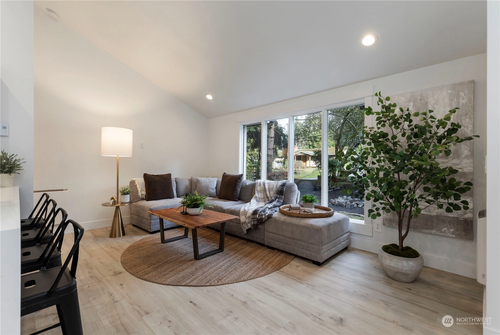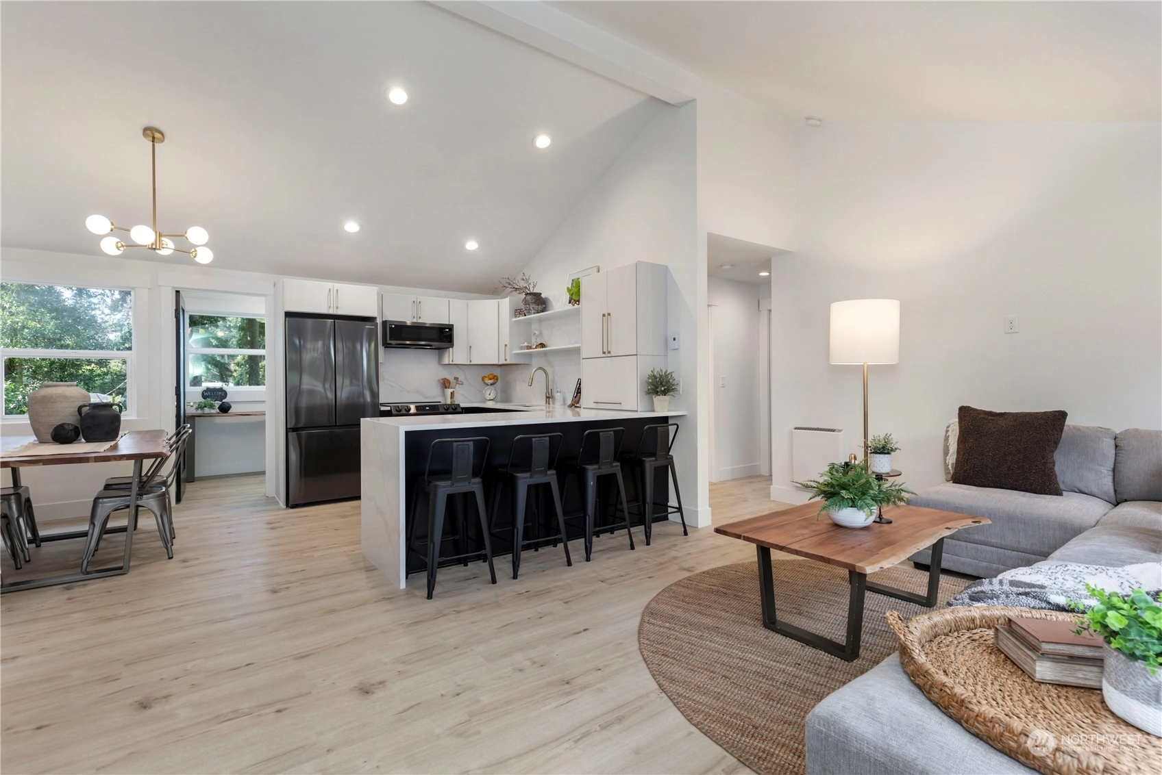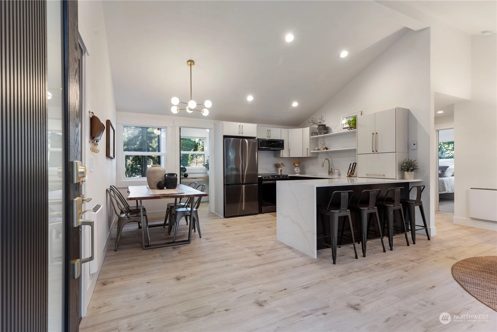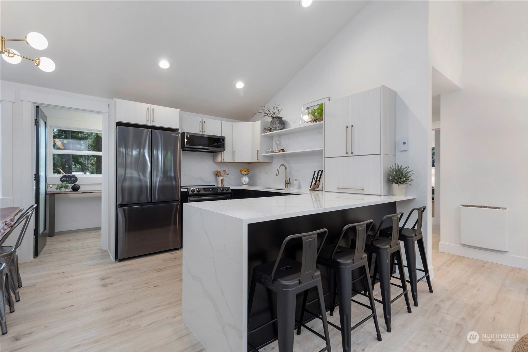 Charming, fully renovated rambler with no HOA dues: more value than a new condo and still get the upgrades. Remodeled from the studs out, it’s all new including the metal roof! Stylish vaulted ceilings, recessed lighting, stunning quartz counters, backsplash & shelves. Separate laundry & pantry room, and a dry storage room below. Innovative modern eHeat system & smart kitchen appliances included. The covered outdoor living space and an 8K+ sq ft lot provide countless options for pets, gardening, or even an ADU. On a peaceful street away from traffic, yet minutes from major commuter routes. One mile west of Shoreline South light rail station. Take pride in the exceptional work & professionally designed property from “The Fixer Upper Couple!"