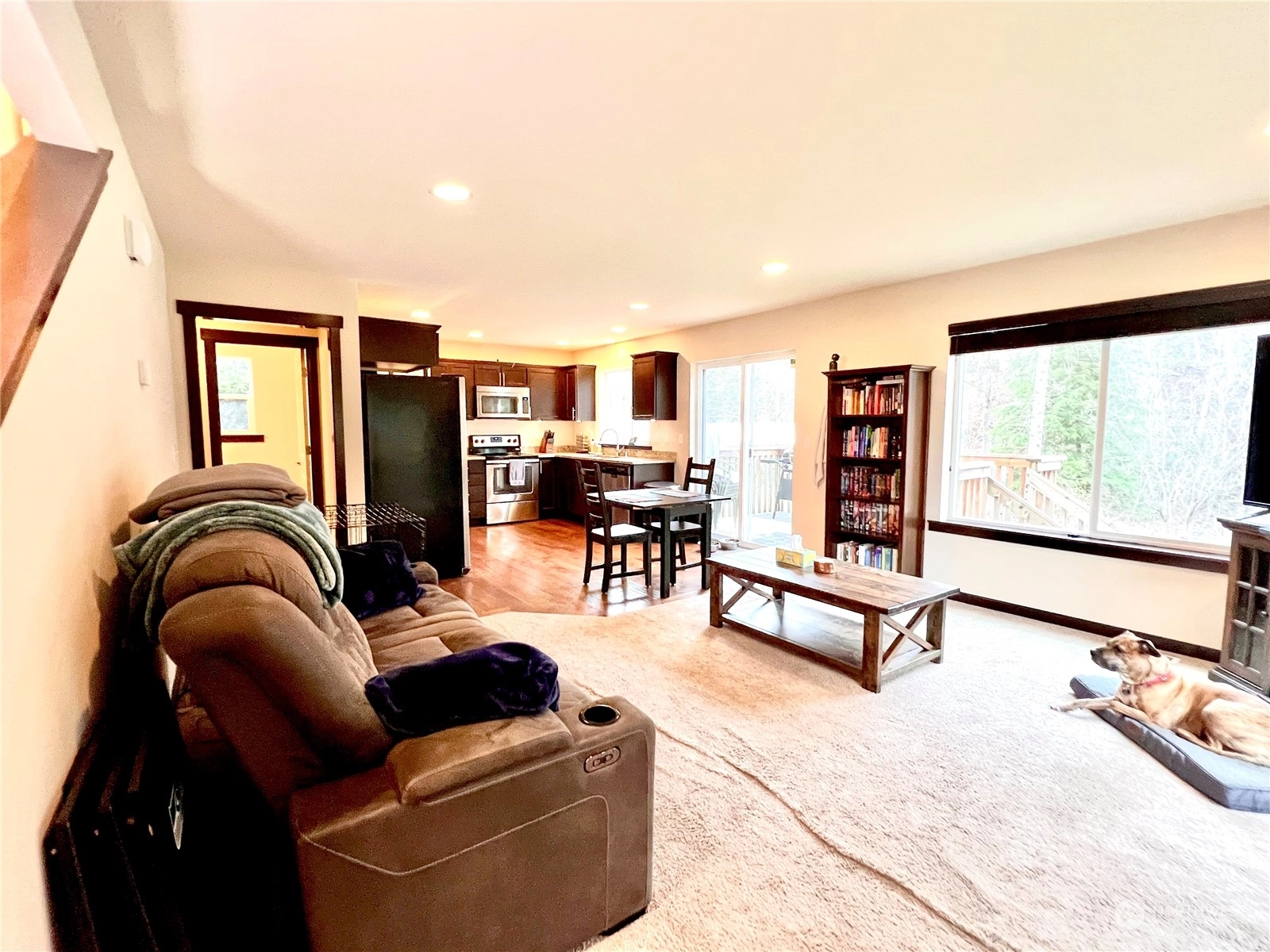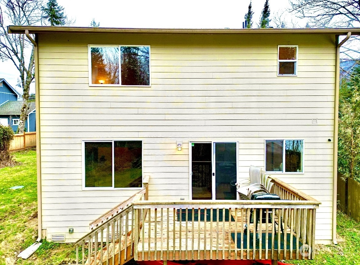 Located in close proximity to Monroe and a mere 30 minutes away from Stevens Pass, this Gold Bar residence blends the beauty of the outdoors with convenience of living. Built in 2015 on a spacious .34 acre lot bordering May Creek, this 3 bed/2.5 bath home exudes contemporary living in a serene environment with short-term rental potential. Upon entering, you will be greeted by an inviting open floor plan that seamlessly flows into the kitchen, equipped with granite countertops and modern stainless appliances. Upstairs, you will discover larger bedrooms, a conveniently placed laundry area and a full bathroom. Additionally, the primary bedroom with ensuite offers vaulted ceilings and backyard views overlooking the creek.