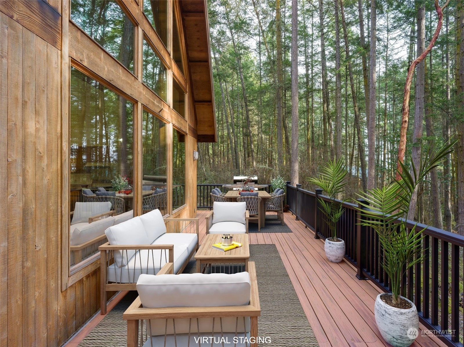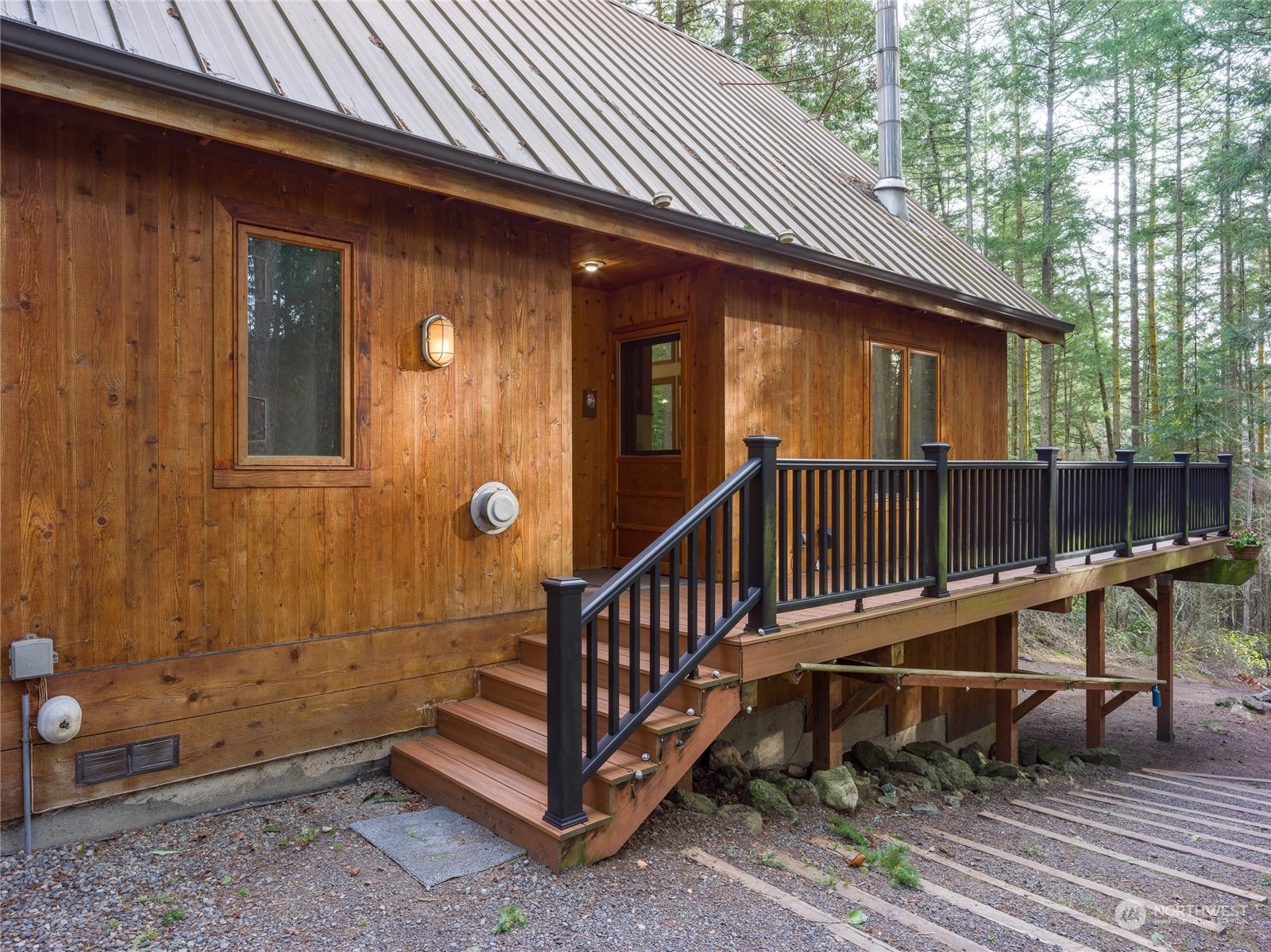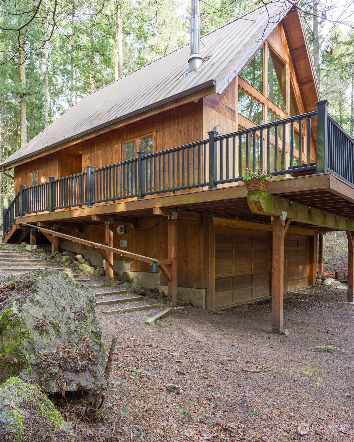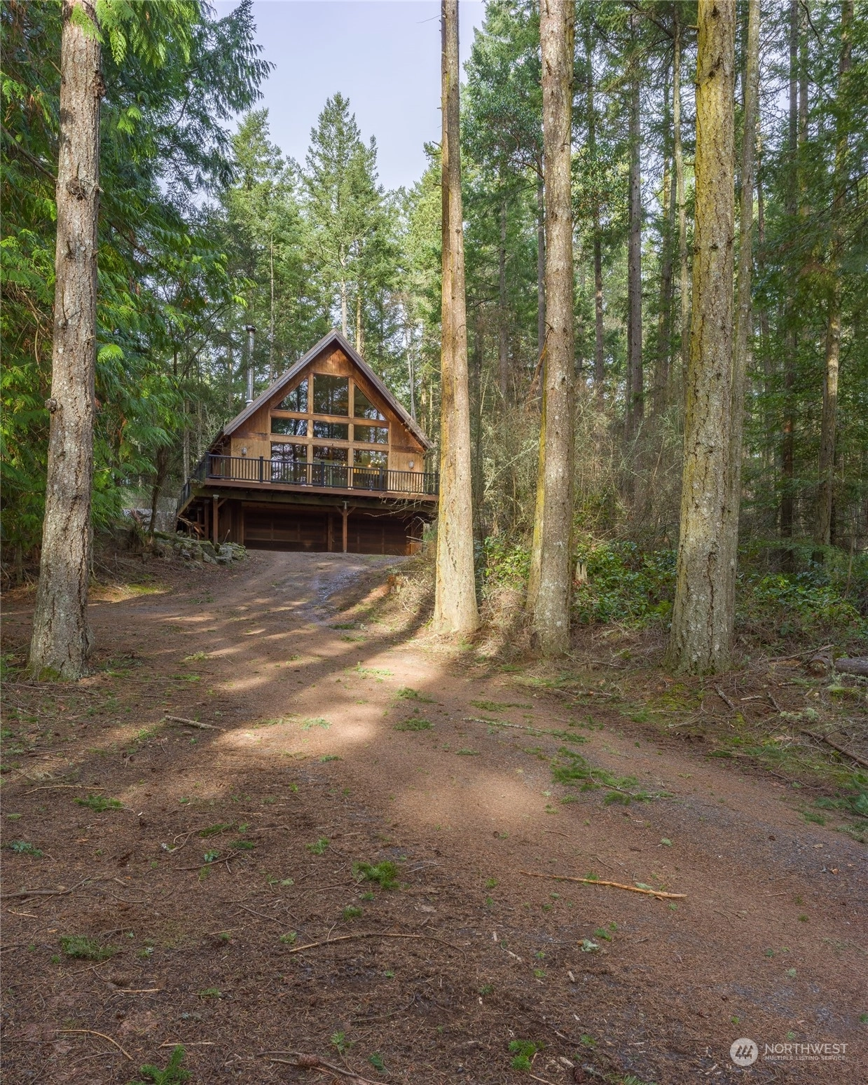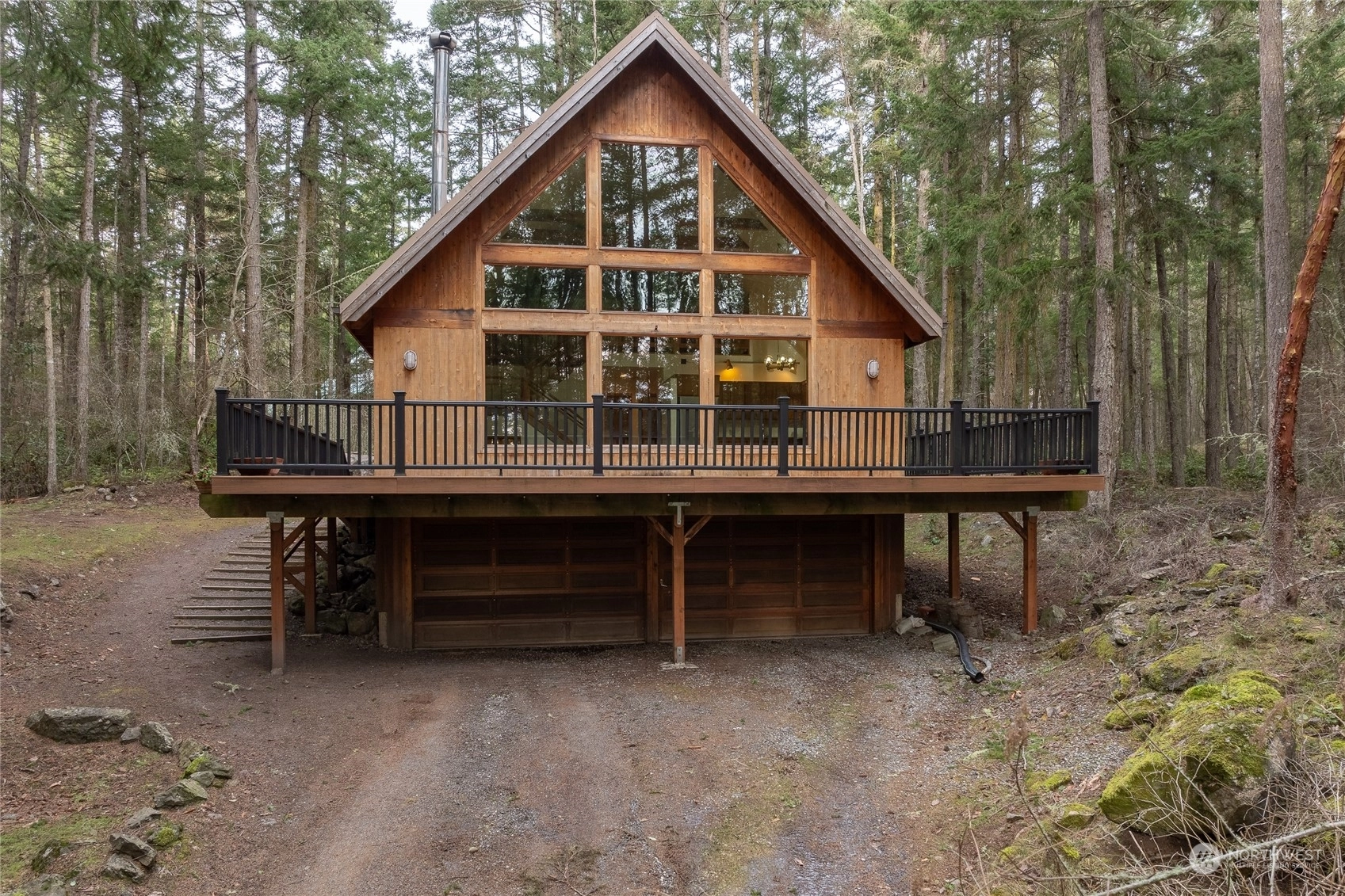 Experience nature at your doorstep in this sunlit, southwest-facing NW woodsy getaway! With a light-filled open floor plan featuring two bedrooms, one bath, vaulted ceilings, a large loft, a wood-burning stove, a kitchen with a pantry and dining nook, and plenty of storage throughout. Outside, the massive deck welcomes you and your morning cup of coffee with a peaceful view of towering trees and abundant wildlife. Bonus outdoor shower on the deck! On the market for the first time, this 1.59-acre private home is only minutes away from downtown Friday Harbor and a short walk to the water's edge at Turn Point Park.