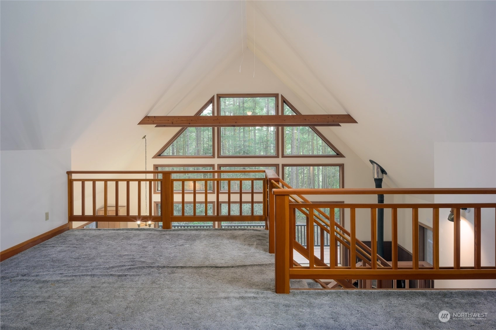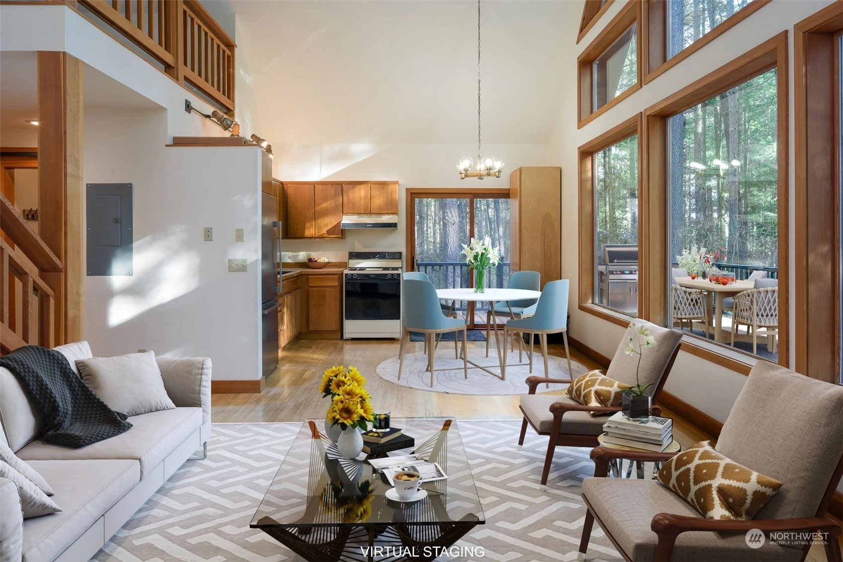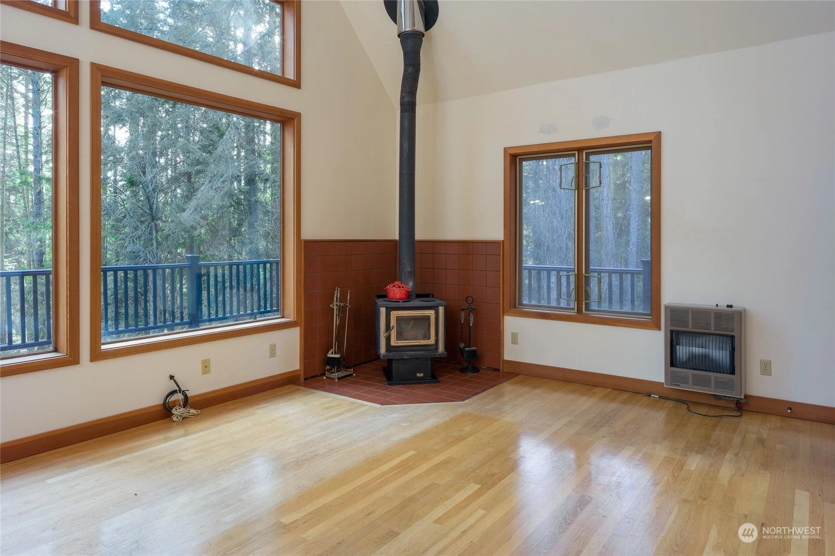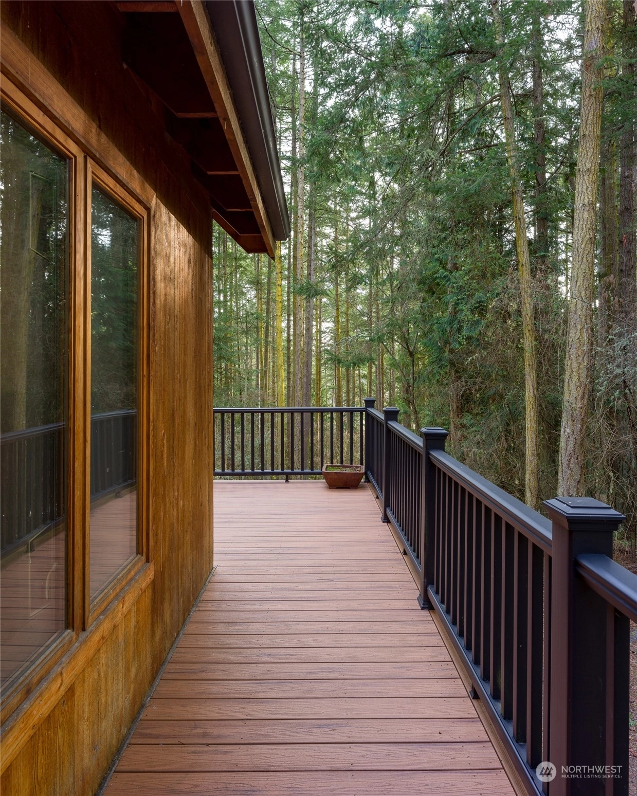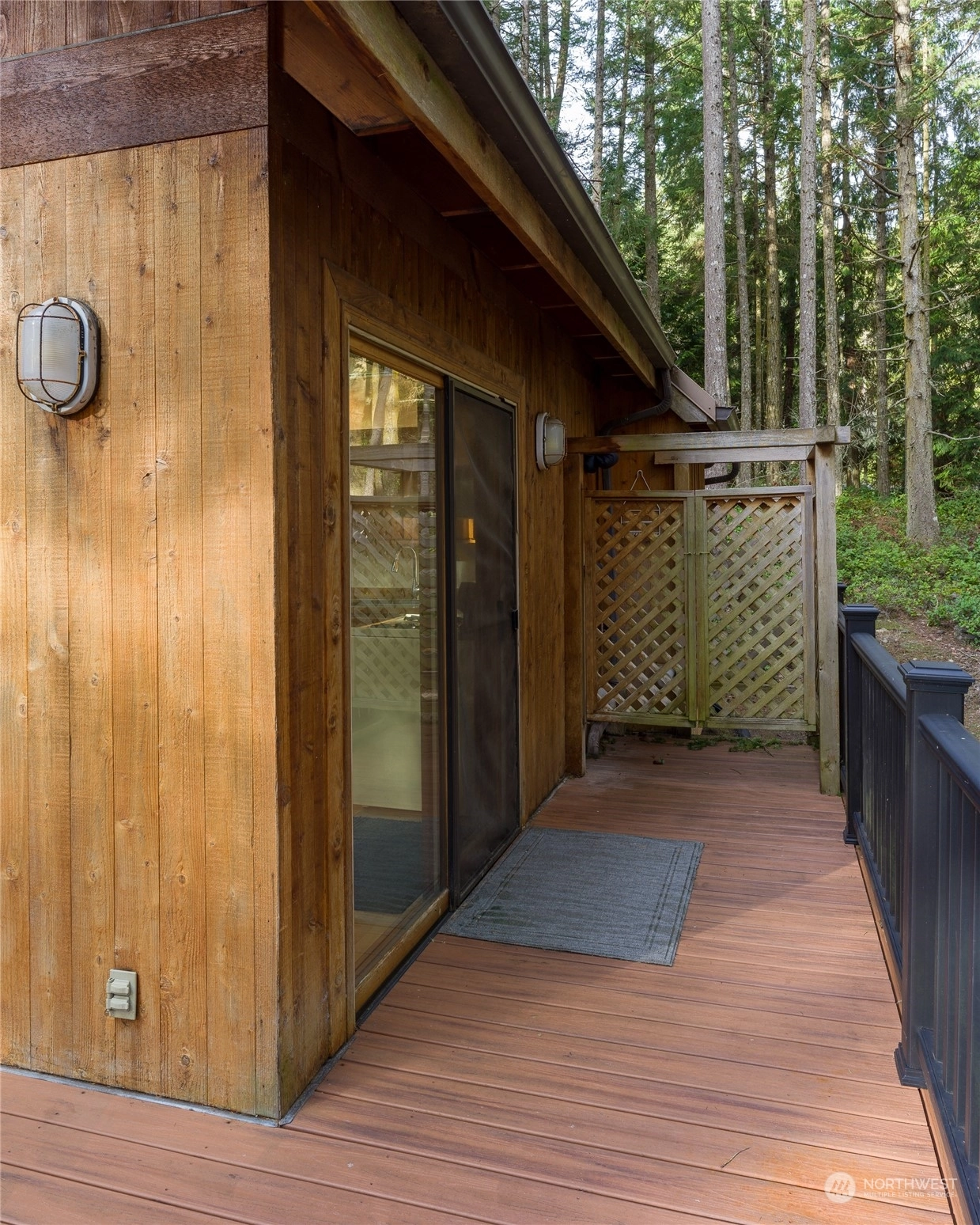 Experience nature at your doorstep in this sunlit, southwest-facing NW woodsy getaway! With a light-filled open floor plan featuring two bedrooms, one bath, vaulted ceilings, a large loft, a wood-burning stove, a kitchen with a pantry and dining nook, and plenty of storage throughout. Outside, the massive deck welcomes you and your morning cup of coffee with a peaceful view of towering trees and abundant wildlife. Bonus outdoor shower on the deck! On the market for the first time, this 1.59-acre private home is only minutes away from downtown Friday Harbor and a short walk to the water's edge at Turn Point Park.