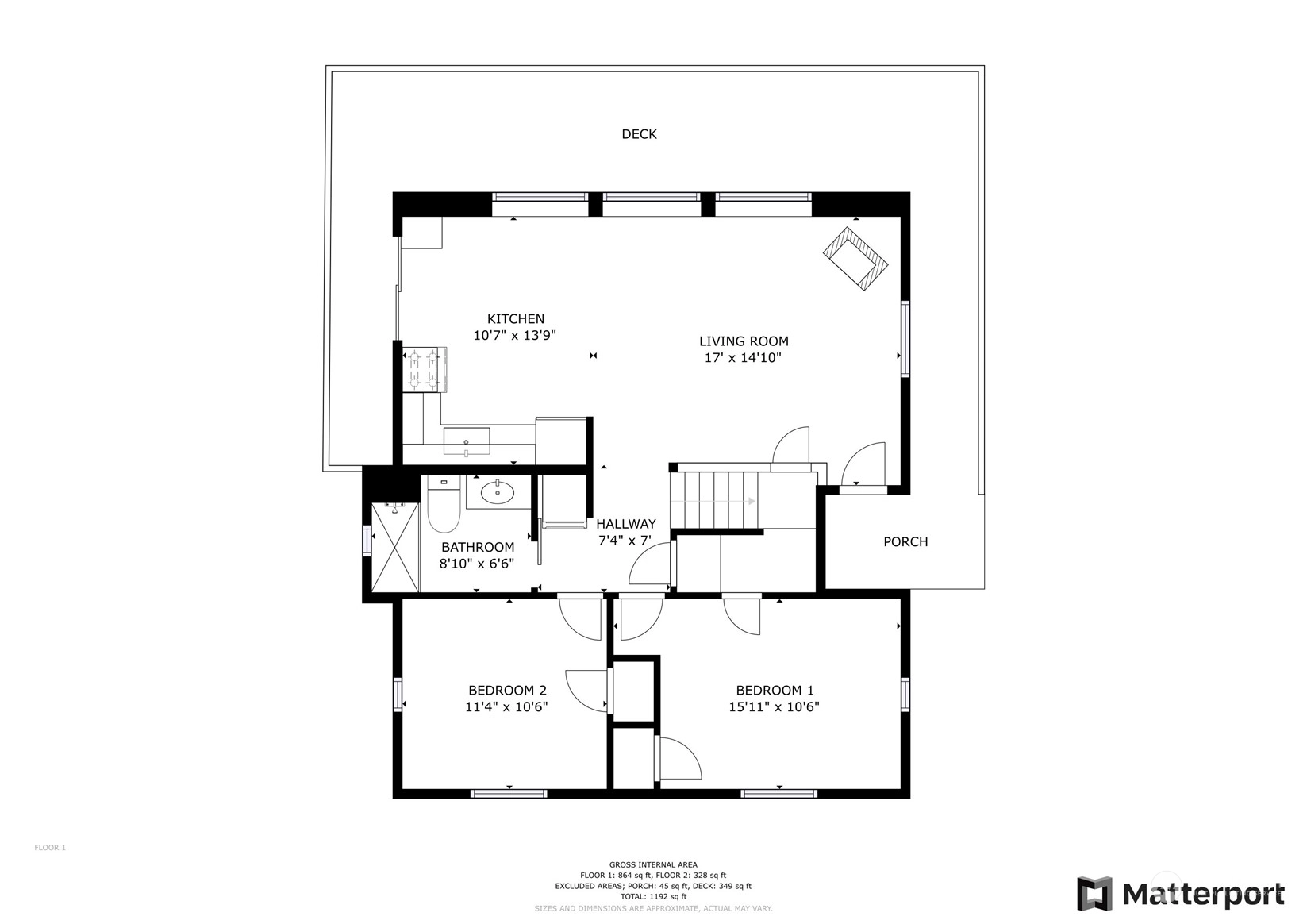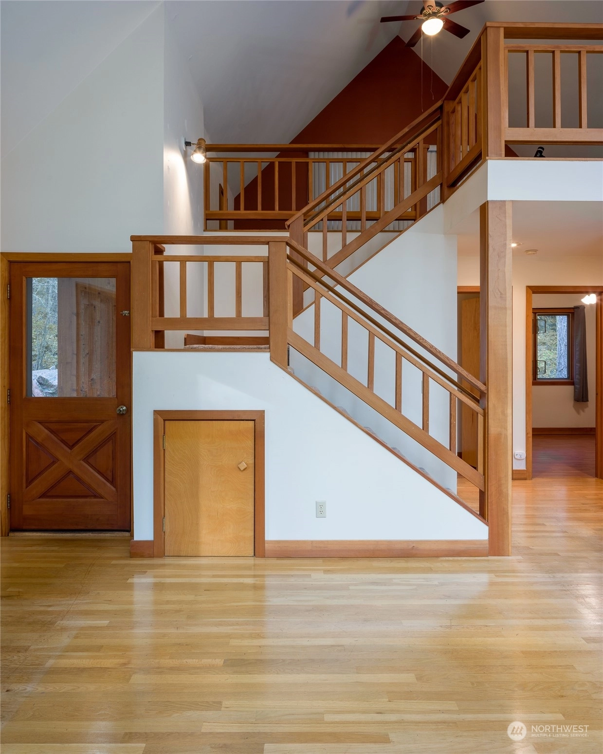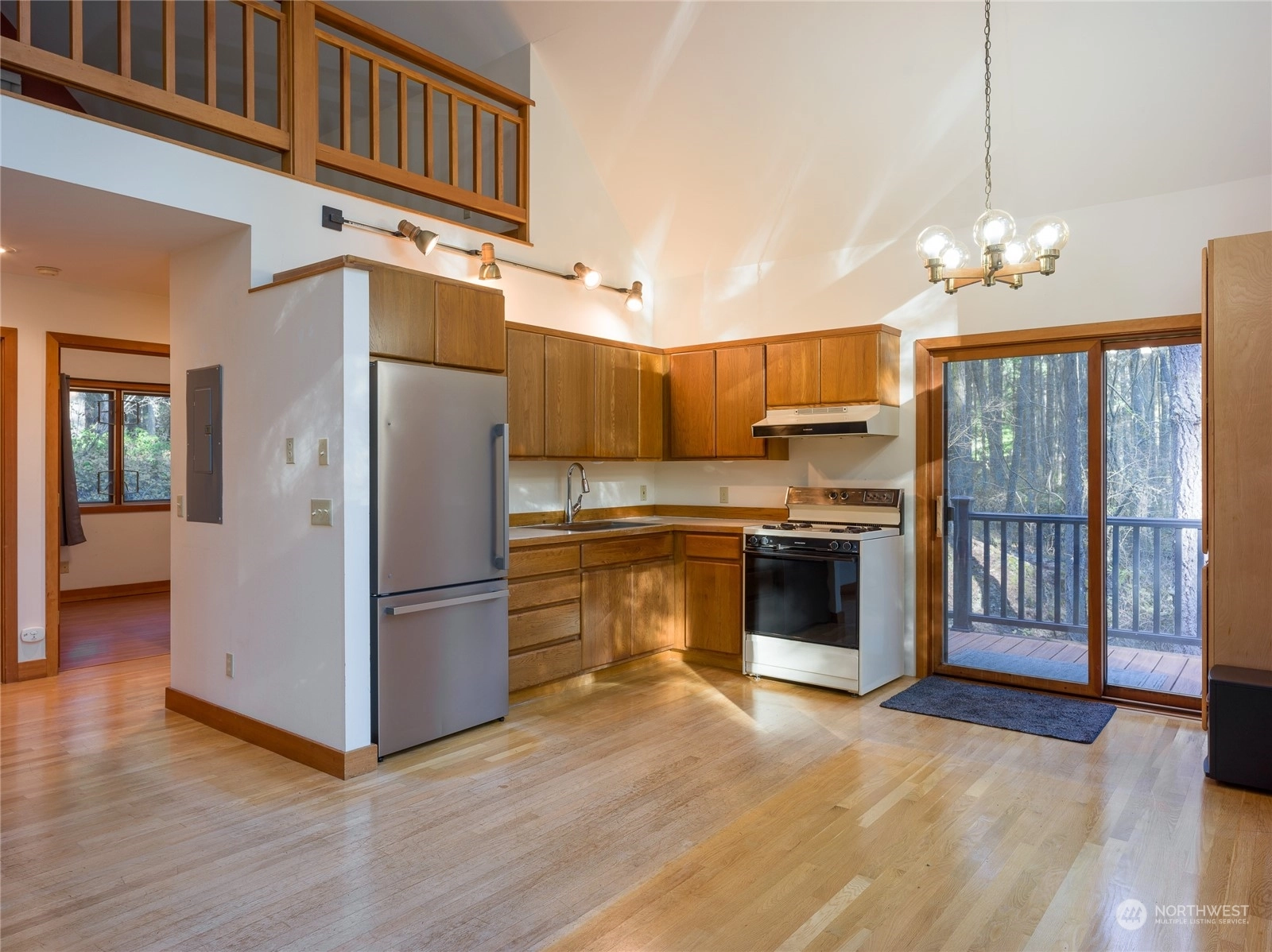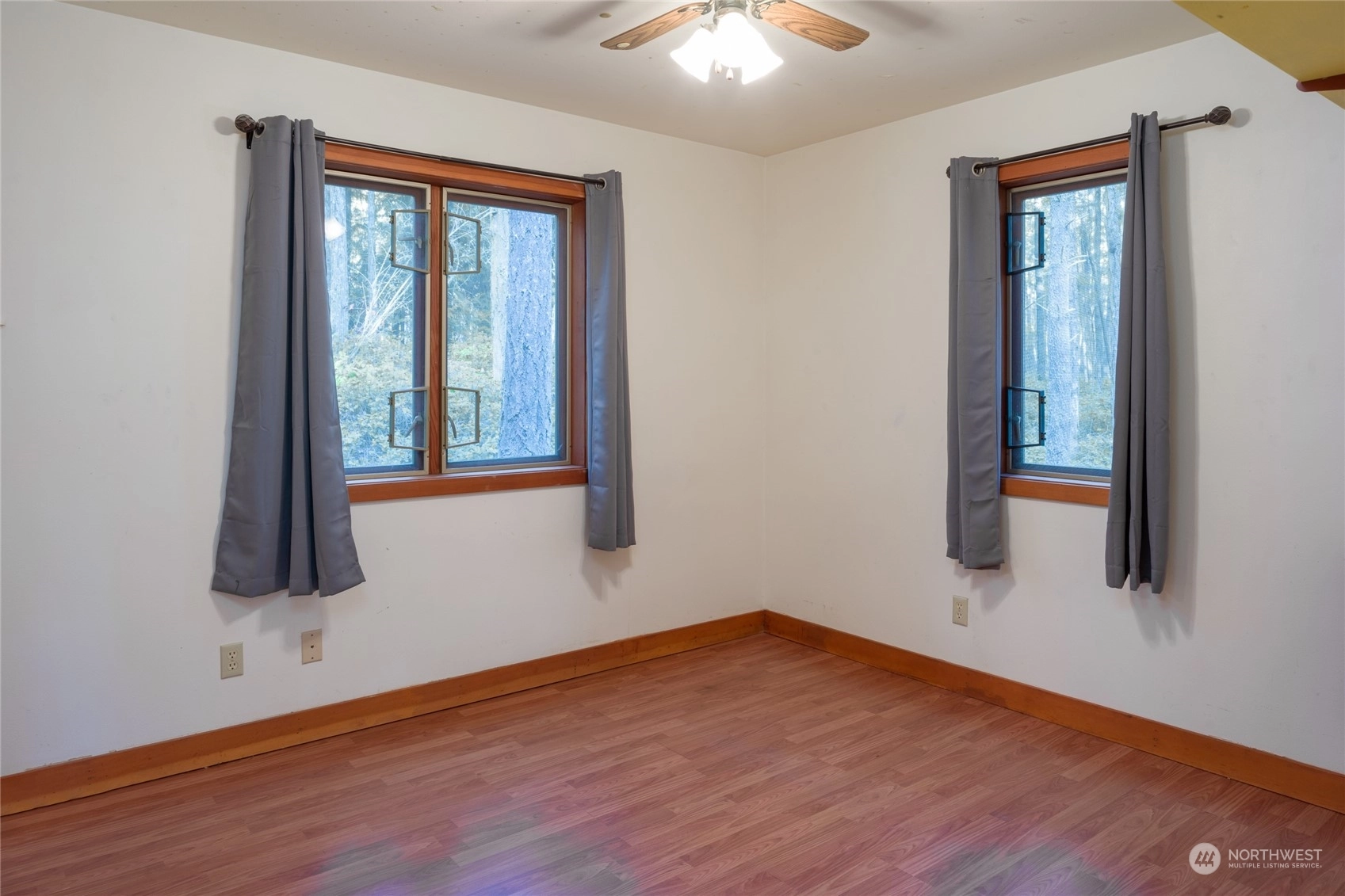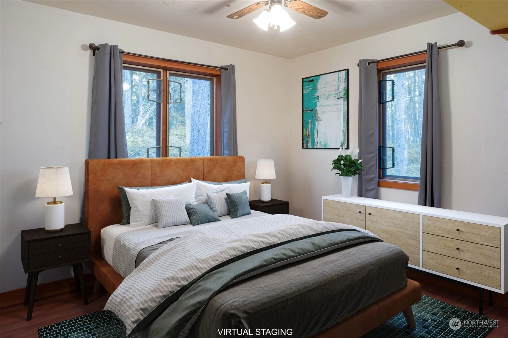 Experience nature at your doorstep in this sunlit, southwest-facing NW woodsy getaway! With a light-filled open floor plan featuring two bedrooms, one bath, vaulted ceilings, a large loft, a wood-burning stove, a kitchen with a pantry and dining nook, and plenty of storage throughout. Outside, the massive deck welcomes you and your morning cup of coffee with a peaceful view of towering trees and abundant wildlife. Bonus outdoor shower on the deck! On the market for the first time, this 1.59-acre private home is only minutes away from downtown Friday Harbor and a short walk to the water's edge at Turn Point Park.