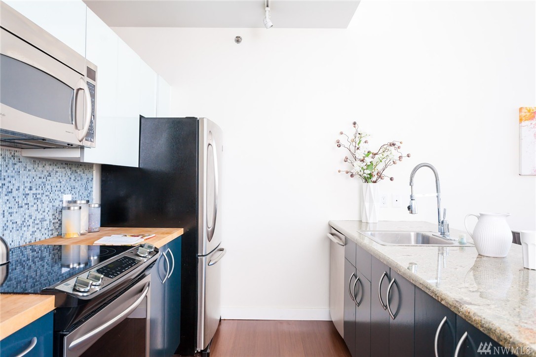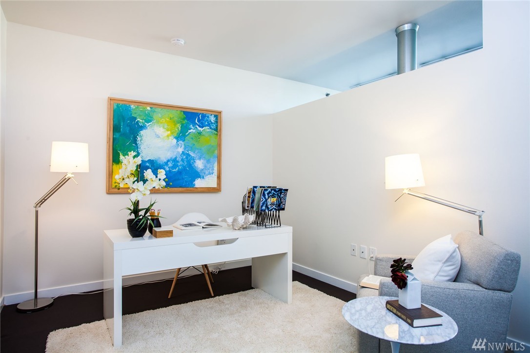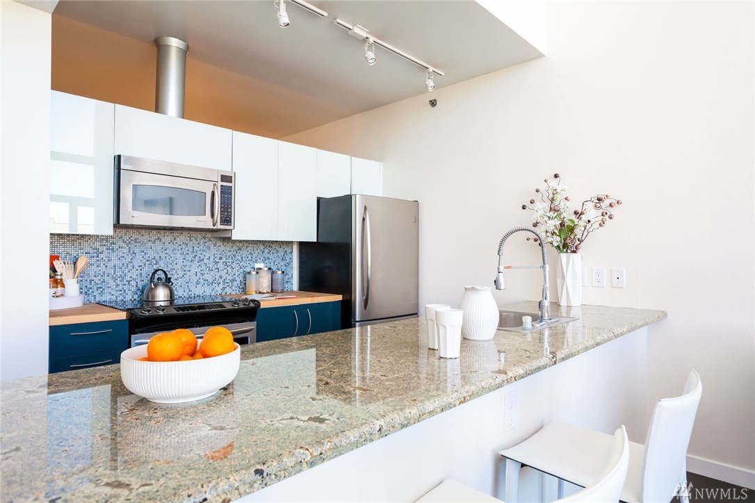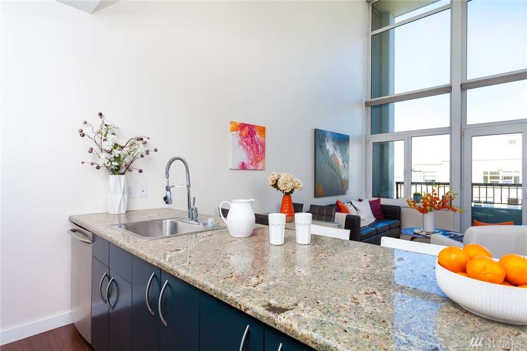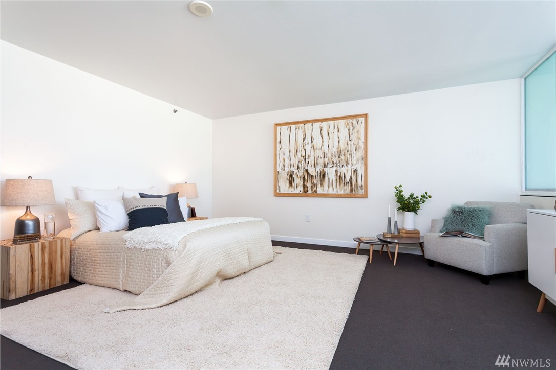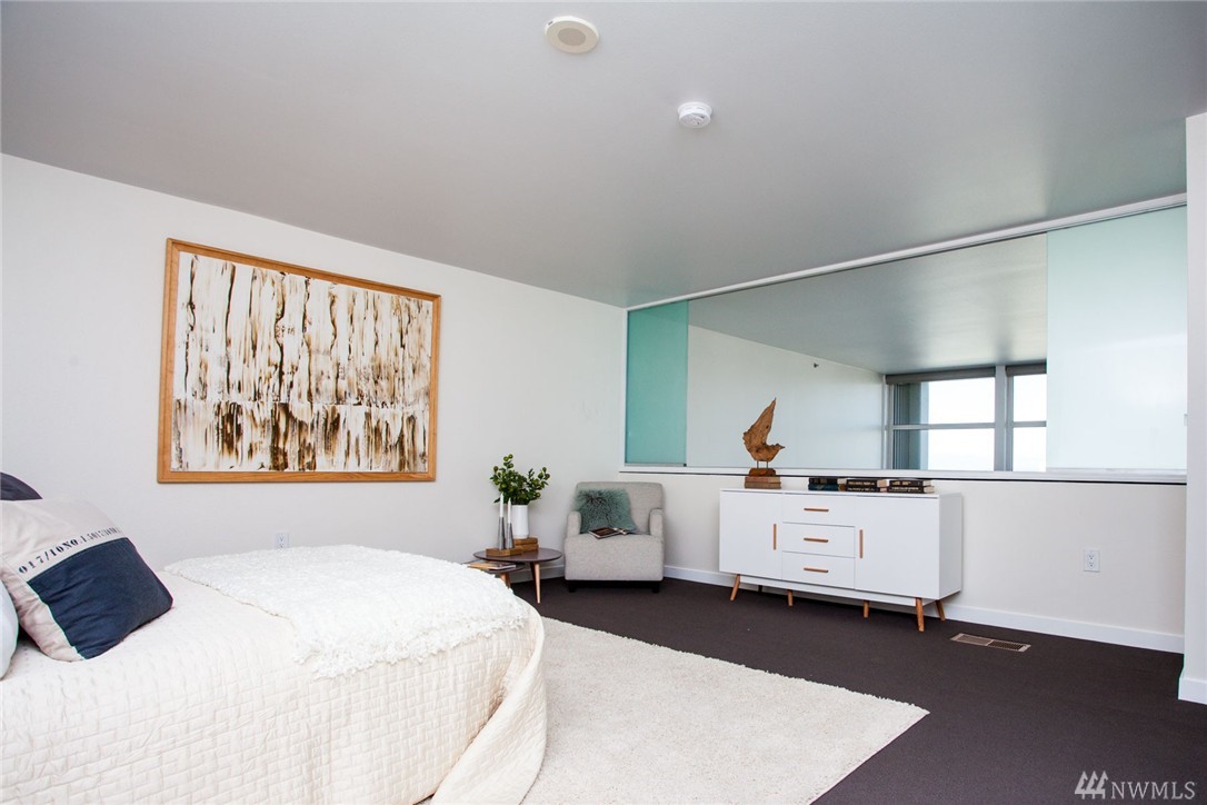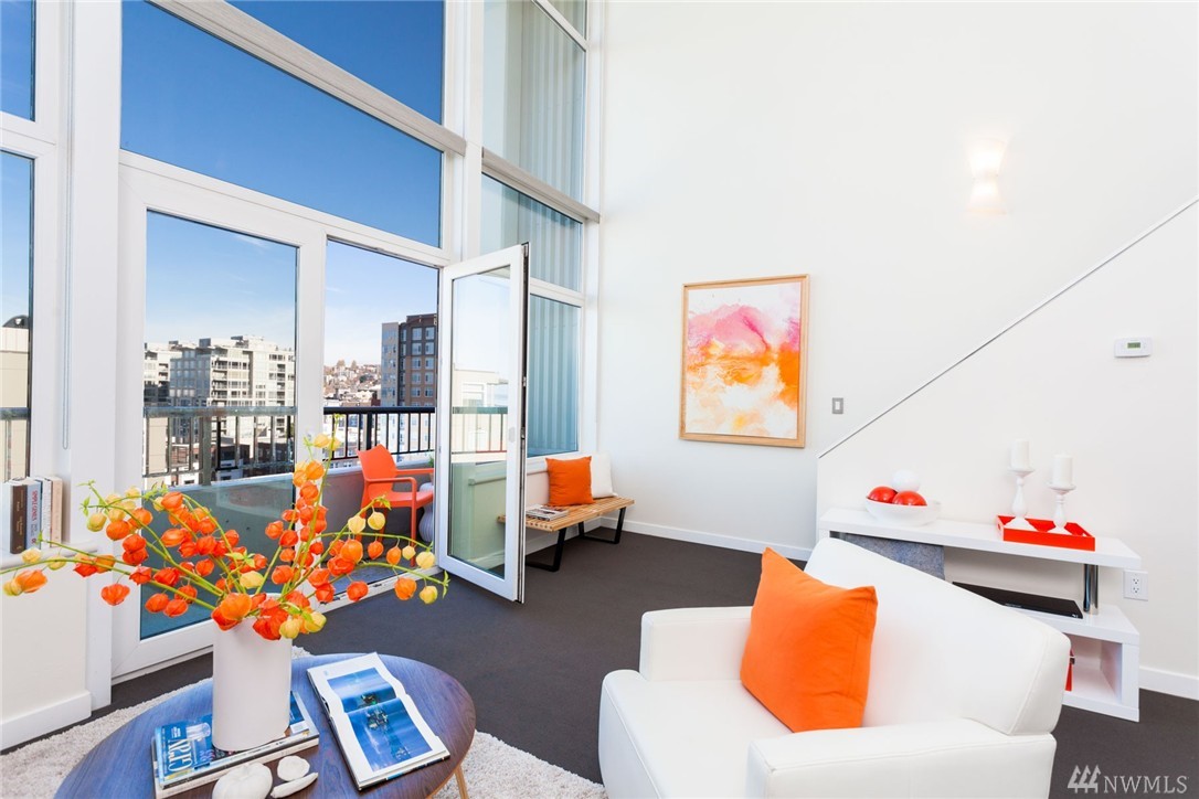 Gorgeous modern lines with this Penthouse at the artist inspired Klee condominiums! With soaring 22' ceiling's, facing true NW, this is Rare opportunity to live in a two story, 2 bedroom 2 bath overlooking Elliott Bay, the SAM Sculpture Park and the Space Needle. Inside the spacious air-conditioned home featuring Slab granite counters, stainless steel appliances, modern cabinetry w/custom frosted glass faces, an incredibly spacious Master retreat all in the heart of Belltown high above it all!