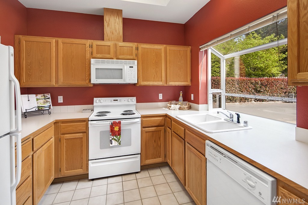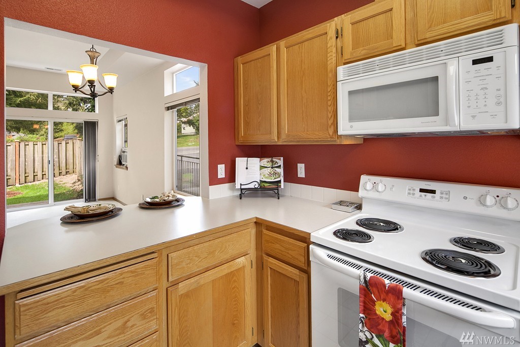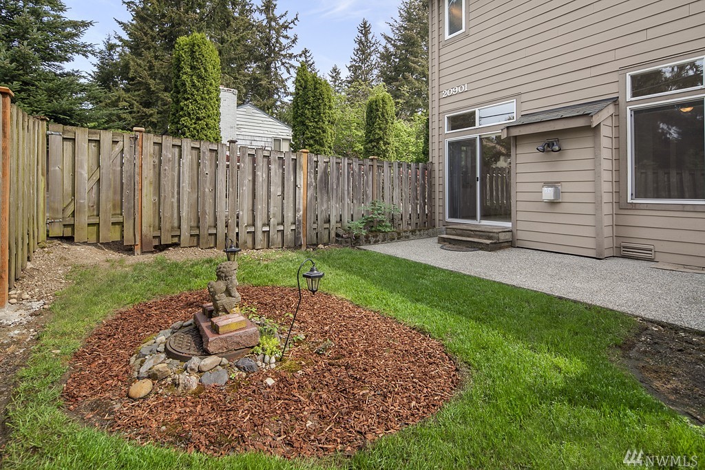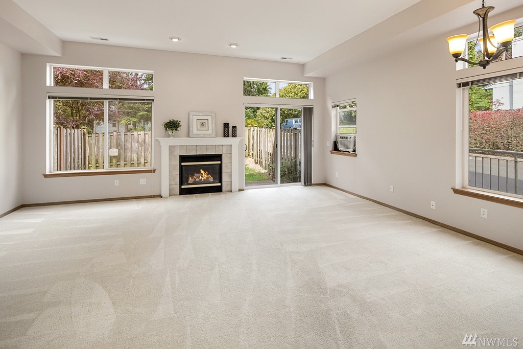 Beautiful, light and bright end unit townhome featuring 1229 spacious sq ft, 2 bd/2.25 ba. with extra tall ceilings throughout. Living room has a cozy gas fireplace with slider to patio/fenced backyard area. French doors lead to master suite with 2 closets & en-suite master bath. 2nd bedroom, laundry room & hall bath up. Commuters dream-7 min to Canyon Park, 4 min to Alderwood Mall & a bus stop right out front. 1 car garage with storage, brand new hydronic heating system, all appliances stay!