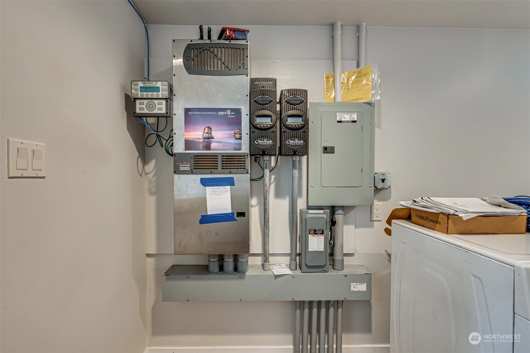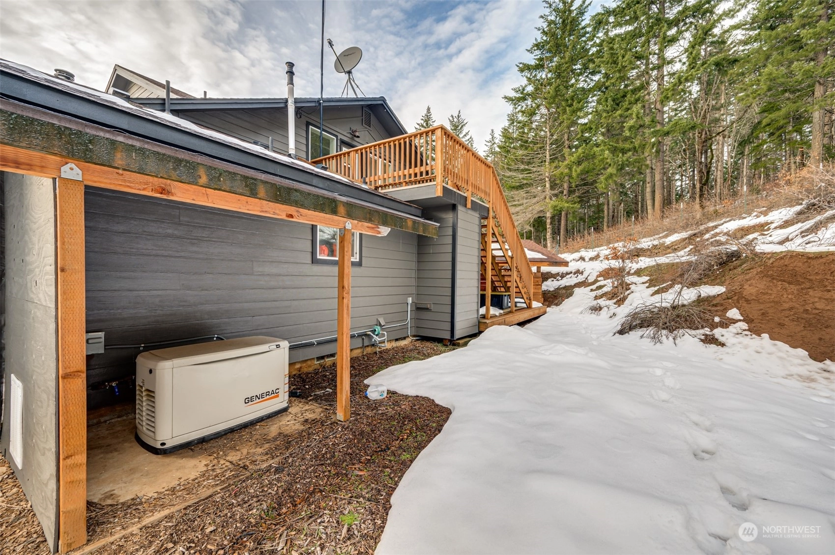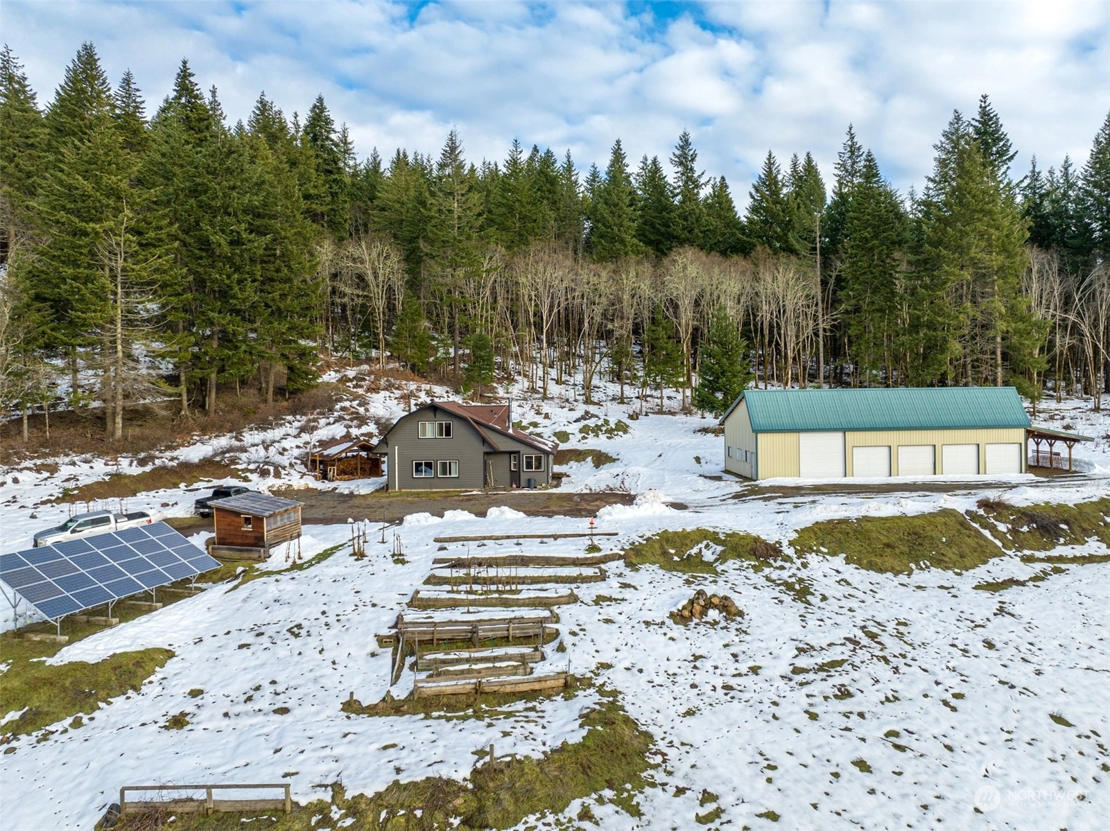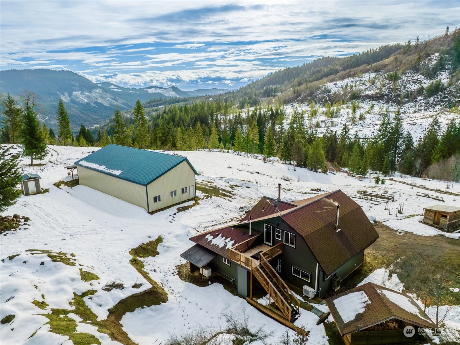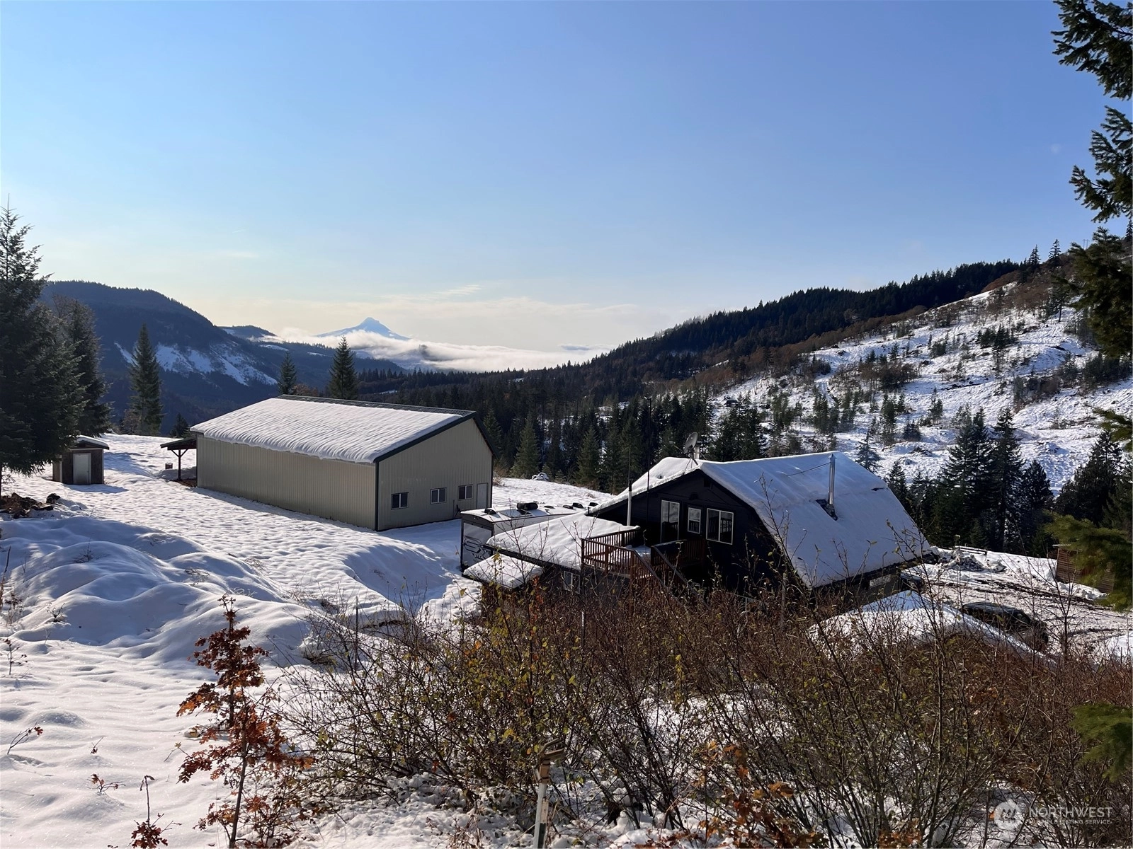Off grid with "Outback Solar" and 16 Trojan Battery Storage System. Brand new Generac 25kW propane generator with 1,000 gallon propane tank. Mini Split recently installed for additional heating and cooling option. Wood stove for cooking or heat source and electric range. Additional wood stove for heat. Main floor living with den, large pantry, open kitchen and laundry with full bath. Upper level bedroom and bath. Situated on approximately 75 acres, this property offers both end of the road privacy and gorgeous Mt. Hood Views. 30' x 72' 5 bay shop with carport. Storage shed, hay cover, utility shed. Fully functional off grid. Additional 40 acre parcel available adjacent and to the south would make this an approximately 120 acre tract.