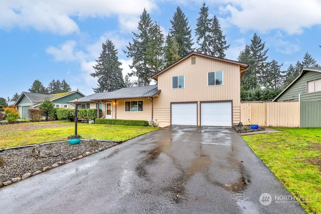 Welcome to charming 4br, 1.75ba home in Robin Hood Estates! This well-loved 1 & 1/2-story gem offers cozy living with natural light, a floor-to-ceiling fireplace, and a spacious kitchen with lots of storage. On the main level, you'll find three generously sized bedrooms perfect for comfortable living and a full bath for added convenience. Above the garage, discover a sizeable primary room with a bath, perfect for guests, and a bonus room, ideal for an office or additional living space. Plus, enjoy peace of mind with a new roof. Outside, entertain in the fully fenced backyard with a patio. Long driveway for RV/boat parking. No HOA. Close to the golf course, JBLM, and walking distance to schools. Don't miss out – schedule your viewing today!