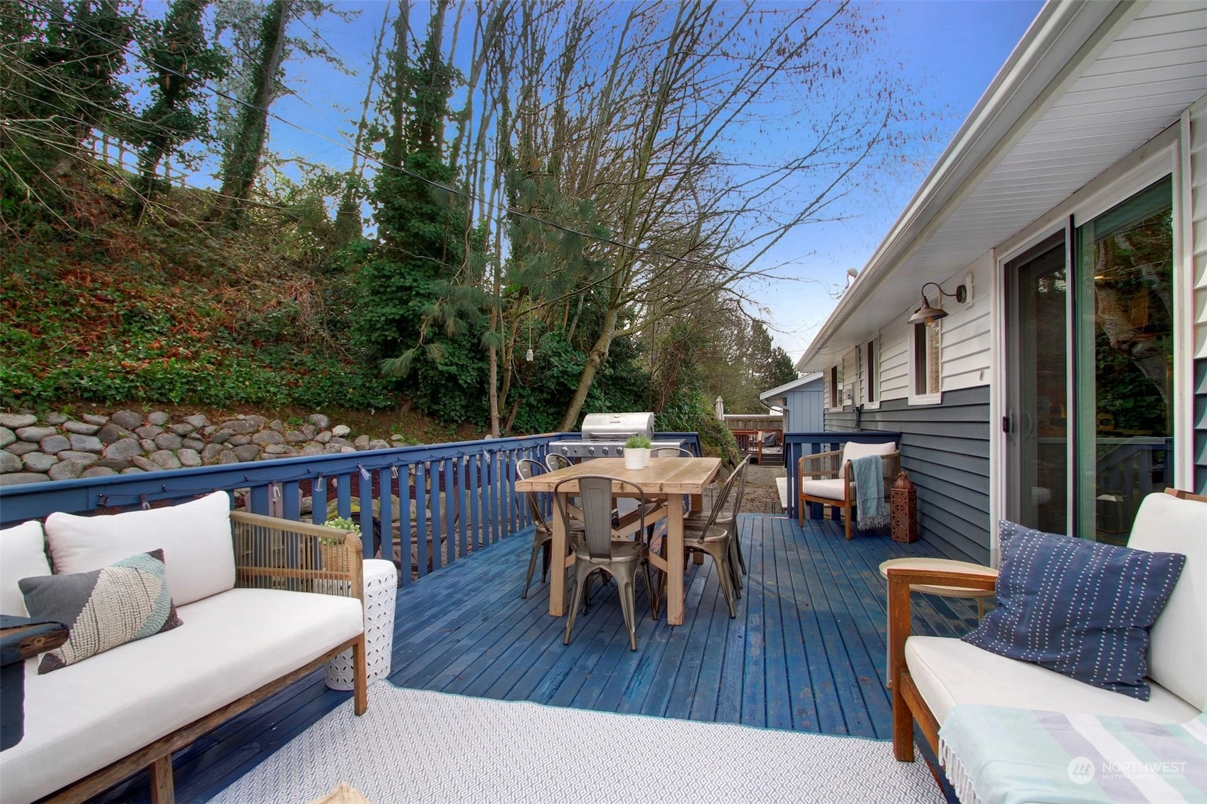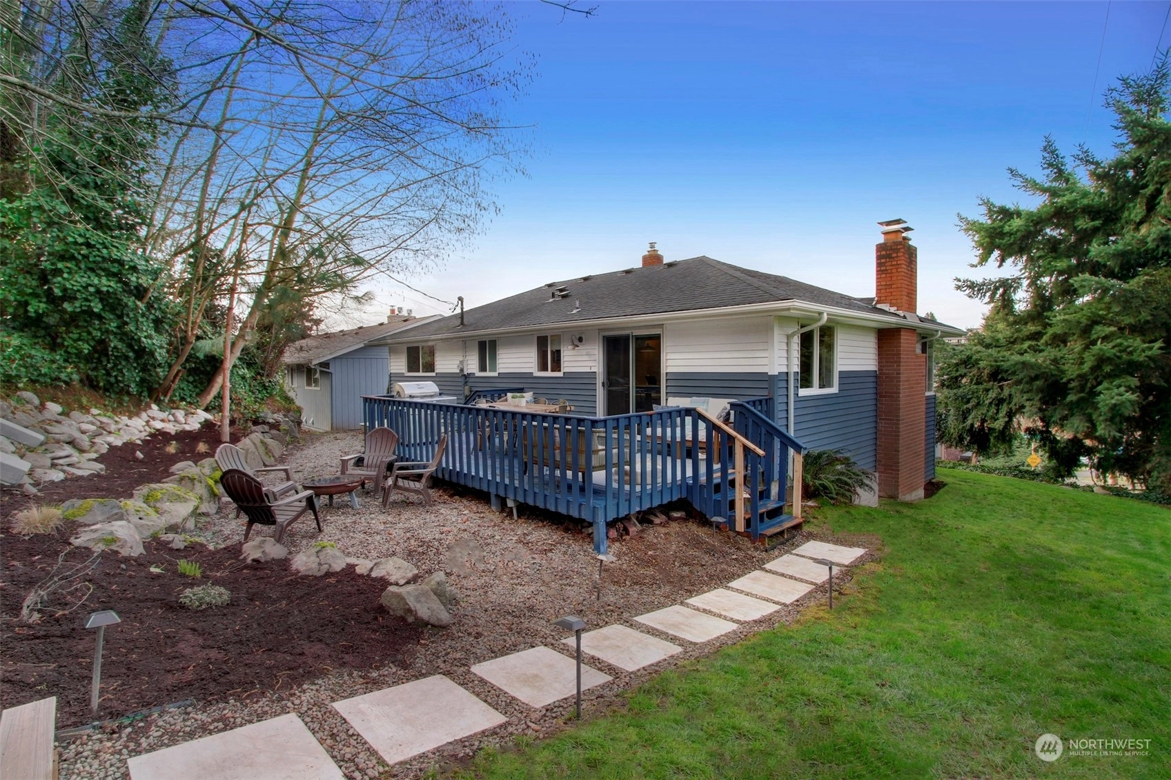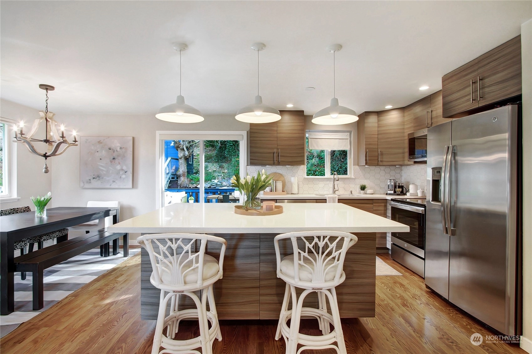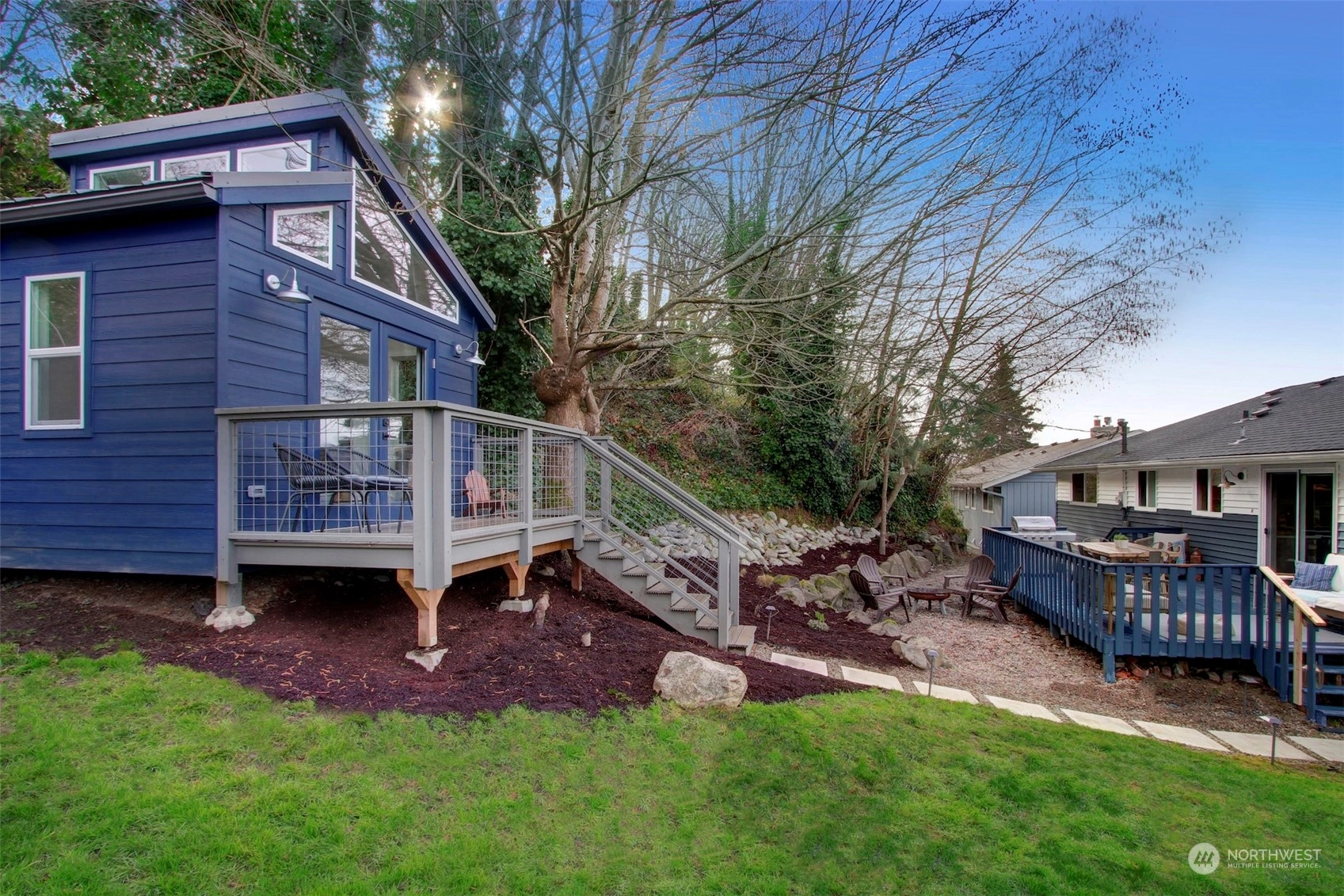 Beautifully updated and well-maintained 4 bedroom/3 bathroom home, with the sought after features of new construction, on a quiet dead-end street. An Urban Oasis backing up to a forested green belt, yet close to Alaska Junction and its amenities. Under a minute walk to Fairmount Park Elementary and neighborhood park. Light and bright, open Great Room main floor plan, great for entertaining. Kitchen features large island, quartz countertops, and stainless appliances. Main floor Primary suite with walk in closet and private bath. Spacious lower-level rec room. Newly-built detached building, perfect for home office or exercise space. Nothing to do but move in and enjoy!