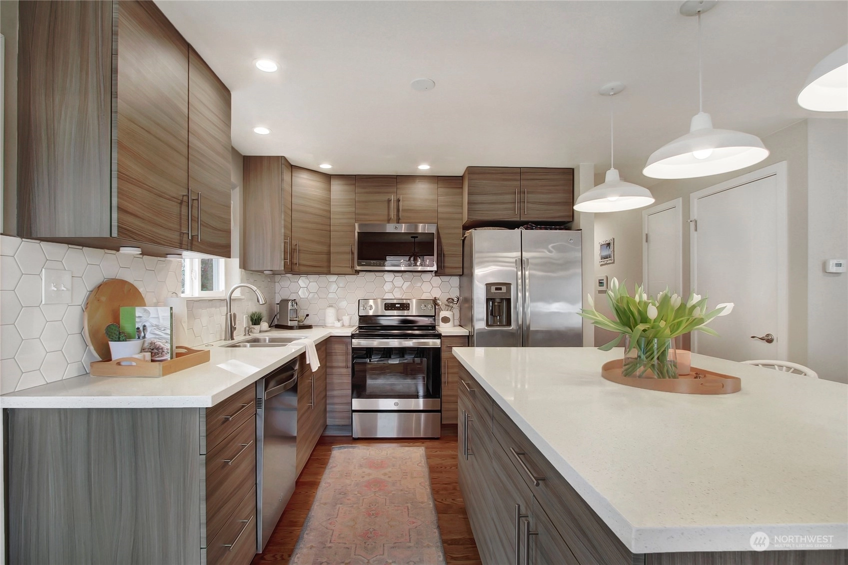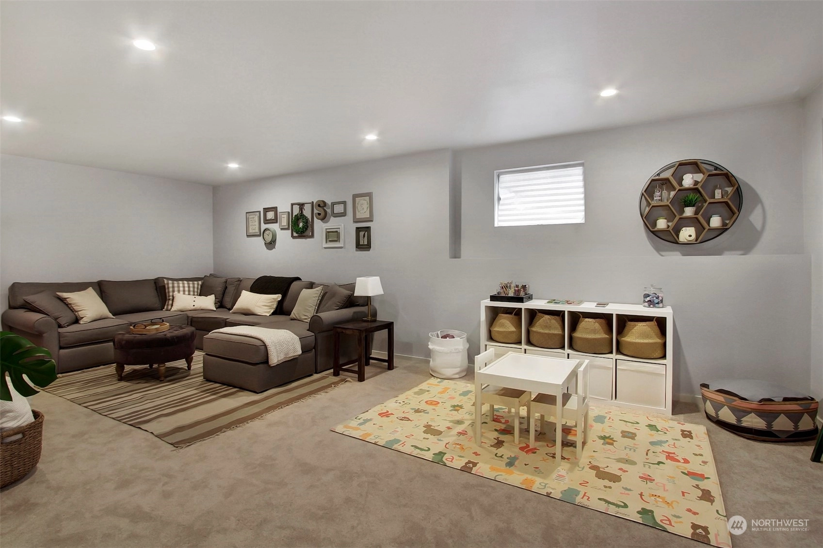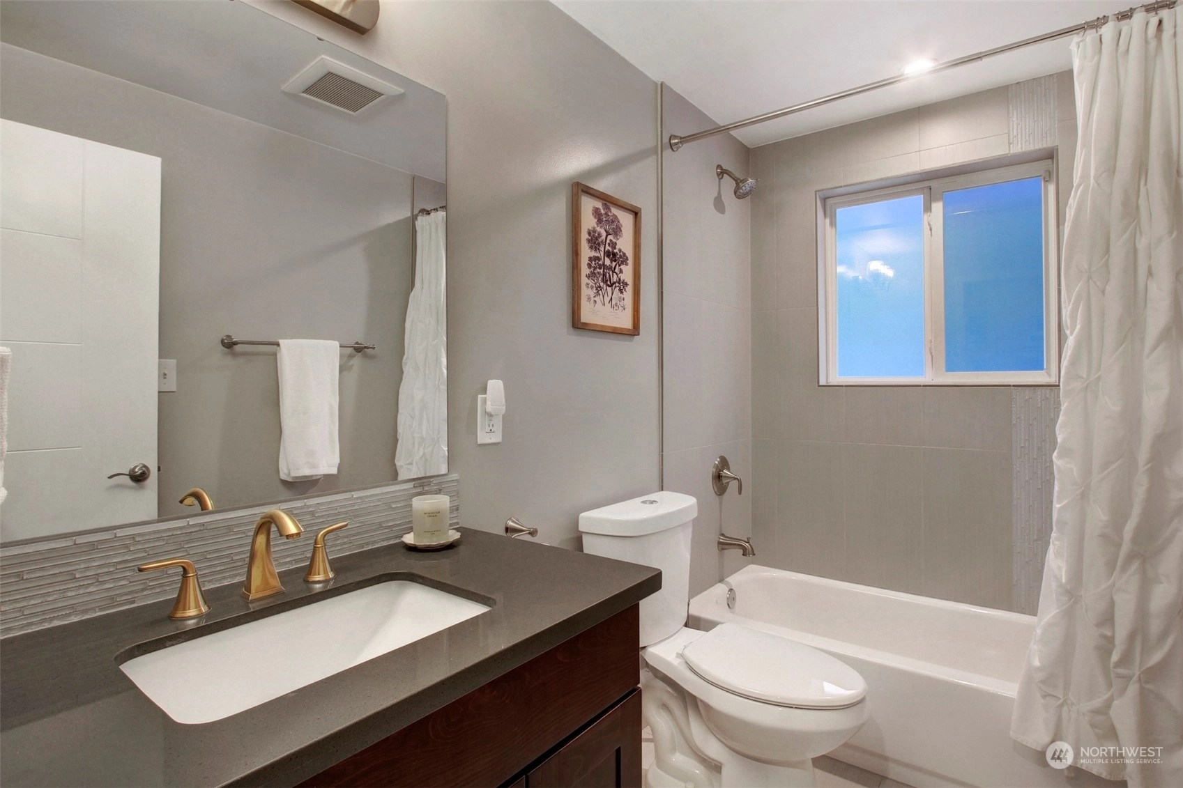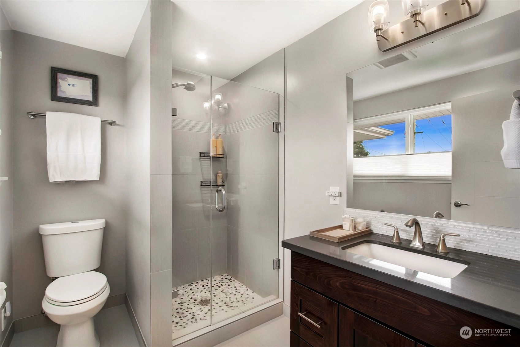 Beautifully updated and well-maintained 4 bedroom/3 bathroom home, with the sought after features of new construction, on a quiet dead-end street. An Urban Oasis backing up to a forested green belt, yet close to Alaska Junction and its amenities. Under a minute walk to Fairmount Park Elementary and neighborhood park. Light and bright, open Great Room main floor plan, great for entertaining. Kitchen features large island, quartz countertops, and stainless appliances. Main floor Primary suite with walk in closet and private bath. Spacious lower-level rec room. Newly-built detached building, perfect for home office or exercise space. Nothing to do but move in and enjoy!