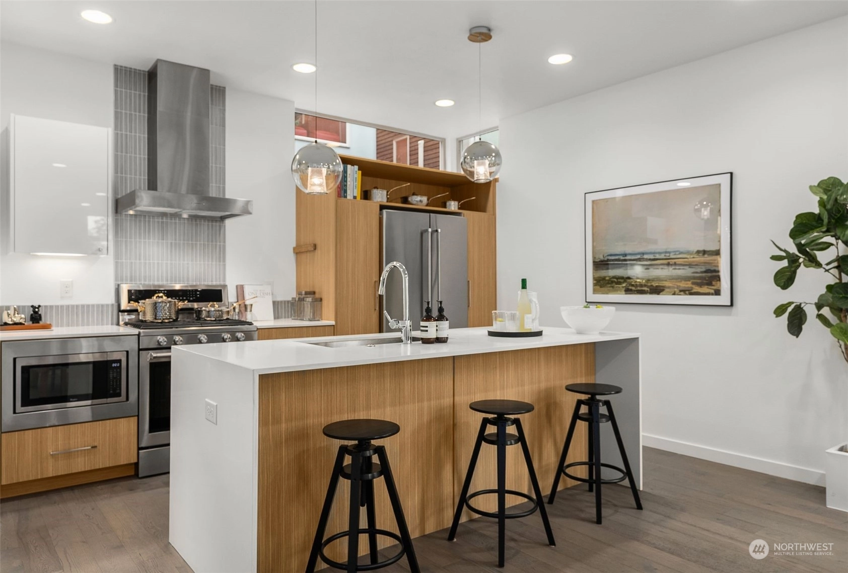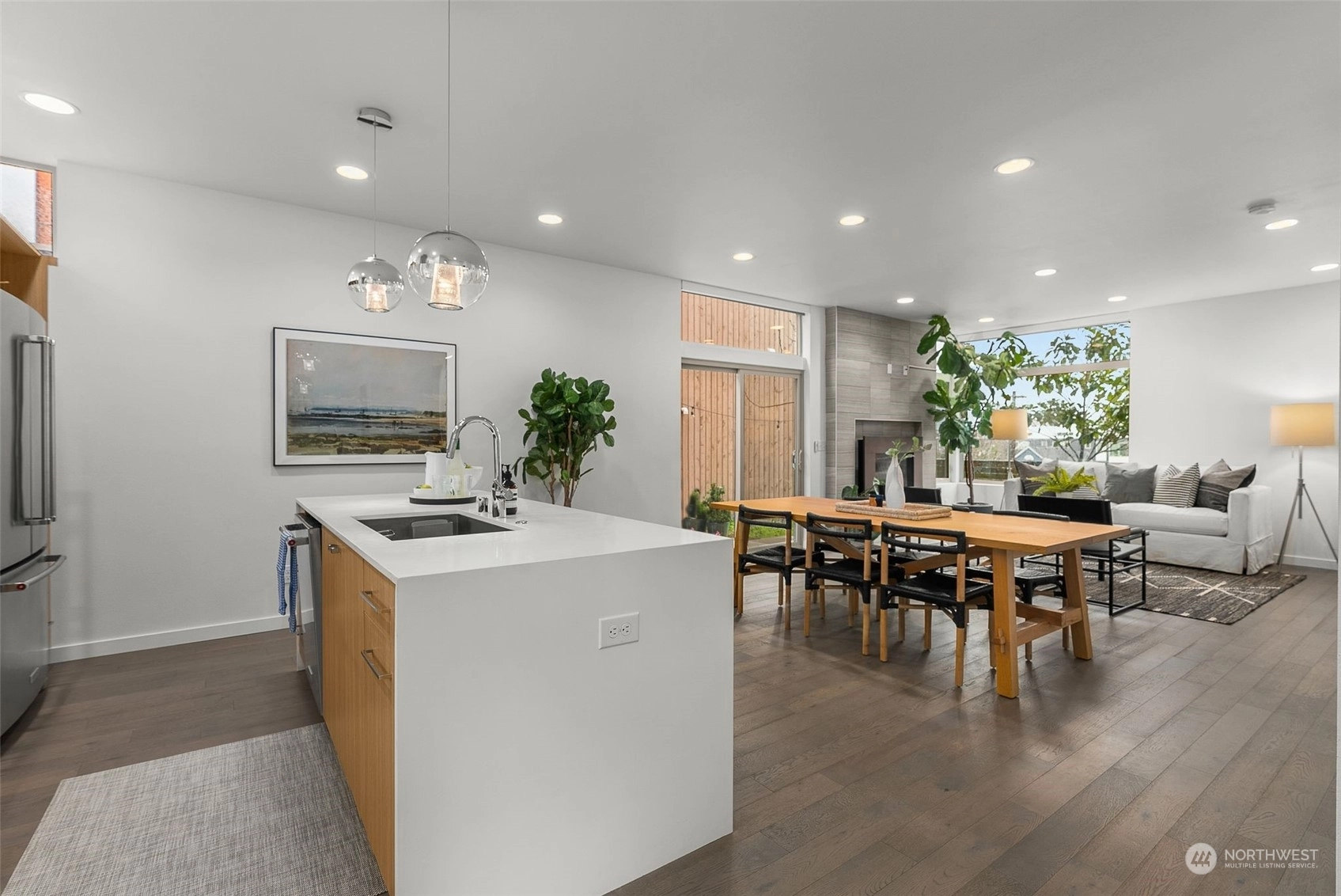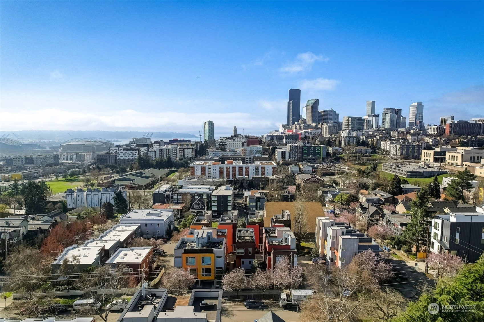 Nestled in the vibrant heart of Seattle's Central Area neighborhood, this standalone home offers expansive views of the stadiums and the city from 2 balconies and Rainier from a custom made elevated rooftop deck. Before entering, enjoy inviting fruit bearing fig and cherry trees & a designated parking space. Meticulously designed interior, radiant in floor heating, state-of-the-art finishes, high ceilings, an abundance of natural light illuminates every corner. With 3 spacious bedrooms & 2.5 contemporary bathrooms, an open living area, anchored by gourmet kitchen w/sleek gas appliances & elegant countertops. Located near Uwajimaya, Amazon Fresh, L'Oursin, Ba bar, Hello Em and much more. Perfect setting for entertaining or quiet relaxation.