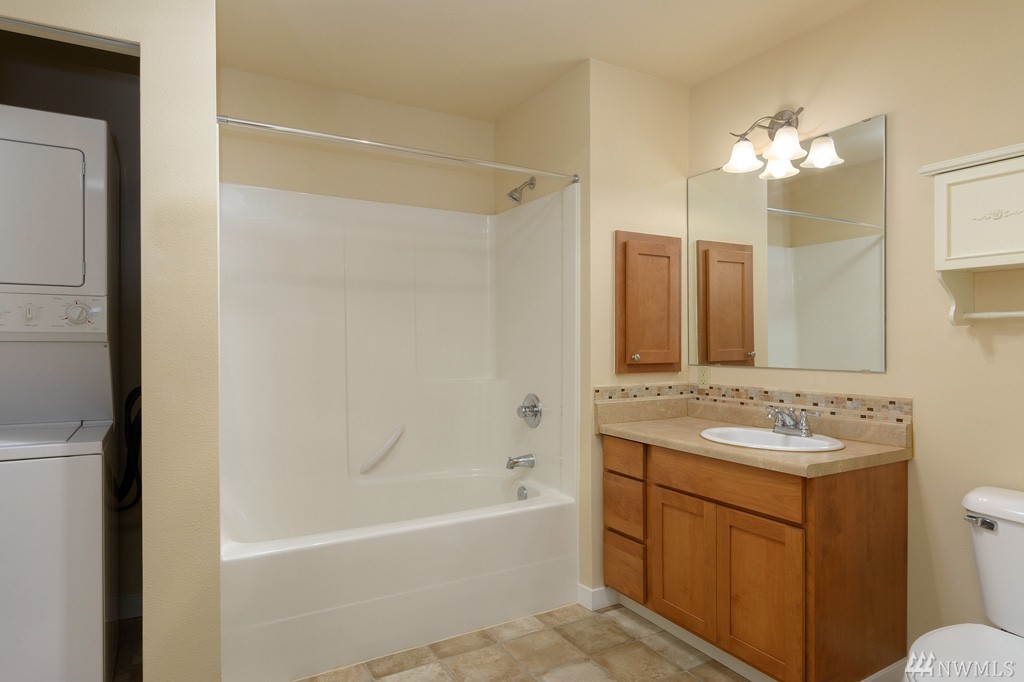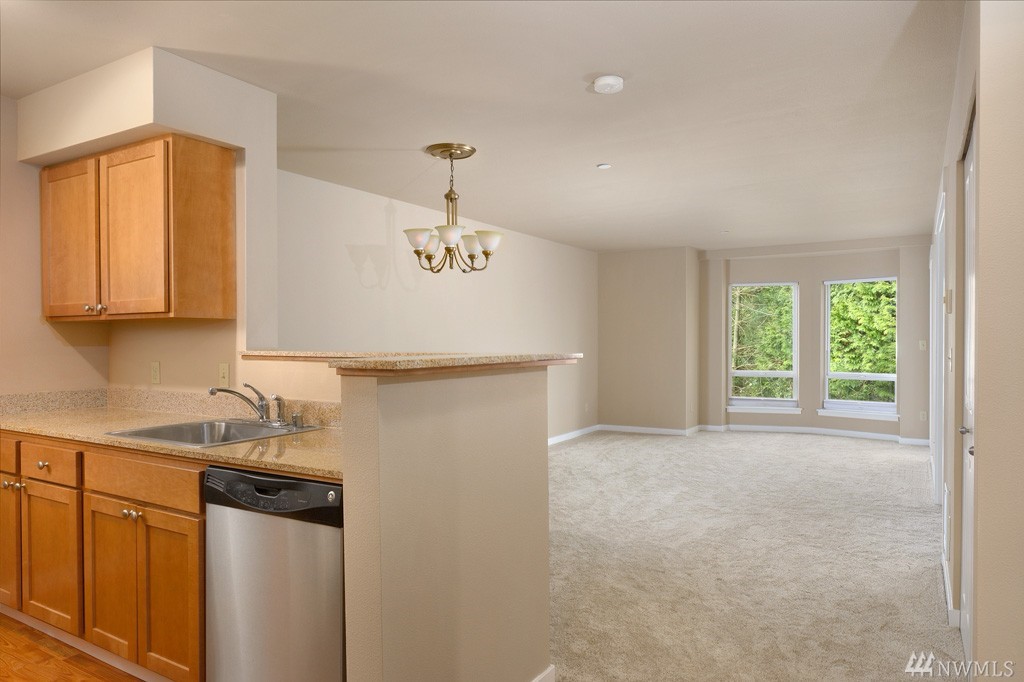 Sunny one bedroom one level living close to everything! New carpet, laminate floors and cabinetry in the bathroom. Stainless appliances, granite counters and light colors through out. Enjoy morning coffee on your private western facing deck. Convenience of Starbucks, Safeway and Rite Aid just across the street. Ferry is just minutes away, perfect for commuters! Immaculate and ready for you!
