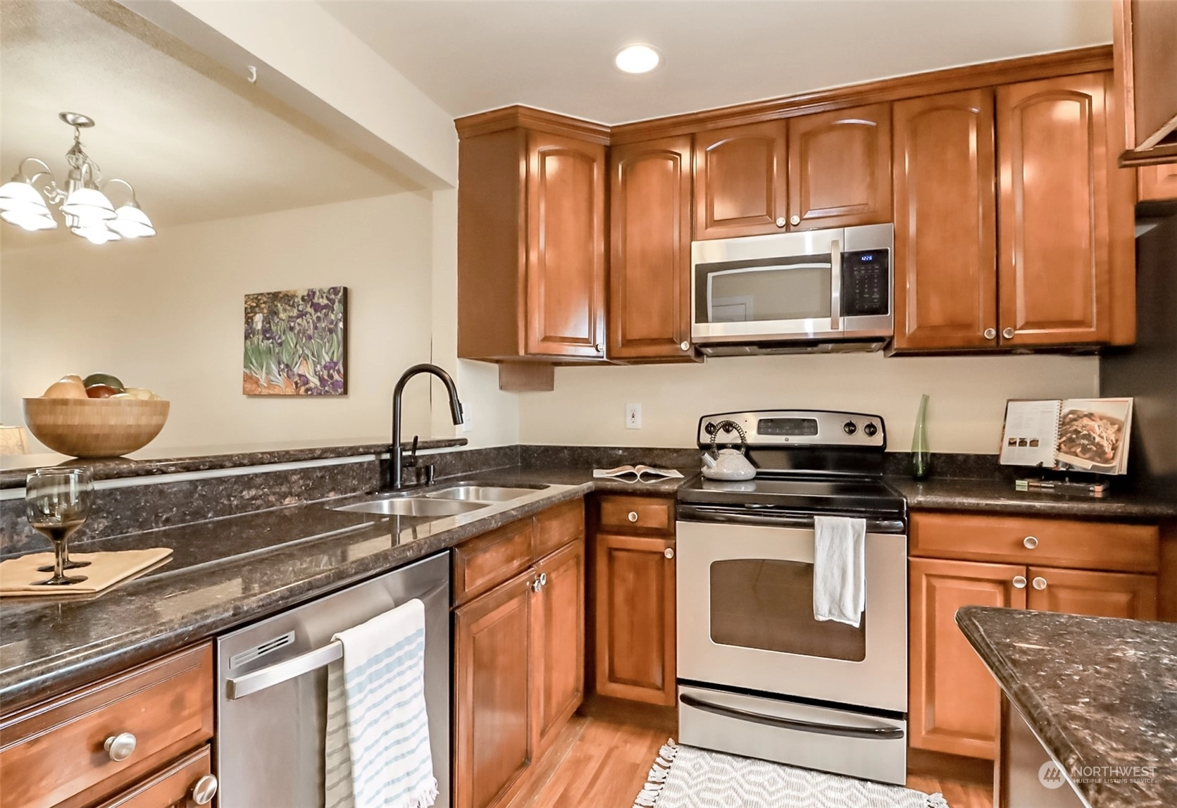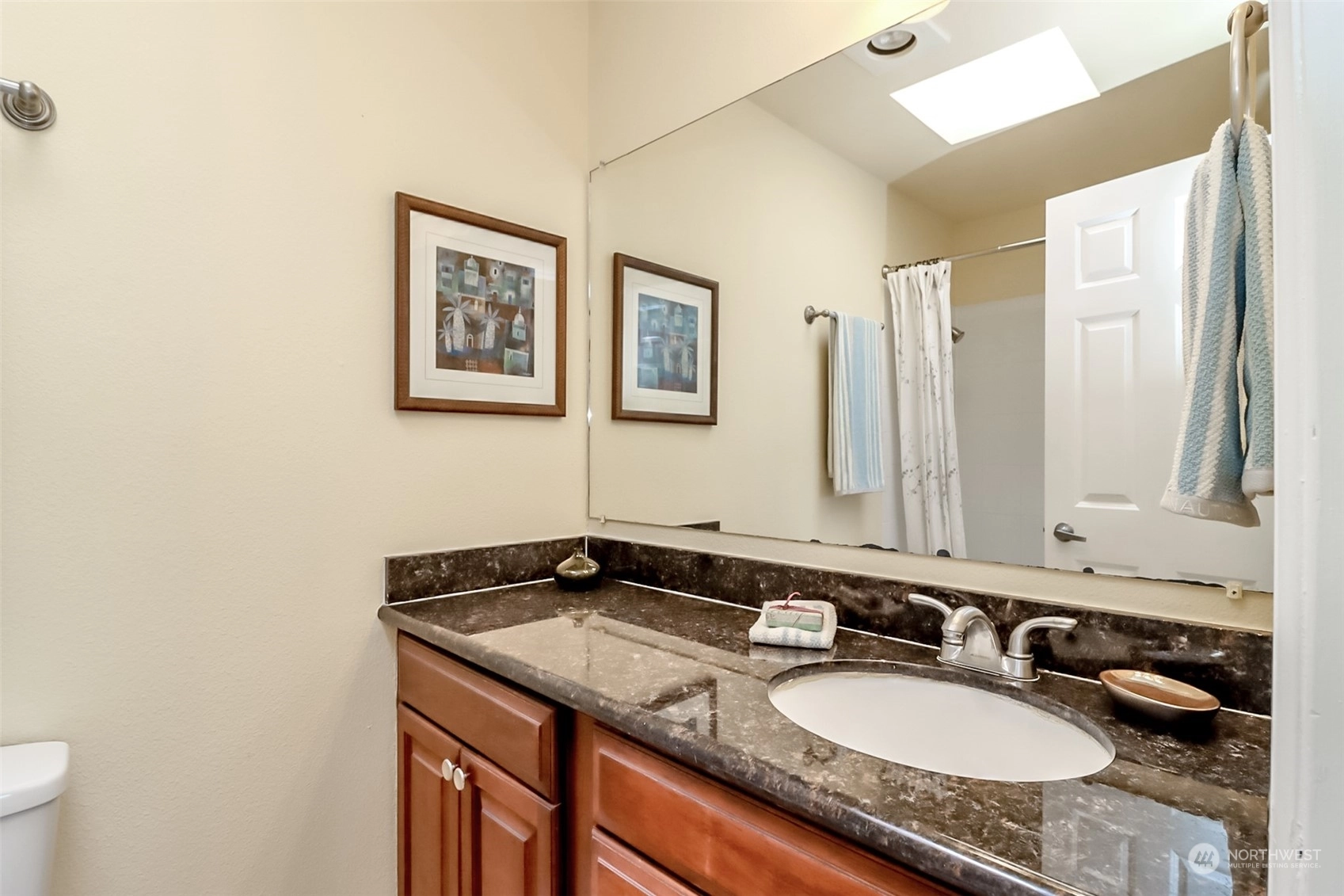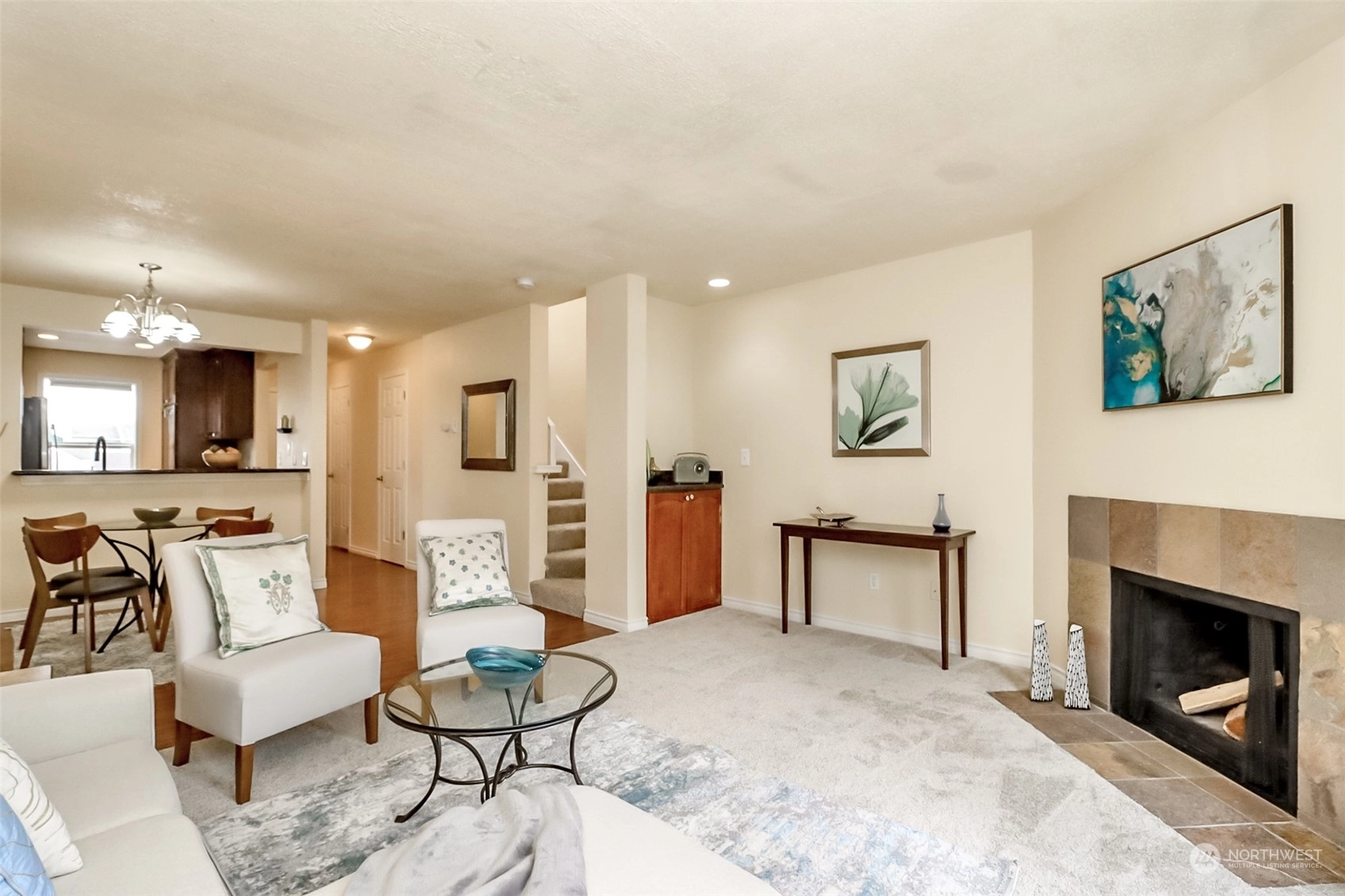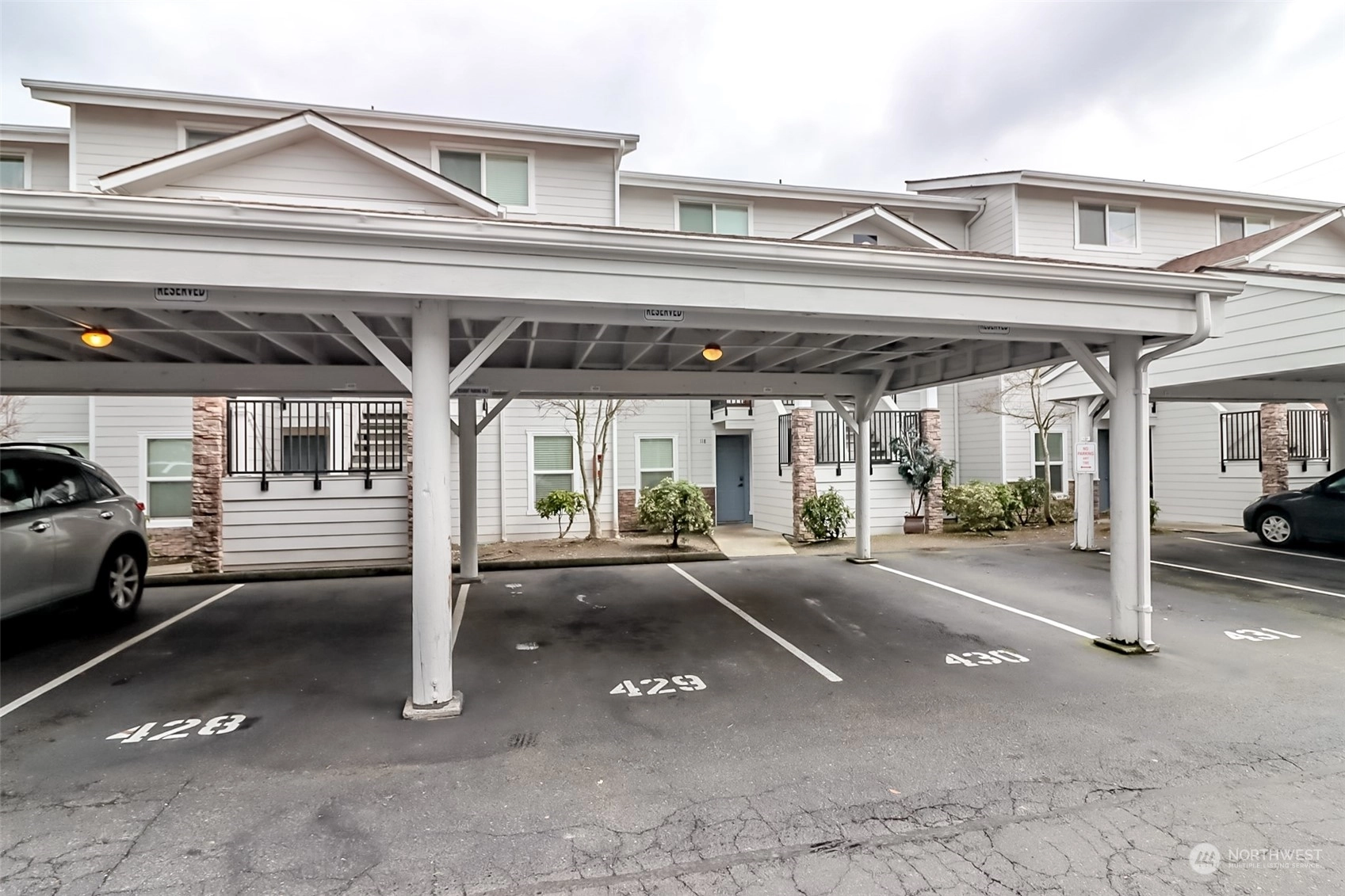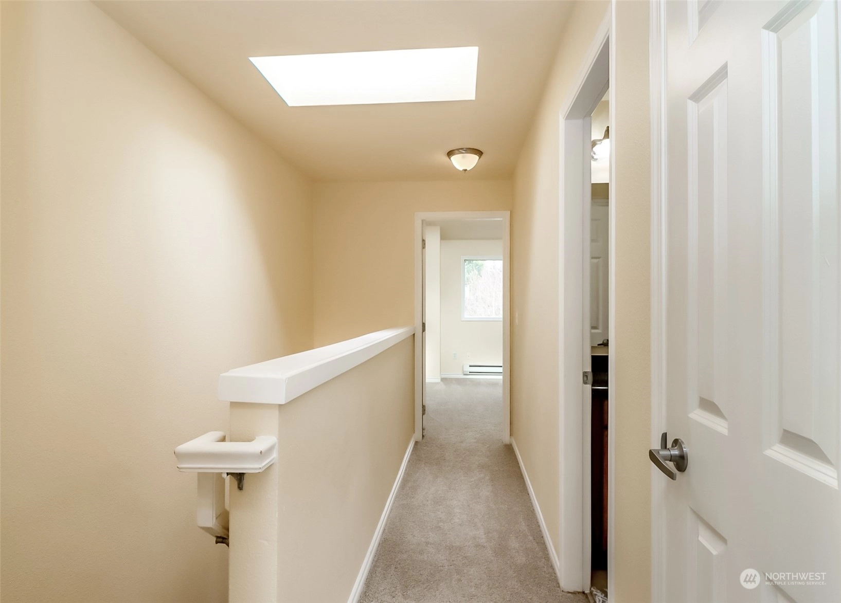 Spacious top-floor 2 story condo in the heart of Everett! Ideally located across the street from Walter E Hall Park w/an easy commute to Boeing & Paine Field Airport. Vaulted ceilings and skylights flood this move in ready home w/plenty of natural light. Kitchen features granite countertops, hardwood floors, solid wood cabinets & stainless steel appliances. Relax by the wood burning fireplace or outside on the private balcony overlooking the peaceful common area gardens. Other features include: NEW carpet, in-unit W&D, ample storage, and 2 dedicated parking spaces! Pet-friendly & no-rental cap! Located in a gated community along public transit and close to freeways, shopping, dining & golf! A great price for this fabulous investment!