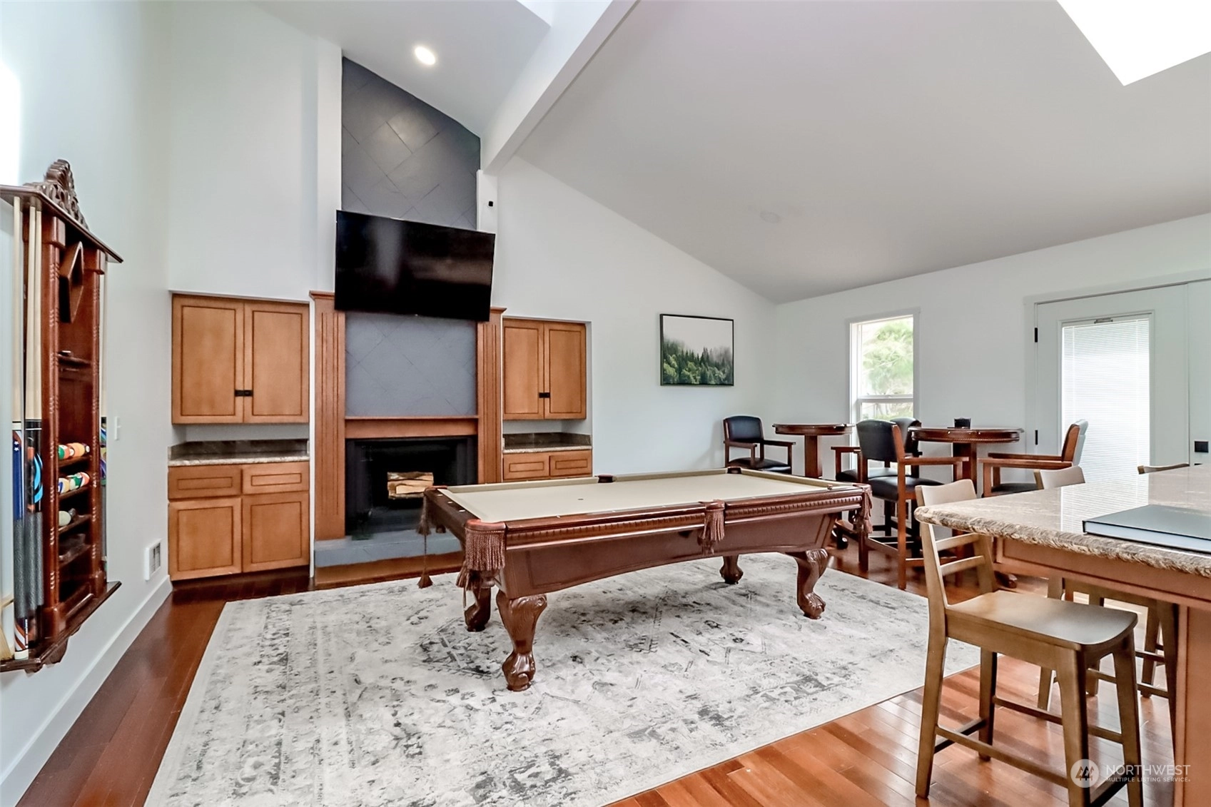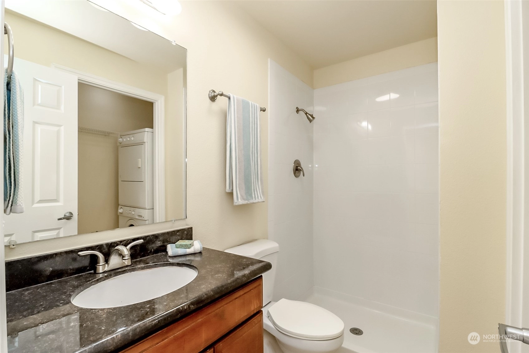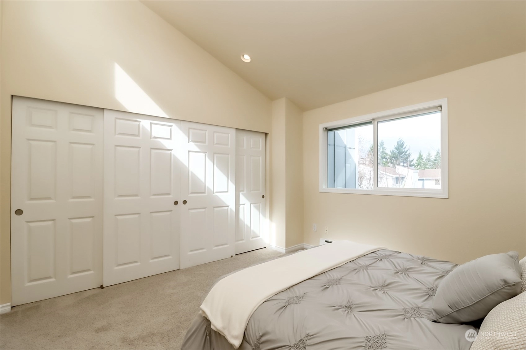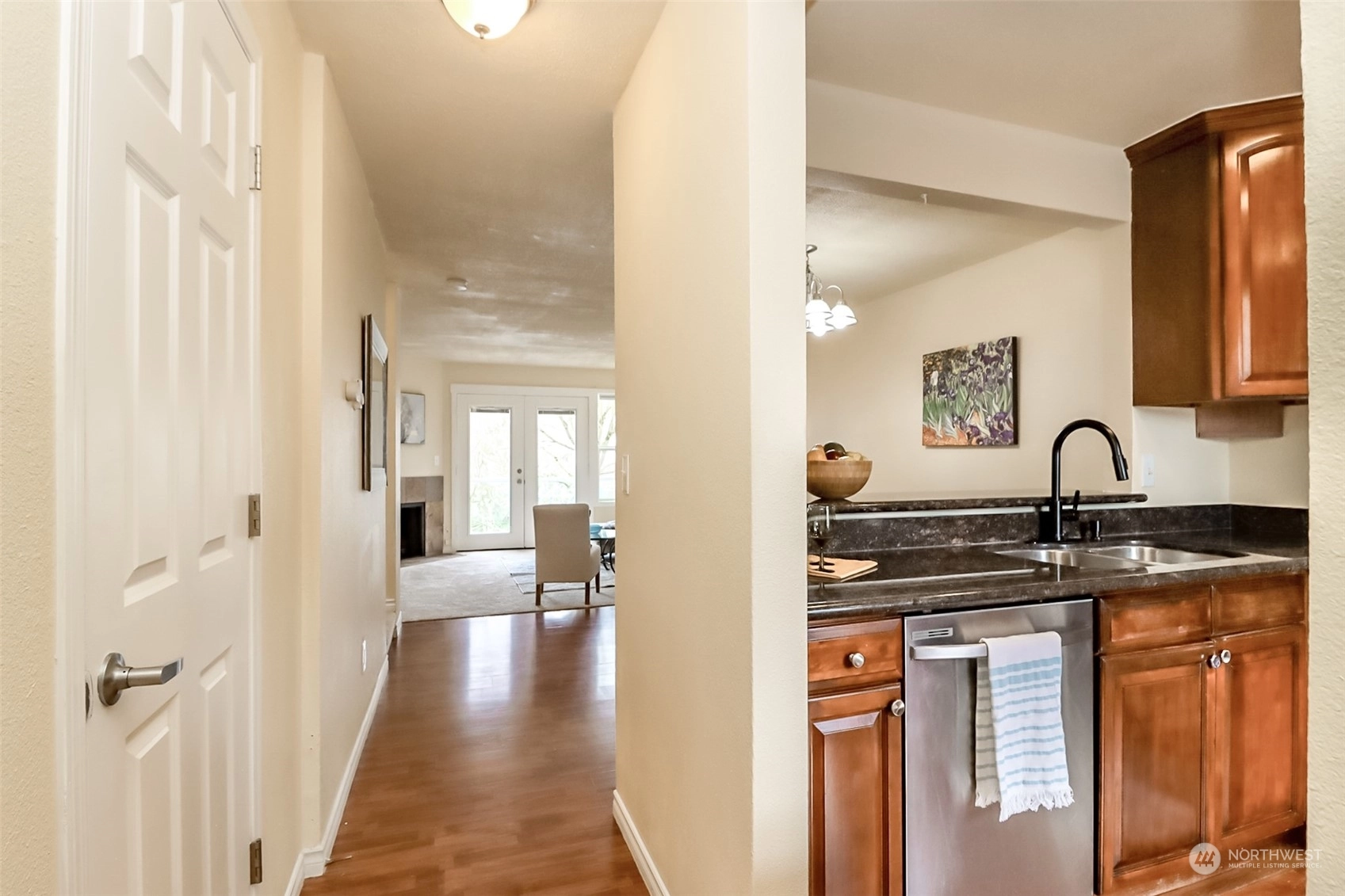 Spacious top-floor 2 story condo in the heart of Everett! Ideally located across the street from Walter E Hall Park w/an easy commute to Boeing & Paine Field Airport. Vaulted ceilings and skylights flood this move in ready home w/plenty of natural light. Kitchen features granite countertops, hardwood floors, solid wood cabinets & stainless steel appliances. Relax by the wood burning fireplace or outside on the private balcony overlooking the peaceful common area gardens. Other features include: NEW carpet, in-unit W&D, ample storage, and 2 dedicated parking spaces! Pet-friendly & no-rental cap! Located in a gated community along public transit and close to freeways, shopping, dining & golf! A great price for this fabulous investment!
