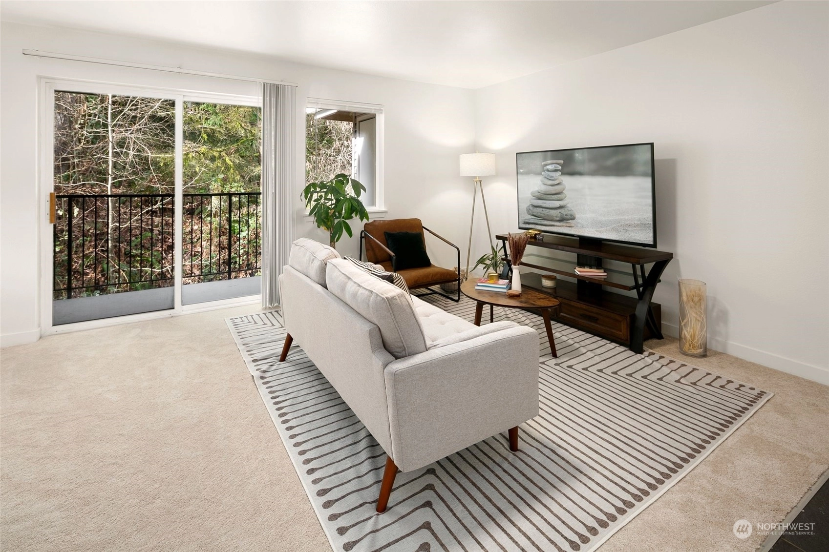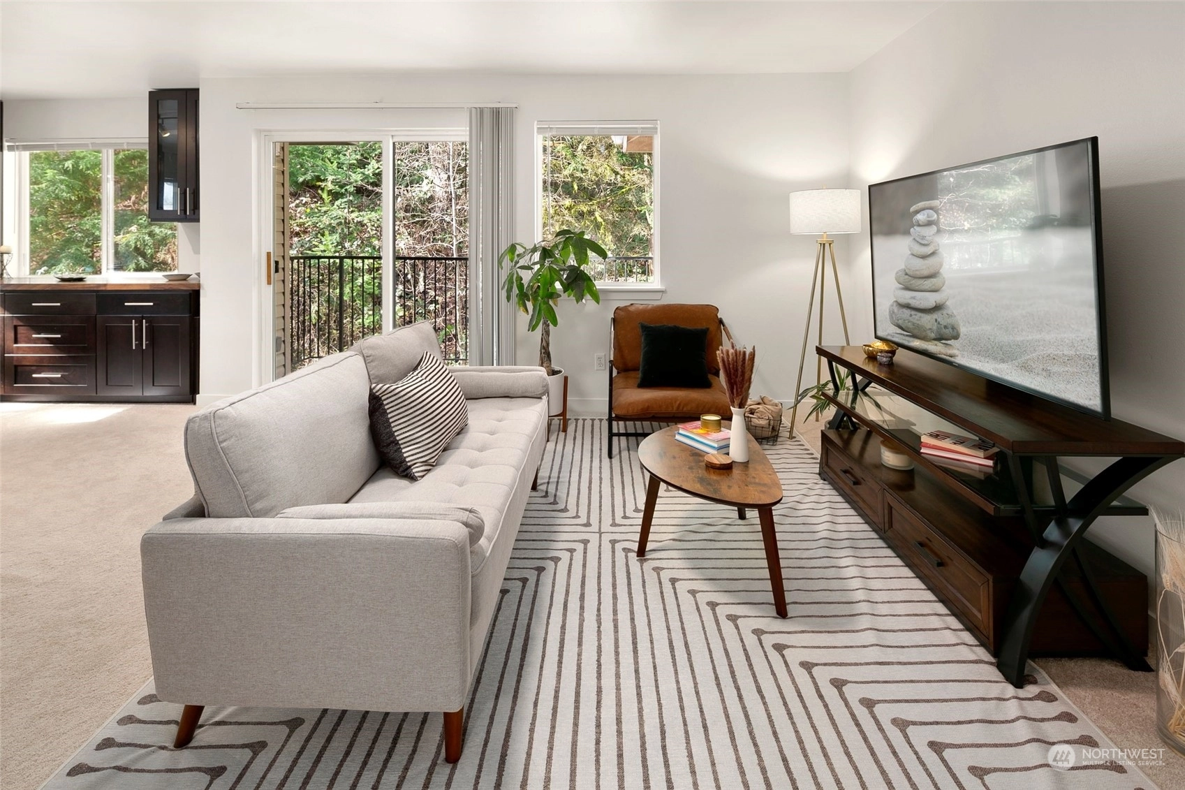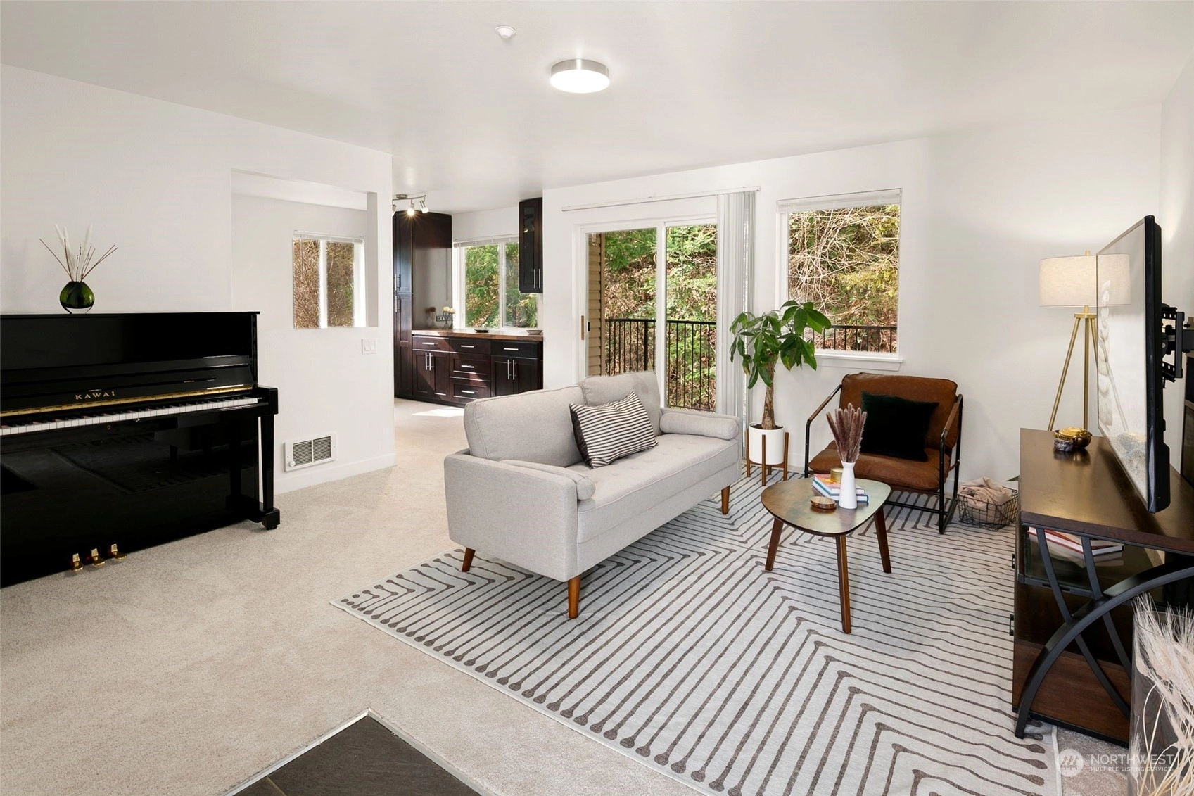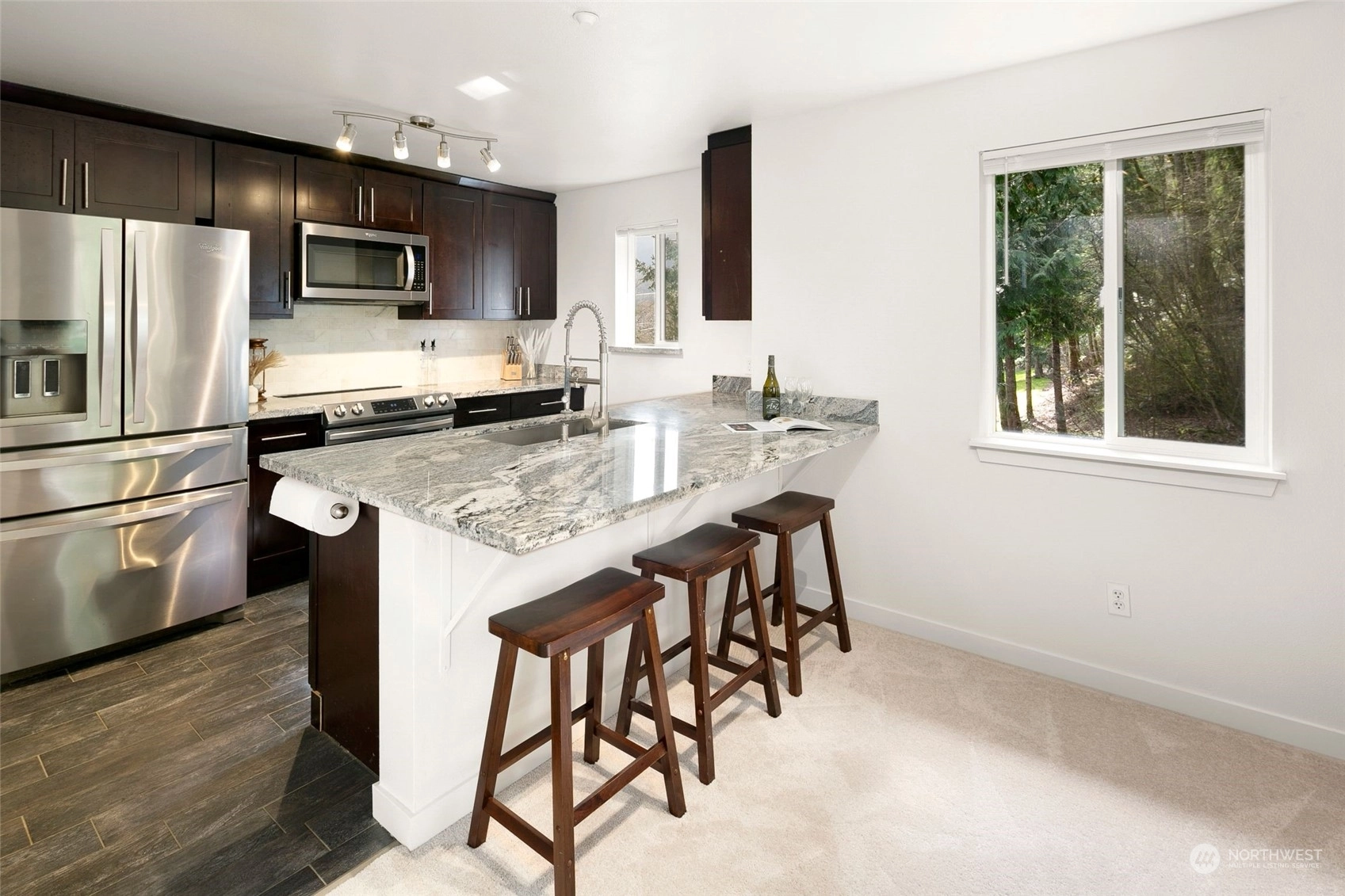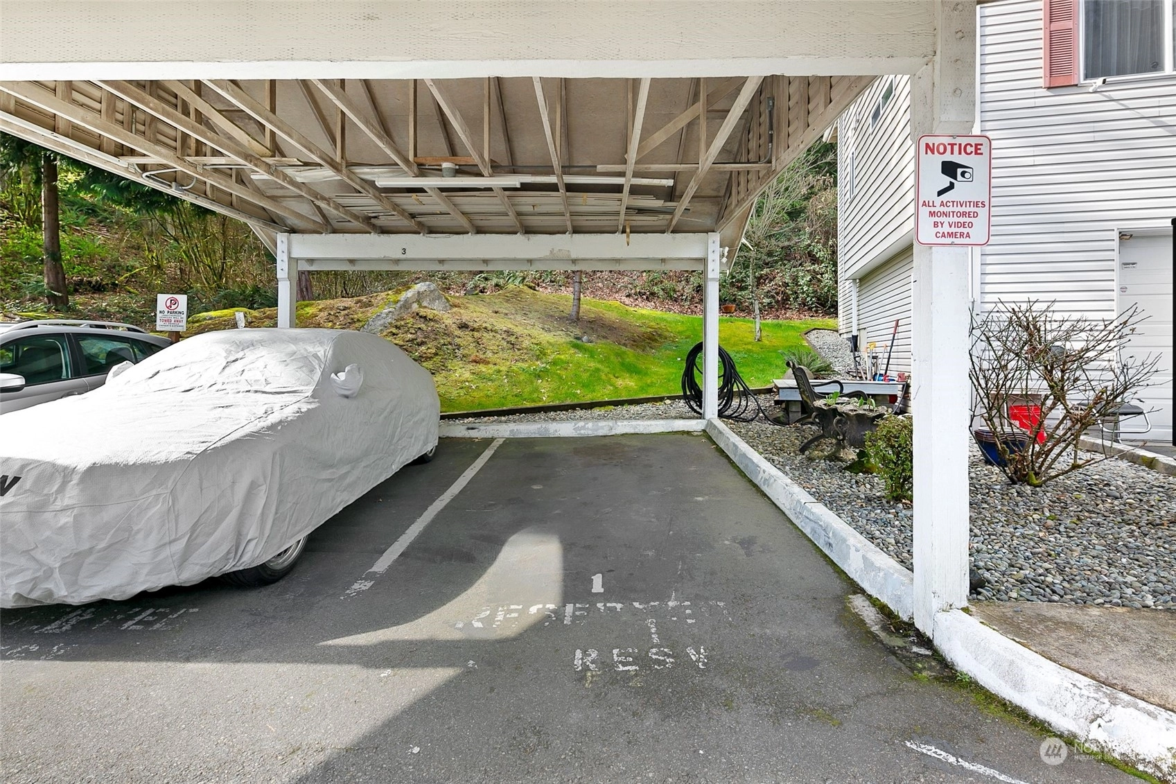 Welcome to your dream top-floor, end-unit condo in the heart of picturesque Issaquah! Abundant natural light in the morning from the East, and SW sun throughout the day. Step outside onto your private deck, nestled up to a greenbelt, creating a serene and inviting atmosphere. Many wonderful updates: kitchen, upgraded induction stovetop, extra storage in the beautiful new built-ins, remodeled bathroom with heated floor and bidet, new paint, new carpet, and modern millwork. This unit has 4 dedicated parking spots!! 2-car tandem garage, 1 covered carport spot, and 1 spot directly in front of the garage. This condo offers the ideal combination of convenience and PNW living. 2 min to Issaquah Commons and 3 min to Front Street, Downtown Issaquah.