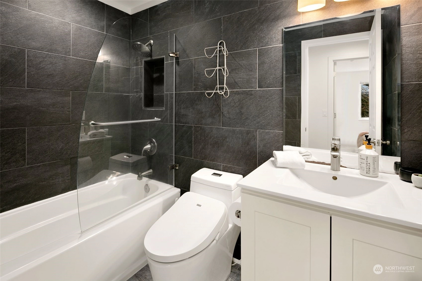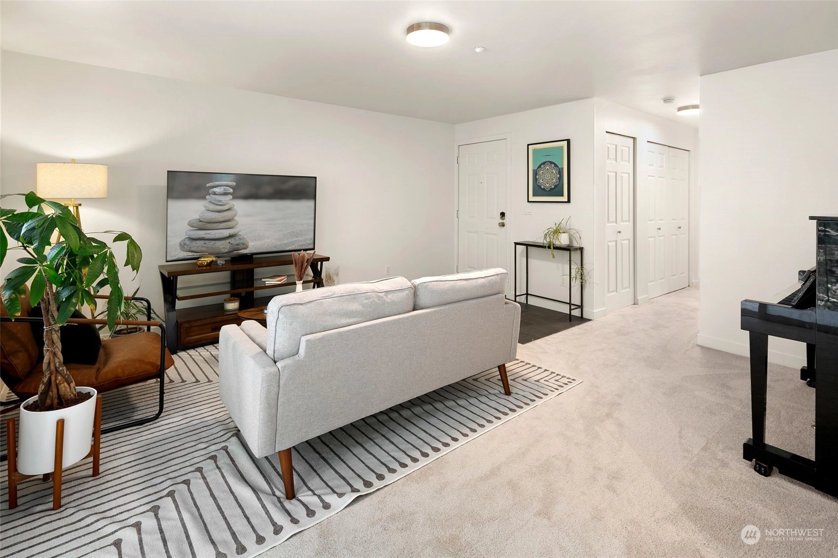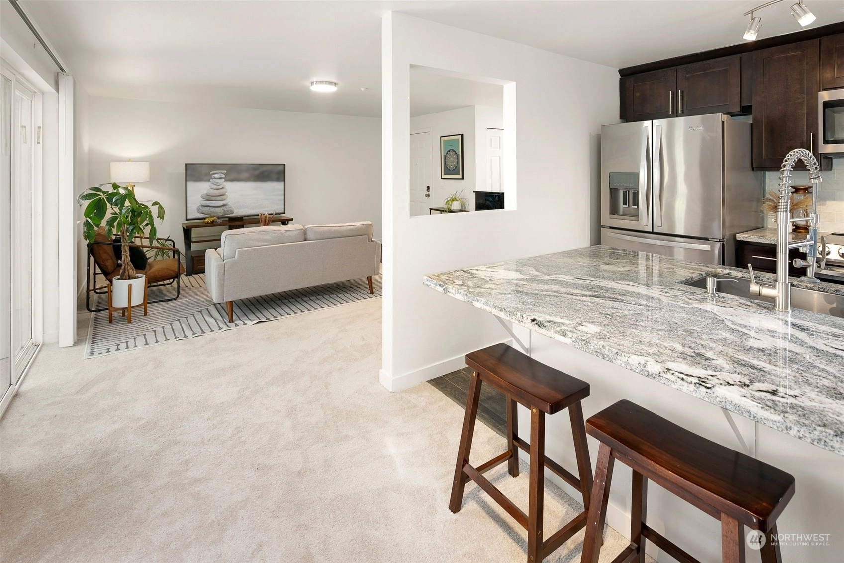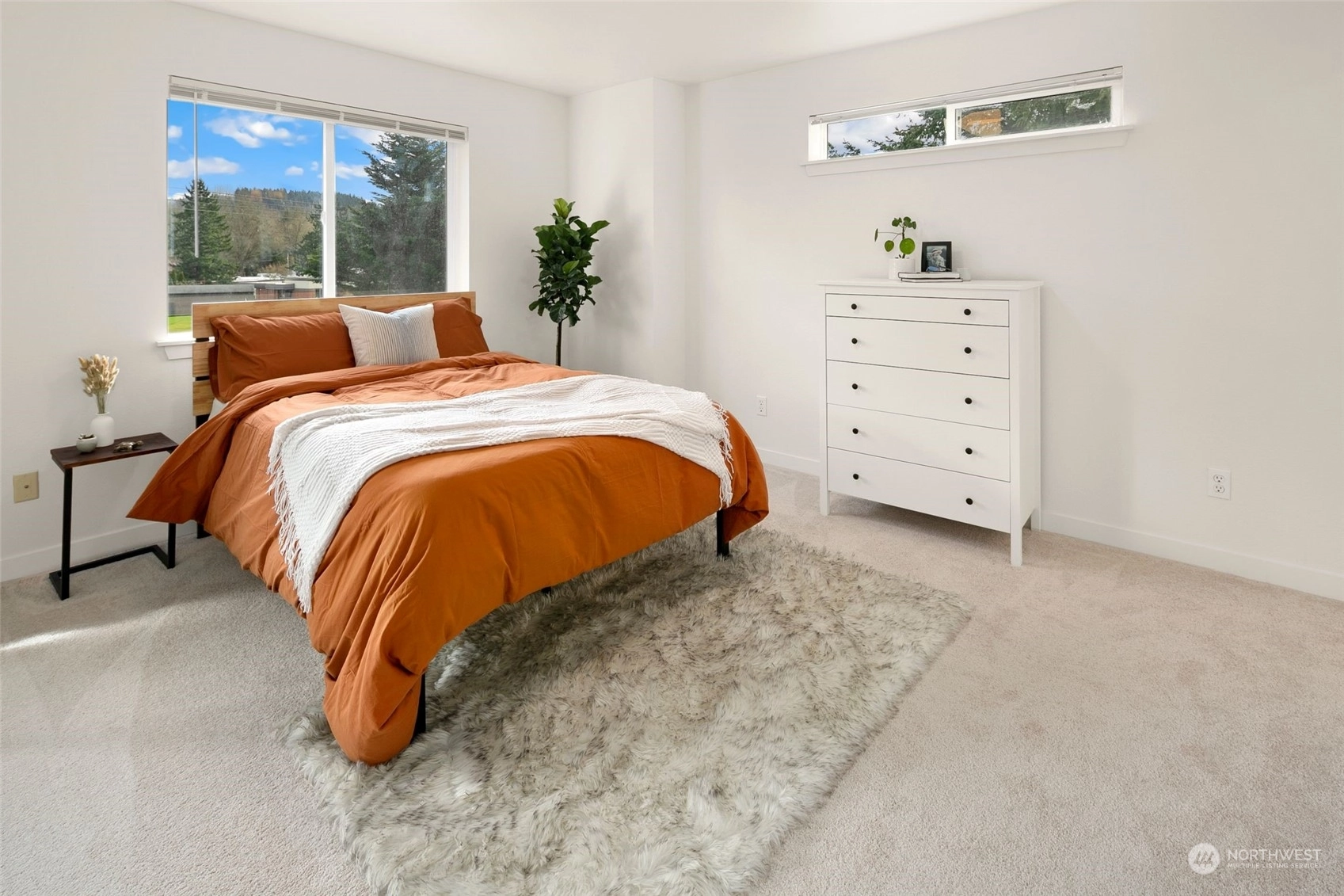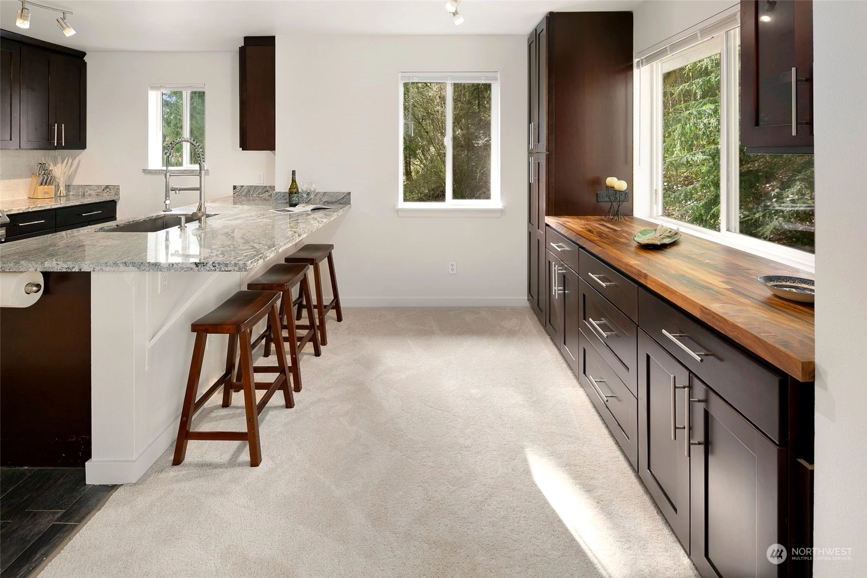 Welcome to your dream top-floor, end-unit condo in the heart of picturesque Issaquah! Abundant natural light in the morning from the East, and SW sun throughout the day. Step outside onto your private deck, nestled up to a greenbelt, creating a serene and inviting atmosphere. Many wonderful updates: kitchen, upgraded induction stovetop, extra storage in the beautiful new built-ins, remodeled bathroom with heated floor and bidet, new paint, new carpet, and modern millwork. This unit has 4 dedicated parking spots!! 2-car tandem garage, 1 covered carport spot, and 1 spot directly in front of the garage. This condo offers the ideal combination of convenience and PNW living. 2 min to Issaquah Commons and 3 min to Front Street, Downtown Issaquah.