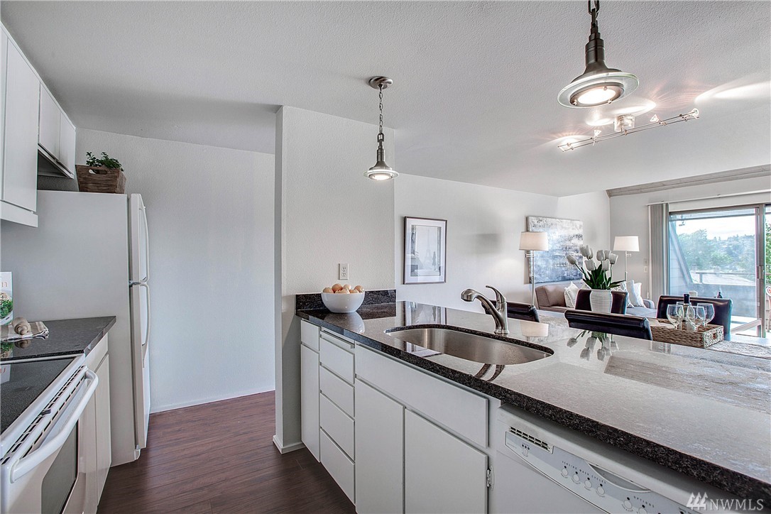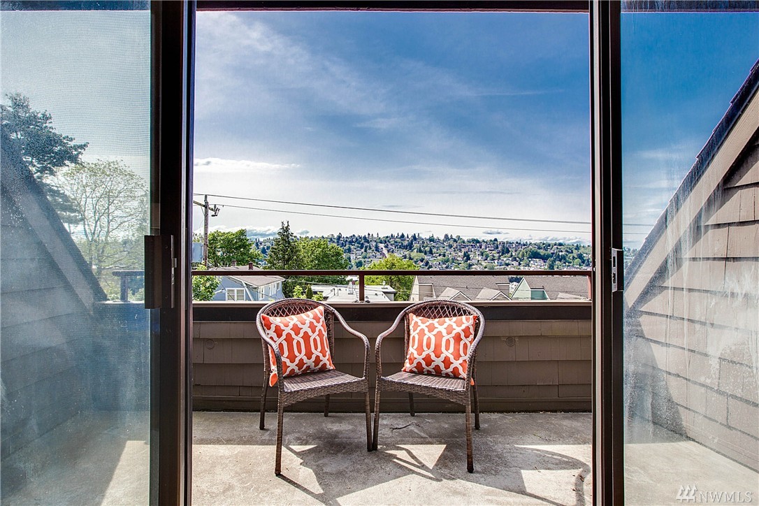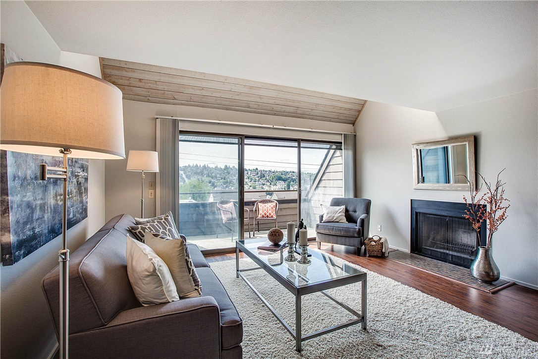 Panoramic Westerly views in this remodeled Queen Anne Condo! Top floor end unit, 2 bedroom loft with spacious floor plan and large deck for entertaining. Comes with one car garage and storage unit. Up to 2 pets, No rental cap.