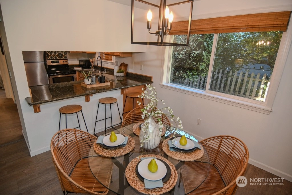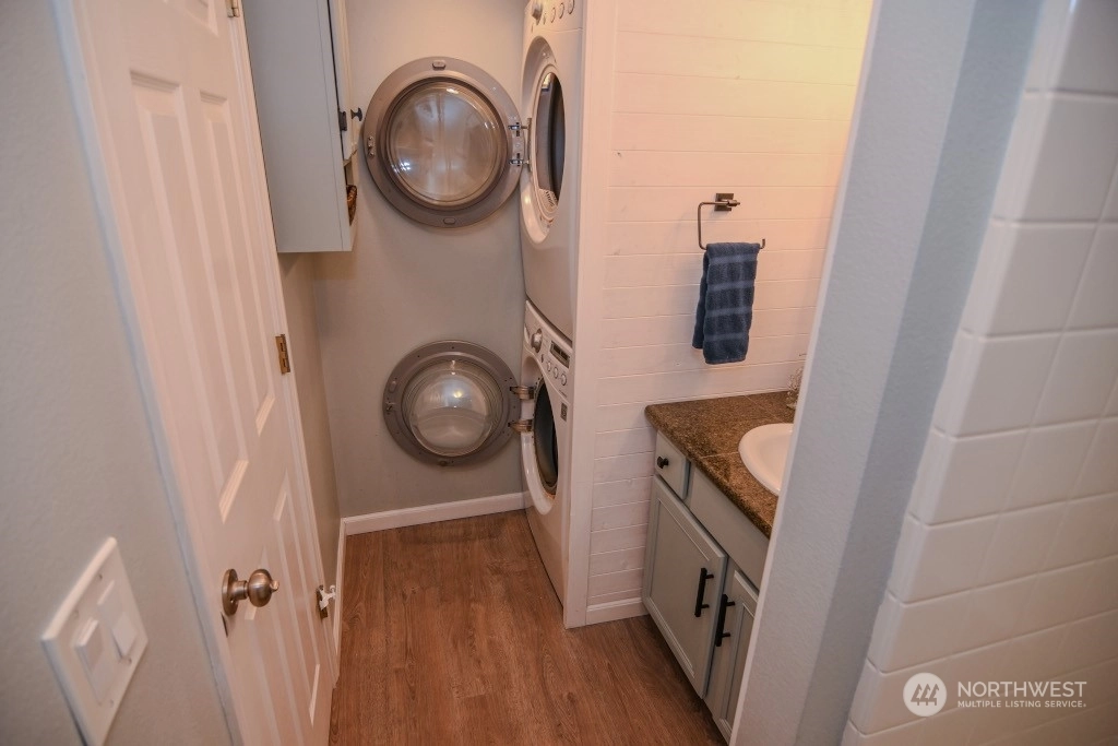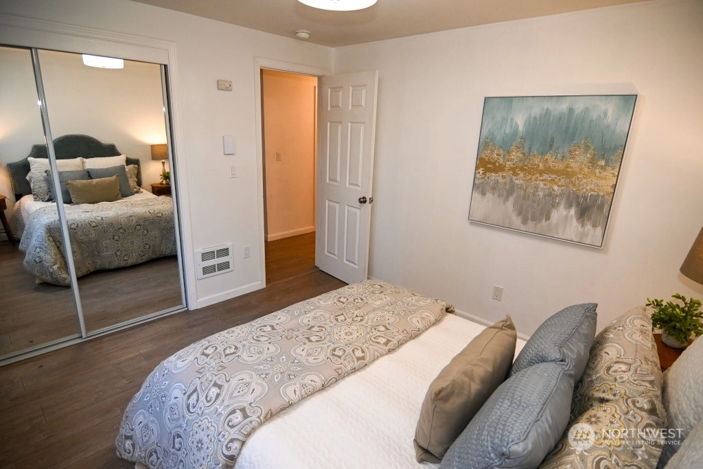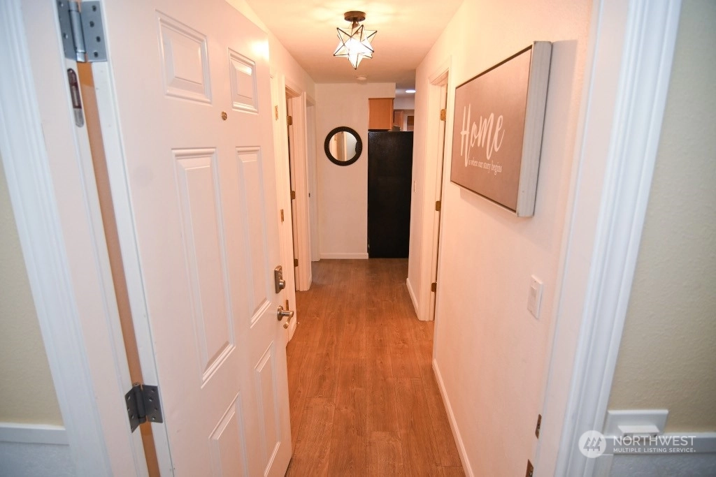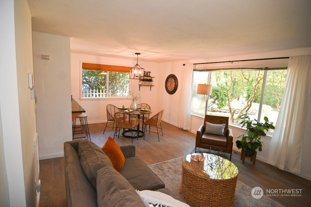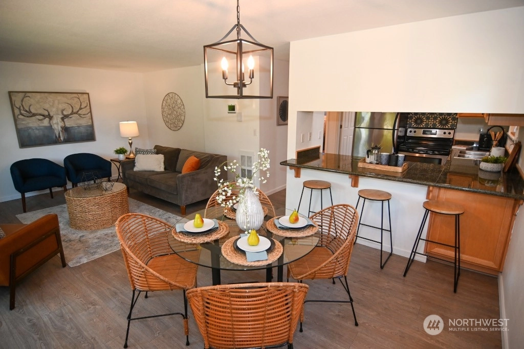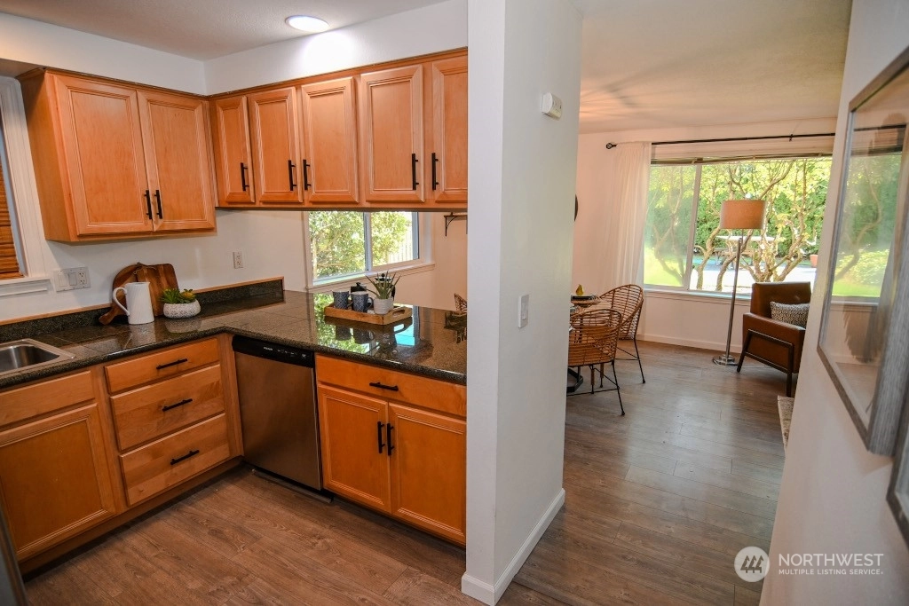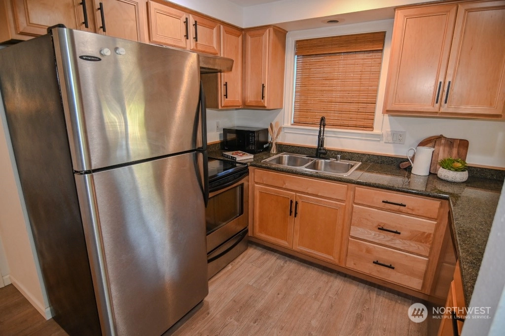 Welcome to this accommodating entry level, 2 bed/1 bath, low HOA condo minutes from the heart of charming downtown Snohomish. The home features new LVP flooring throughout, full size washer and dryer, stainless appliances including new dishwasher, oven hood and microwave, and newer water heater. All window coverings stay with this end unit that has no shared walls. The Aquatic Center, Centennial Trail, restaurants and historic waterfront are within walking distance! Updated in 2007 and converted to condo.