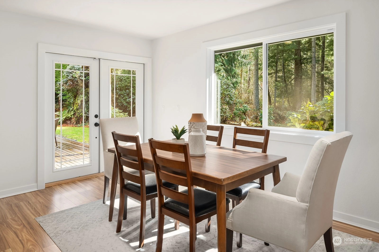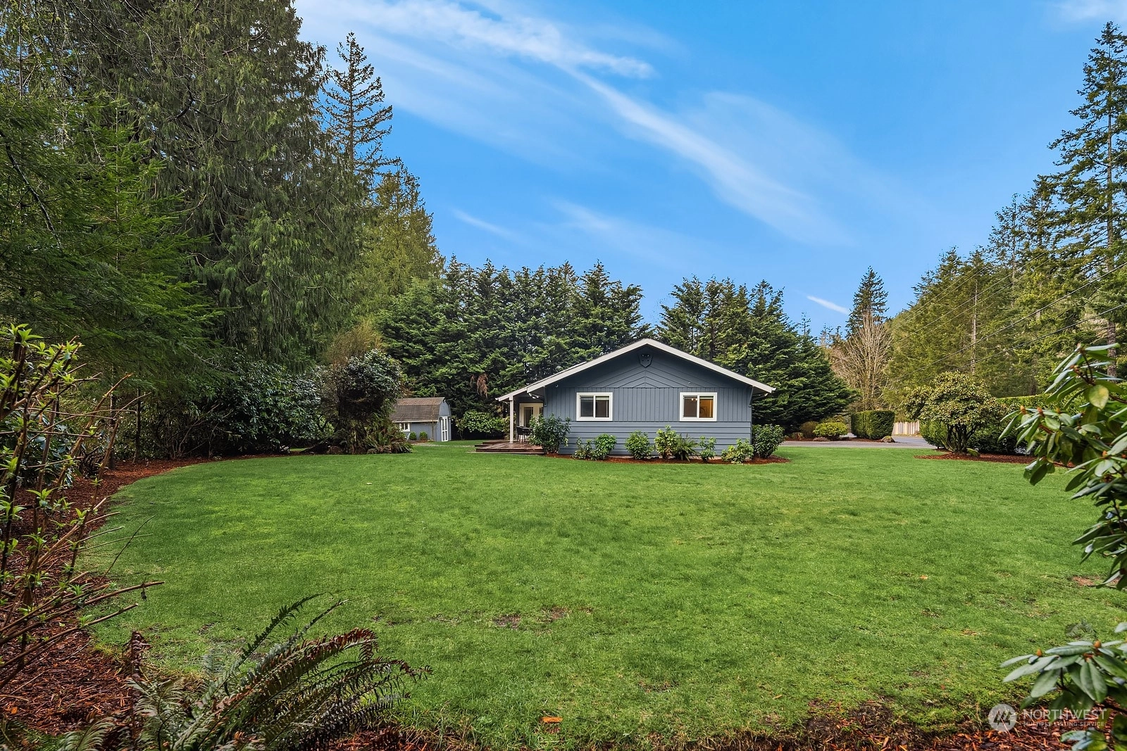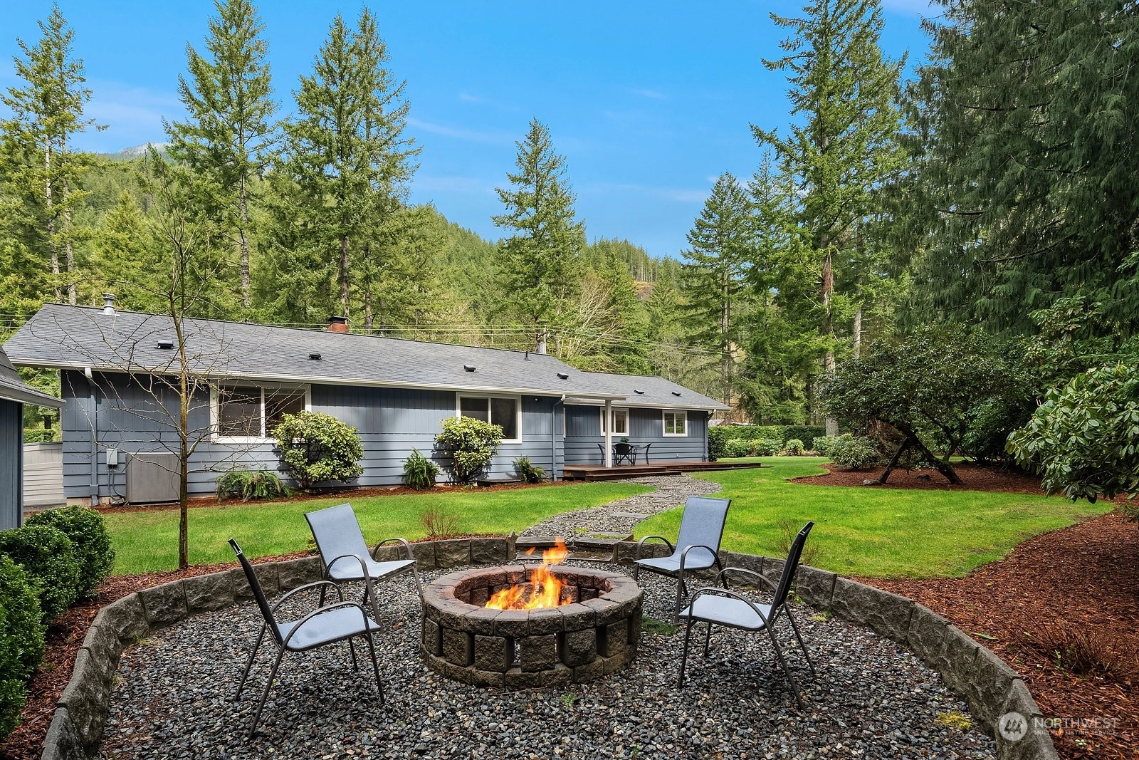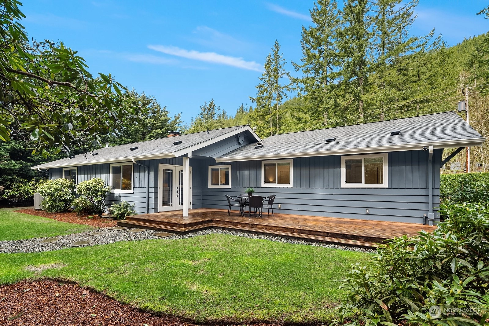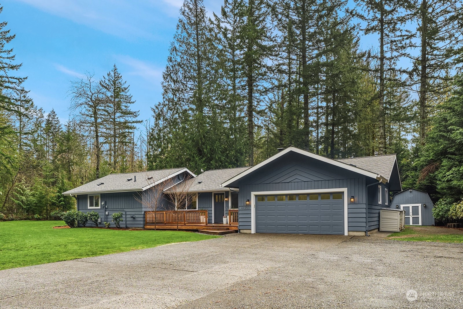 Nestled at the base of Mt Si, this updated 3-bed 2-bath rambler is ideally situated on a private half acre lot. Featuring single story living and a well-designed floor plan, makes it a perfect choice for all stages of life. Modernized interior boasts white cabinets w/quartz counters, SS appliances, LVP flooring, & fresh paint inside & out. Step outside to the generously sized deck & enjoy the tranquility provided by the mature landscaping & greenbelt with abundant wildlife. Furthering its appeal is the spacious garage, over-sized insulated shed, new hot water heater, AC, & ample parking space for RV/toys. Discover the convenience of proximity to trailheads, nearby parks, and the thoughtfully appointed town of North Bend!