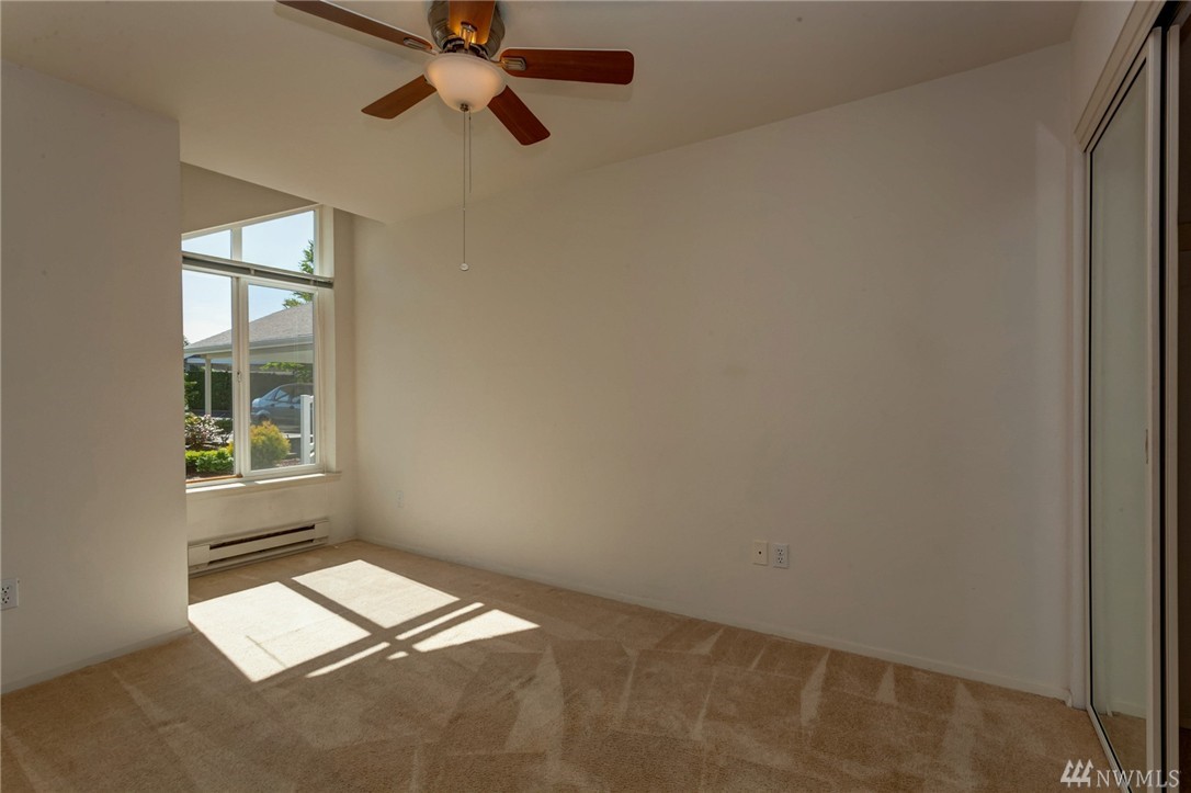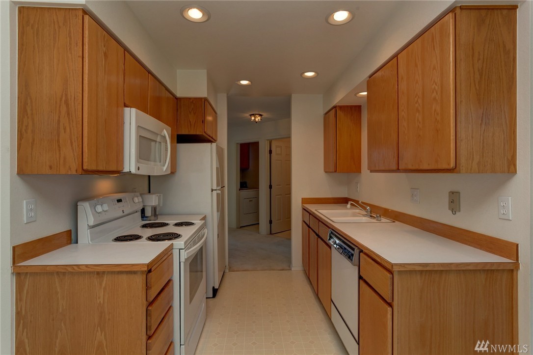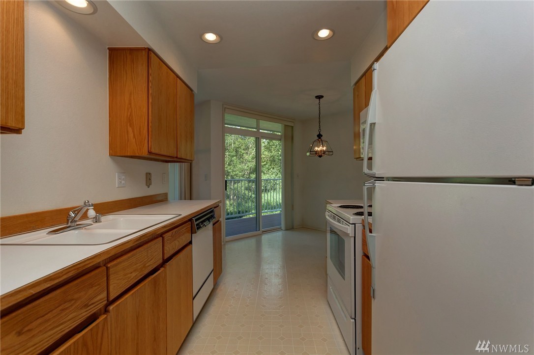 Greenbelt & pond-side living in this premiere 55+ condominium! Move in ready. No steps to enter this delightful ground floor. Excellent view of the trees & pond from your very own living room, kitchen and deck. Master suite with attached bath and walk in closet. Light and bright floor plan. Walking trail right outside your back door. Nice clubhouse, covered carport, dry and security locked storage, plenty of guest parking. Move in ready. Close to shopping, medical and more.