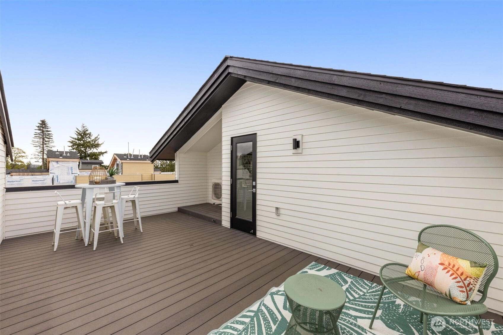 MEMORIAL DAY SALE! Builder offers a 5.75% interest rate! Last chance to own in desirable Willow South by Shelter Homes. Move-in ready with window coverings & W/D included. Enjoy summer on the private rooftop deck with views, lighting, a gas BBQ hookup, and a water spigot. This west-facing 3BR home features a bonus space off the primary suite—ideal for an office or nursery. Main level boasts a rare ½ bath, bright kitchen with Bosch appliances, island, slab counters & modern cabinets. Upstairs: 2 large bedrooms, full bath, and spacious laundry room with sink. EV-ready parking. Just 0.4 mi to Met Market & shops!