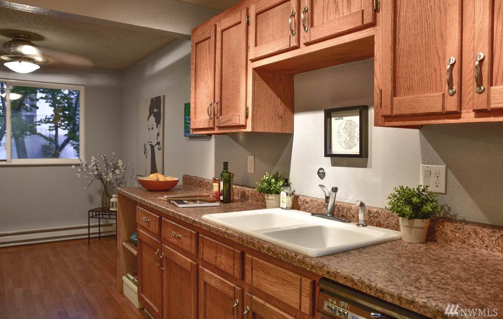 Not only is this 1bdrm, 1 bth conveniently located in NE Seattle, it has 750 sf of living space and it is the only unit with a separate ramped entry and deck! Imagine you are in a turret in a castle because the 9” concrete firewalls between each unit make noise never a problem. Building is well-maintained and built to last in 1980. Parking garage, storage, new paint, large bdrm w/double closets, laminate floors and in-suite W/D. Check out the revamped area and the UNDENIABLE value of this condo!