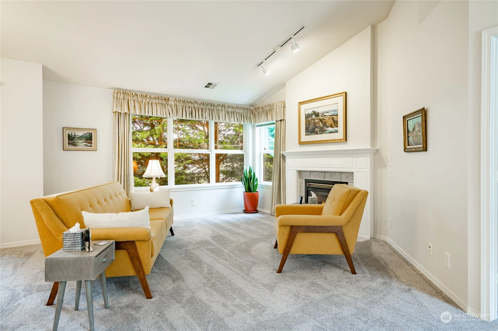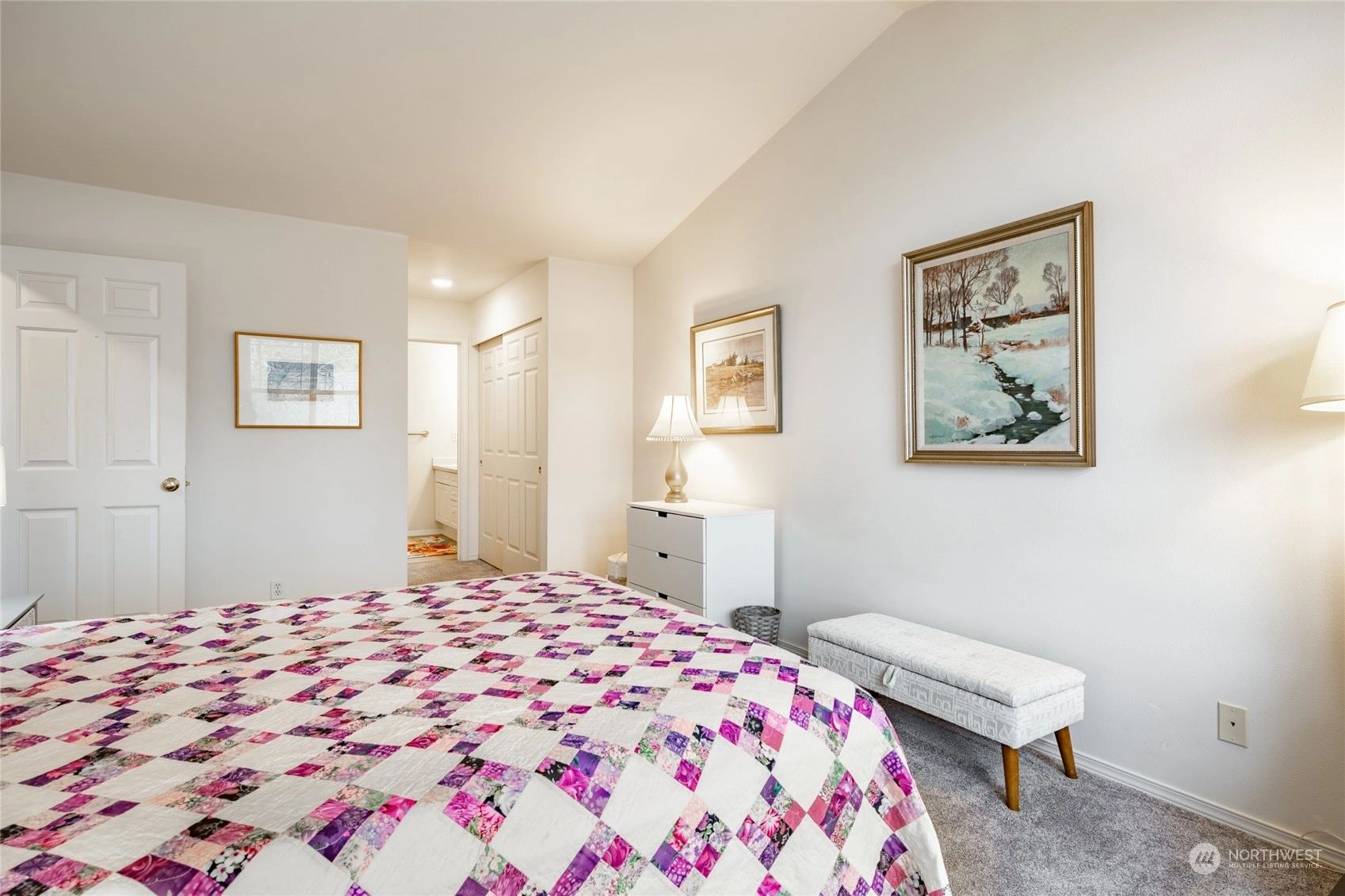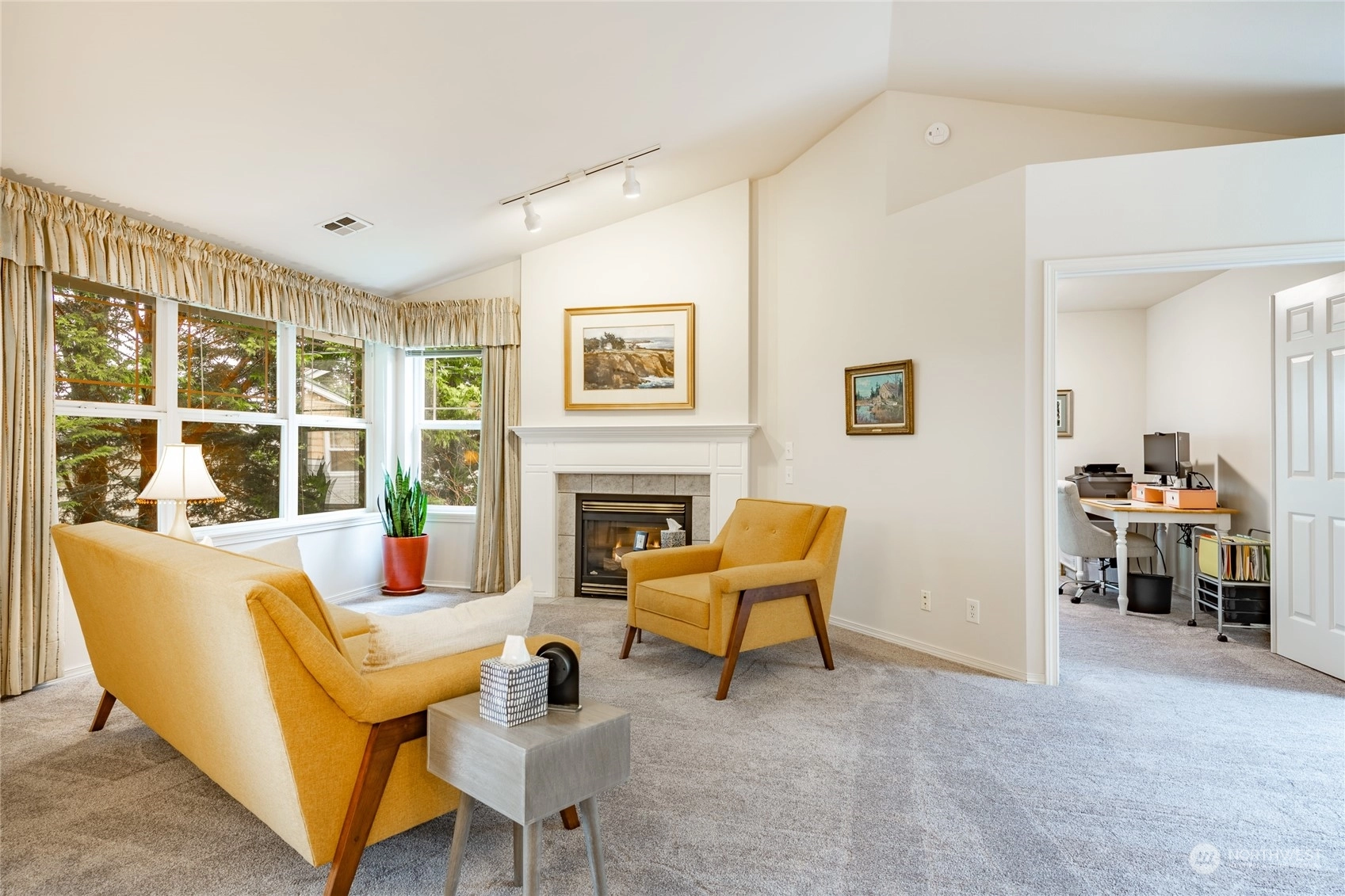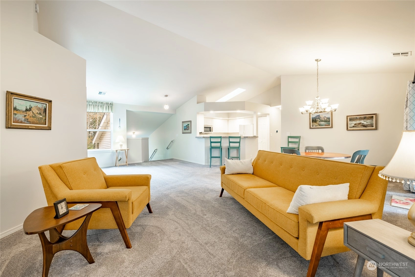 Quiet top floor condo situated ideally on the southside of Bellingham. Nestled away from roads and backing to a greenbelt, a private and rural feel right near Fairhaven. 2 bedrooms and a den/office ideal for working from home. Open floor plan with lots of windows & skylights filling the home w/ natural light, vaulted ceilings, and a gas fireplace. Large master w/ensuite, two closets, including a walk-in. Spacious kitchen w/ lots of storage & counter space. All appliances included. New carpet in 2022, flooring in entry, kitchen & baths. Lots of upgrades. Attached double garage with more storage, plus a private turnout for extra parking. Next to the Interurban Trail for easy access to Fairhaven, Downtown Bellingham, parks, waterfront, & more.