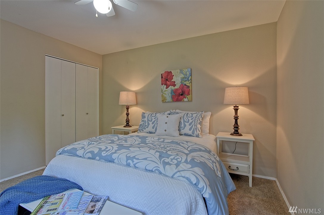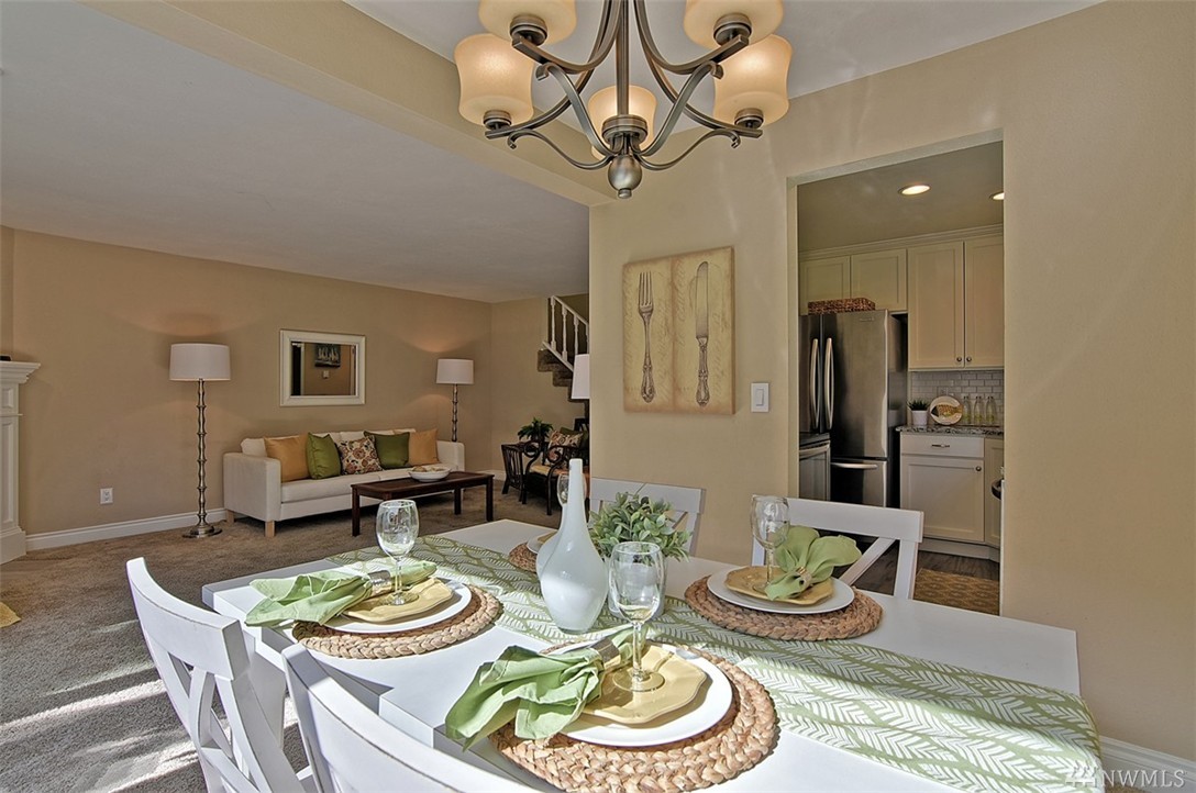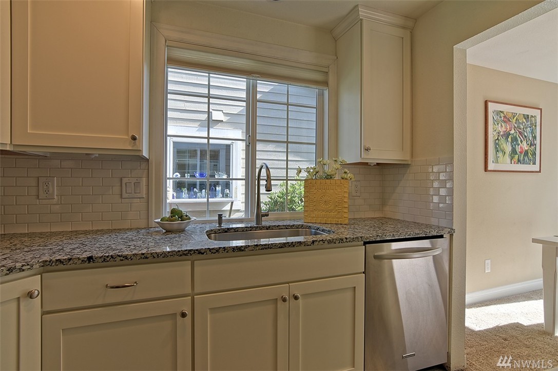 RARE 3 bedroom - one bedroom/full bath on MAIN FLOOR townhome in pretty Copperfield Village! Beautiful new kitchen with custom cabinets, granite counters, stainless appliances + newer bath remodel downstairs! Newer vinyl windows; updates in upstairs bath with tile flooring and bath surround...end unit with a lovely, small yard and single garage with another outside parking space! Few minutes from downtown Edmonds!