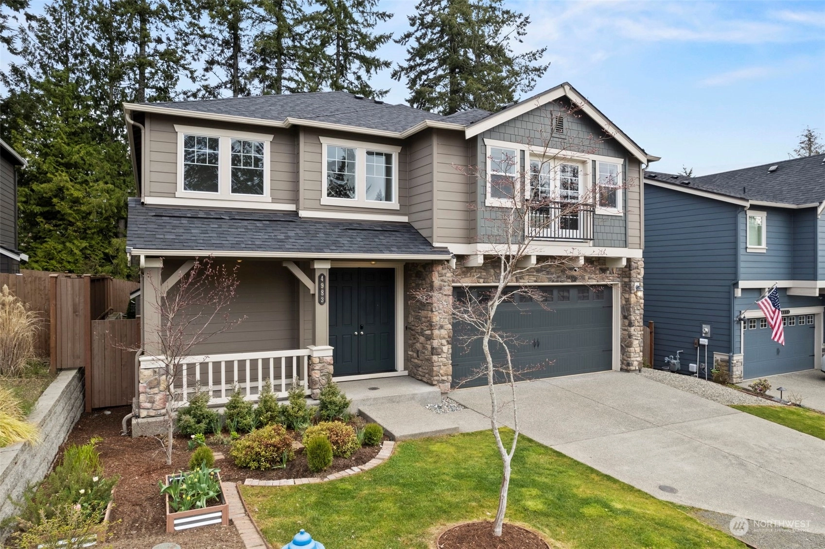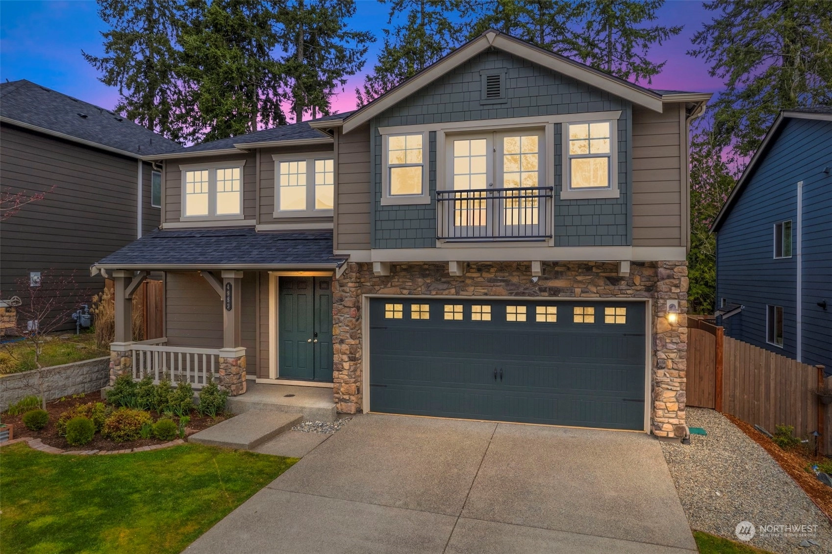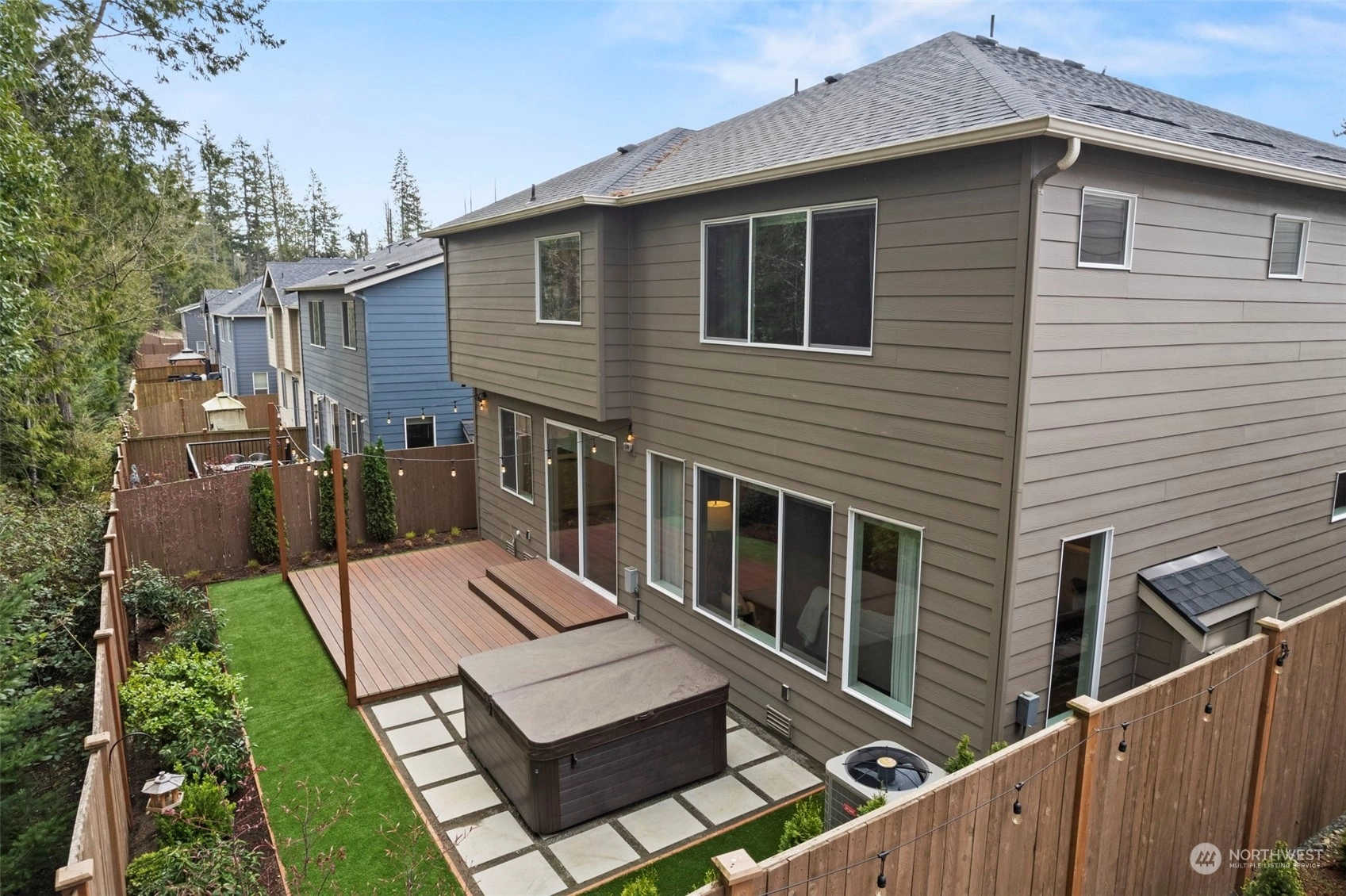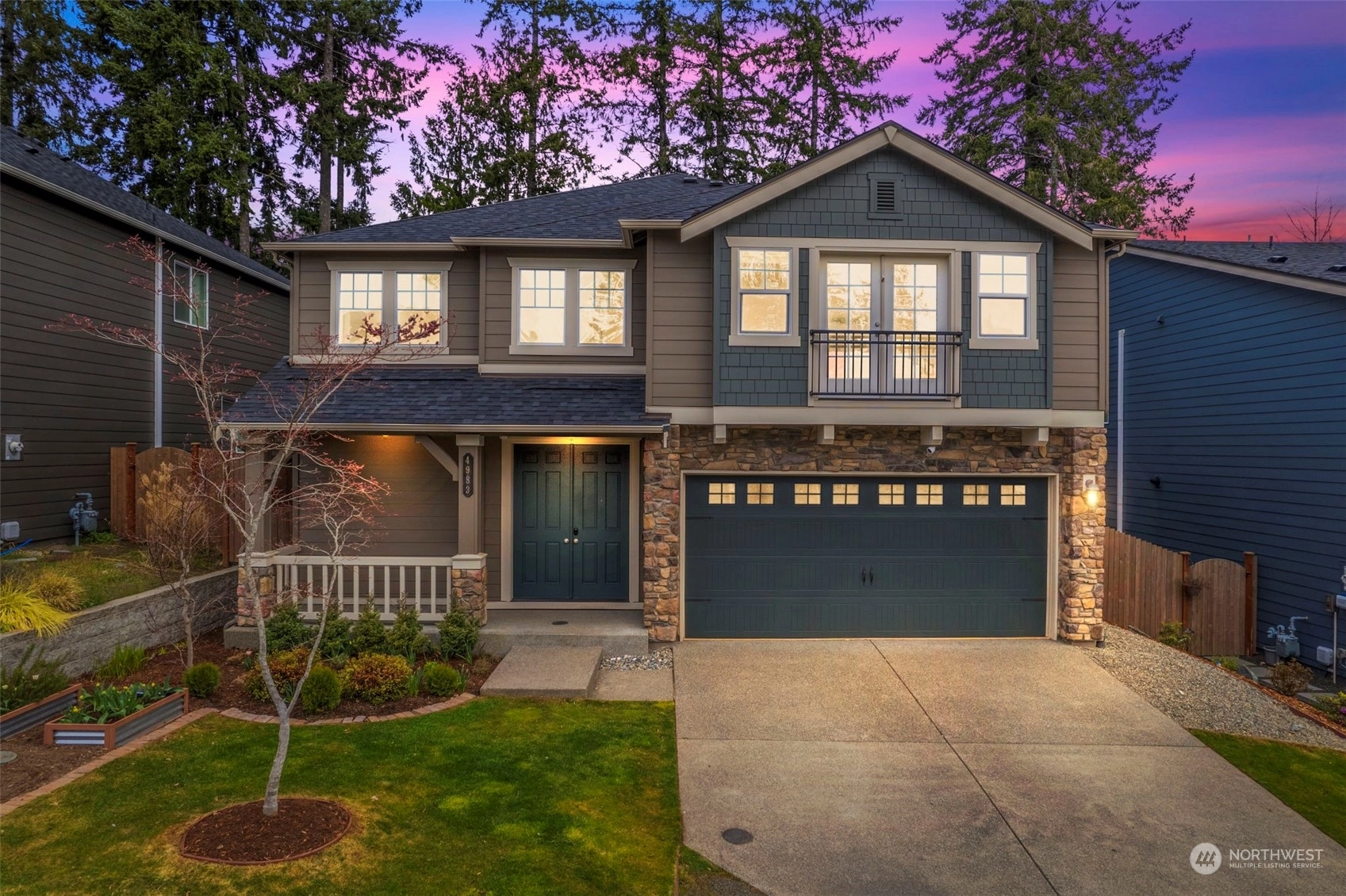 Modern, open concept, former model home on a cul de sac street. Huge primary suite with french doors to 5 piece primary bath and walk in closet. Upstairs bedrooms open up to skylit hallway and sun-filled family room with Juliette balcony. 5th bedroom on main floor can also serve as an office. Kitchen boasts 10 foot island and opens up to 2 entertaining spaces, massive dining room, and brand new backyard that backs up to a beautiful green belt. Backyard thoughtfully designed for parties, pets, with turf, hot tub and trex deck. Upgrades: finished garage with epoxy floors, custom shades in every room, built in speakers, and sprinkler system. Prime location, walking distance to school, duck pond, baseball fields, Cushman trail! Welcome Home!