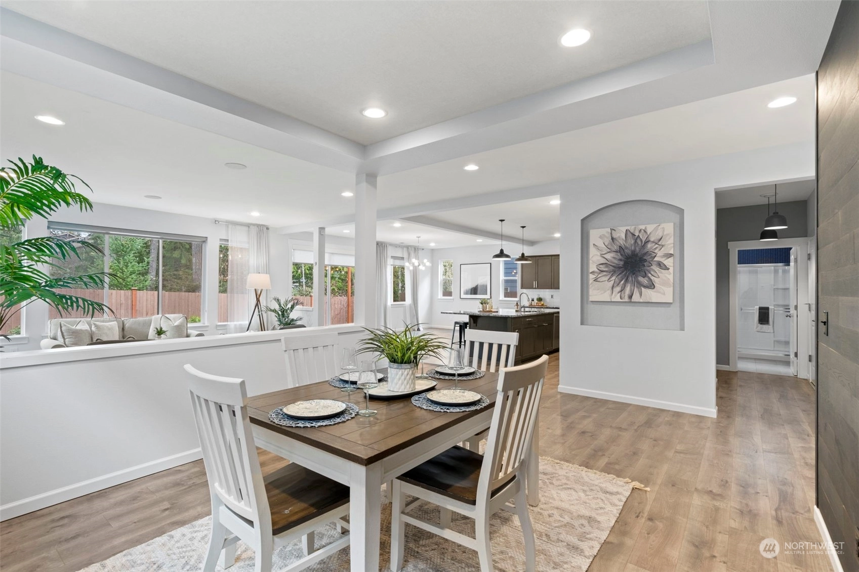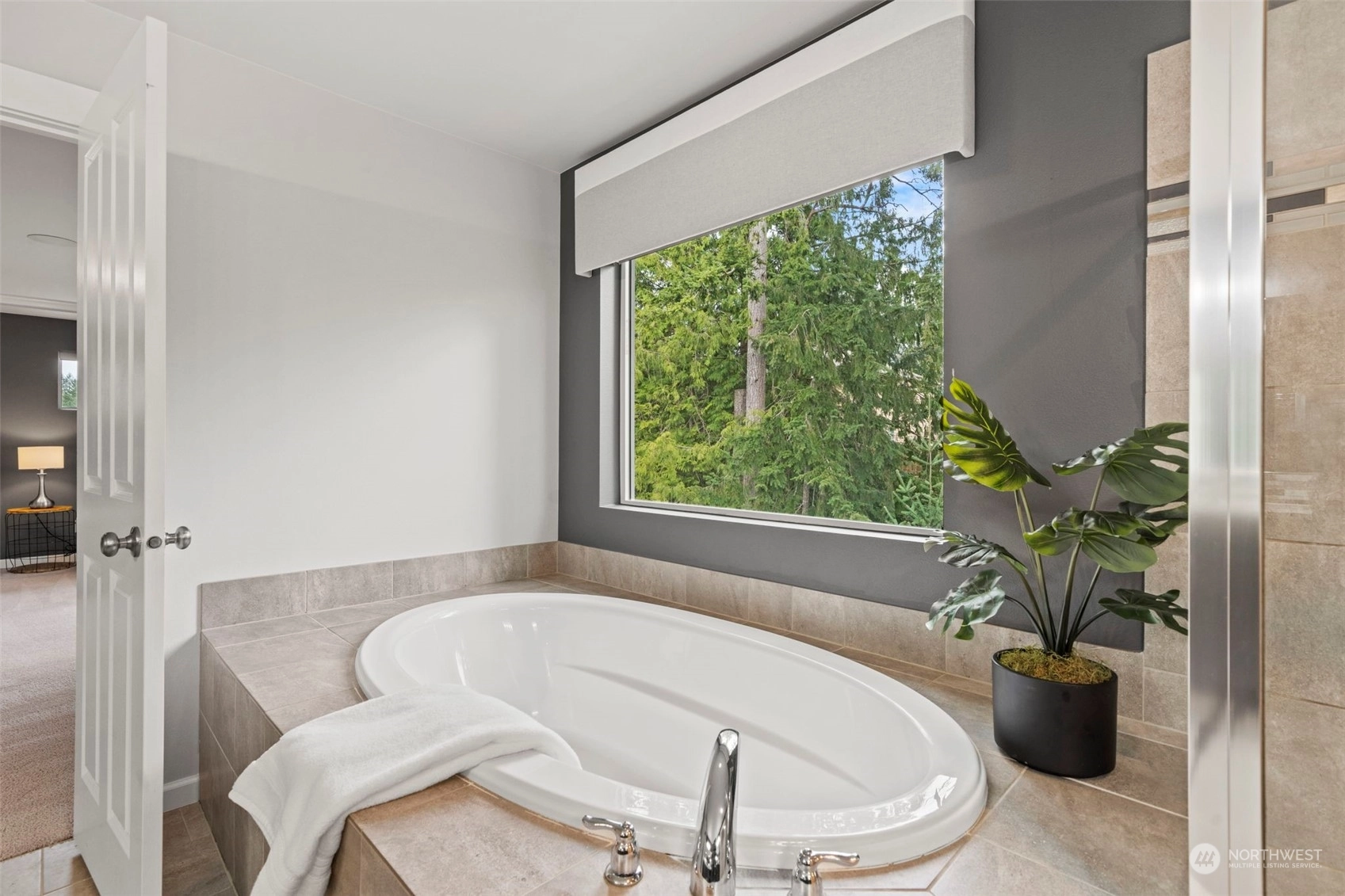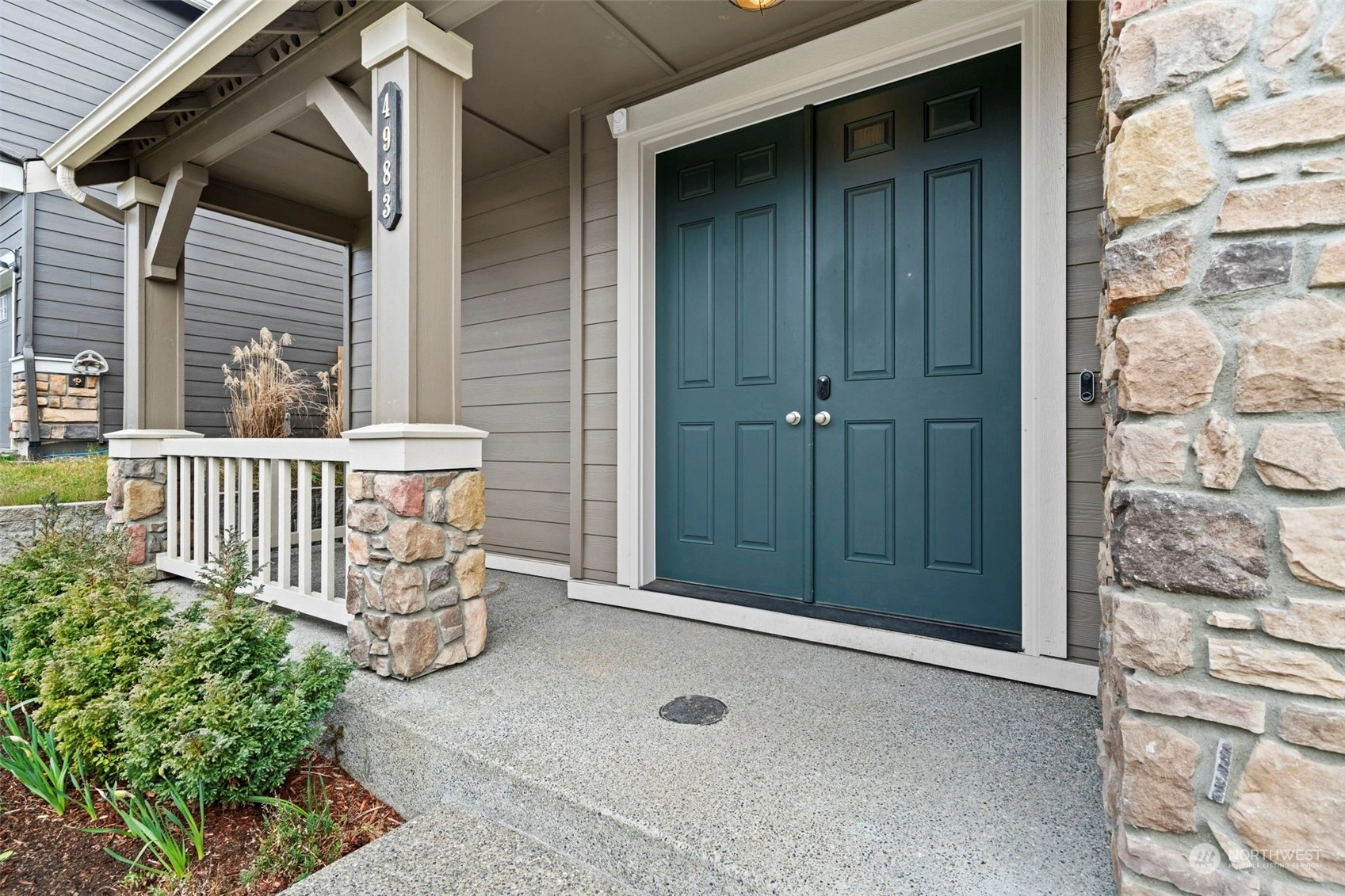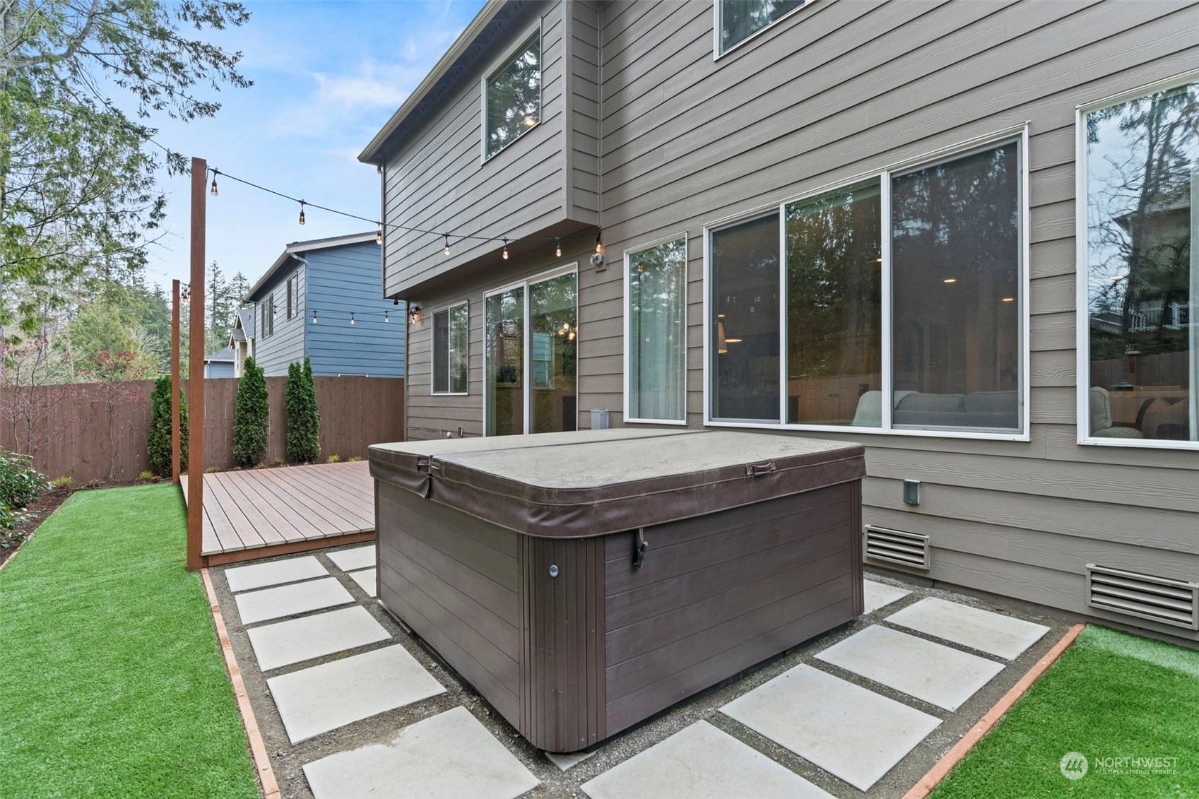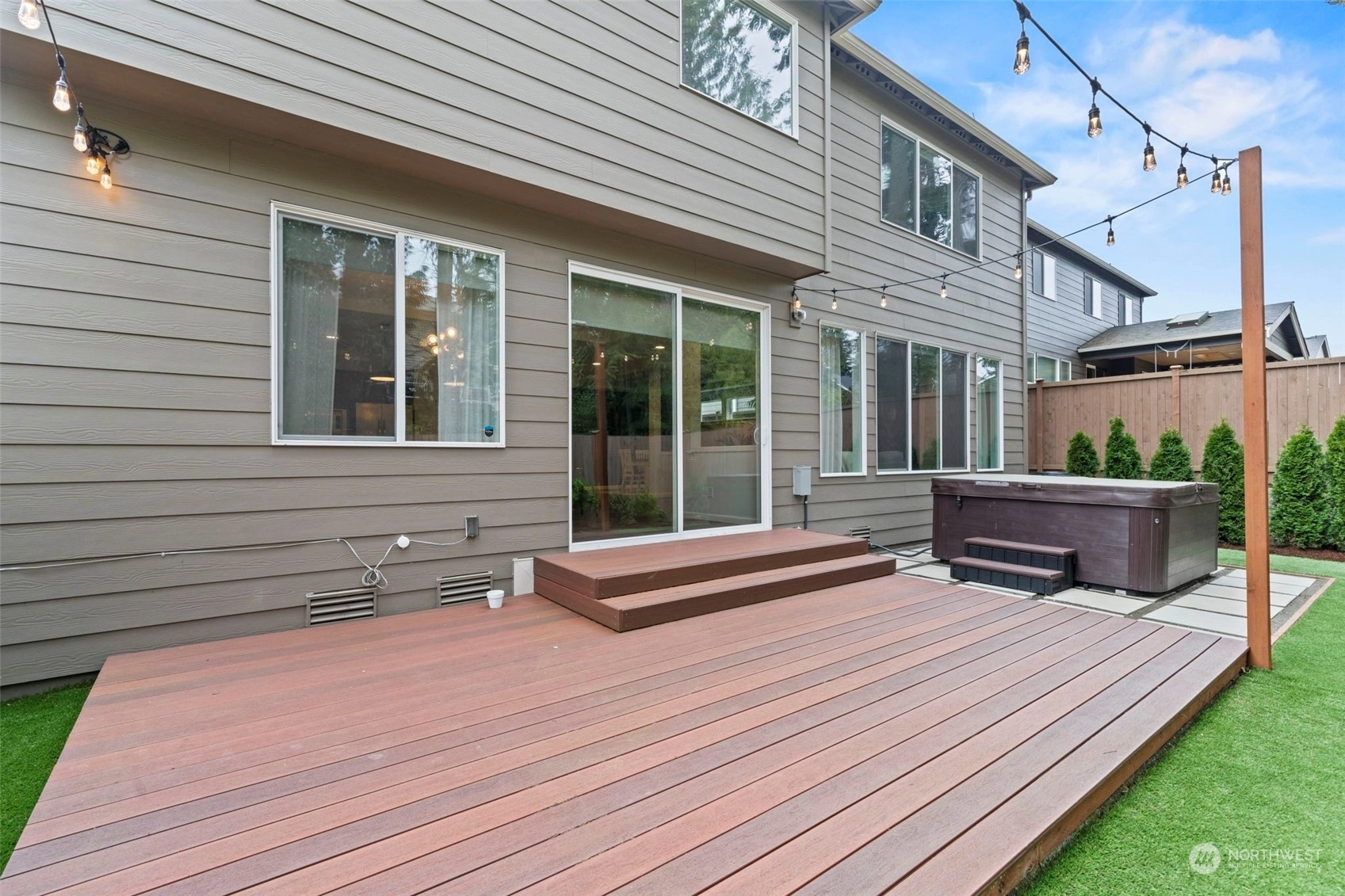 Modern, open concept, former model home on a cul de sac street. Huge primary suite with french doors to 5 piece primary bath and walk in closet. Upstairs bedrooms open up to skylit hallway and sun-filled family room with Juliette balcony. 5th bedroom on main floor can also serve as an office. Kitchen boasts 10 foot island and opens up to 2 entertaining spaces, massive dining room, and brand new backyard that backs up to a beautiful green belt. Backyard thoughtfully designed for parties, pets, with turf, hot tub and trex deck. Upgrades: finished garage with epoxy floors, custom shades in every room, built in speakers, and sprinkler system. Prime location, walking distance to school, duck pond, baseball fields, Cushman trail! Welcome Home!