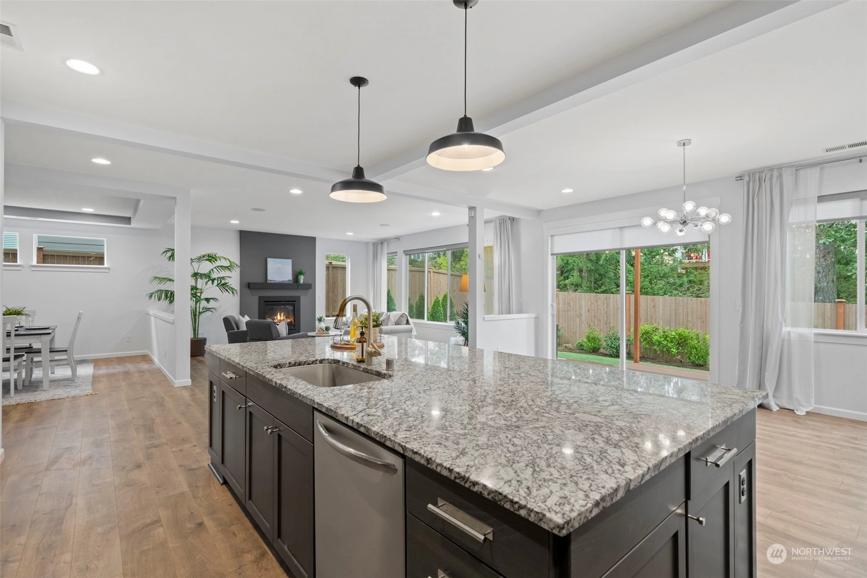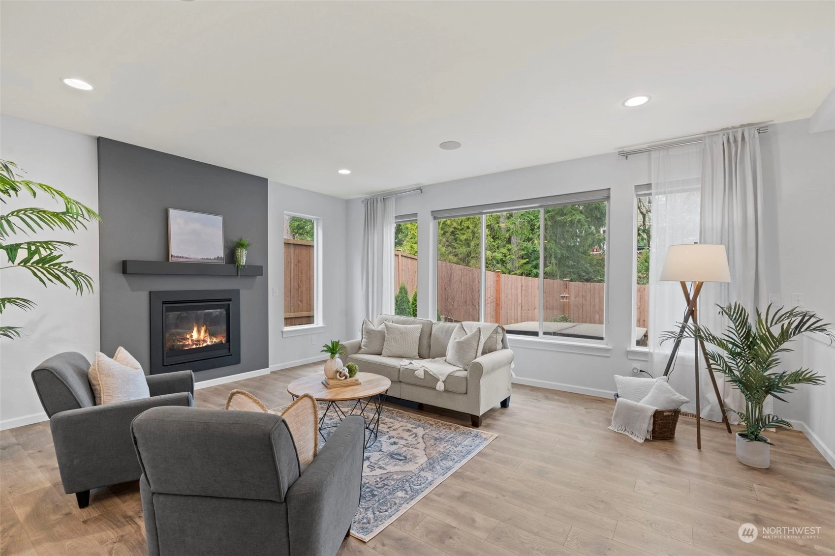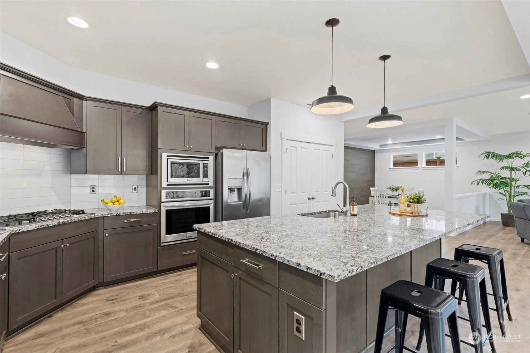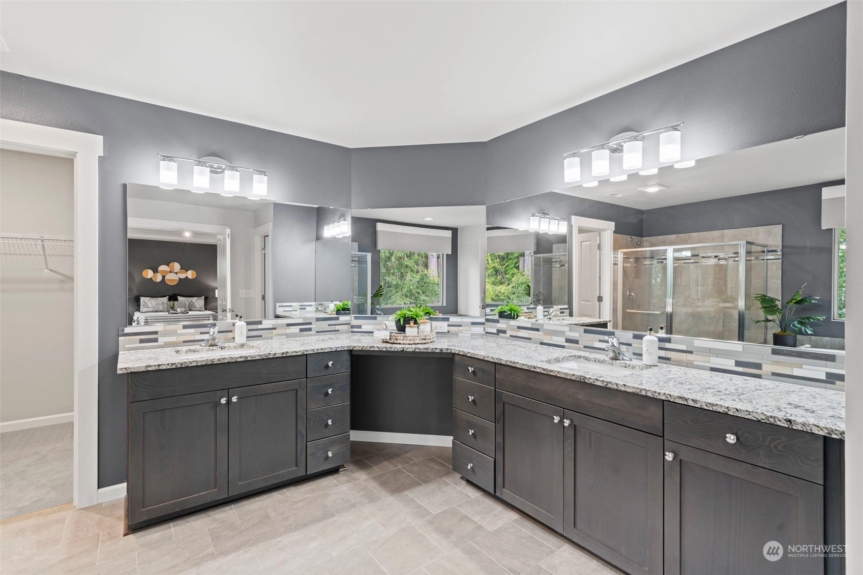 Modern, open concept, former model home on a cul de sac street. Huge primary suite with french doors to 5 piece primary bath and walk in closet. Upstairs bedrooms open up to skylit hallway and sun-filled family room with Juliette balcony. 5th bedroom on main floor can also serve as an office. Kitchen boasts 10 foot island and opens up to 2 entertaining spaces, massive dining room, and brand new backyard that backs up to a beautiful green belt. Backyard thoughtfully designed for parties, pets, with turf, hot tub and trex deck. Upgrades: finished garage with epoxy floors, custom shades in every room, built in speakers, and sprinkler system. Prime location, walking distance to school, duck pond, baseball fields, Cushman trail! Welcome Home!