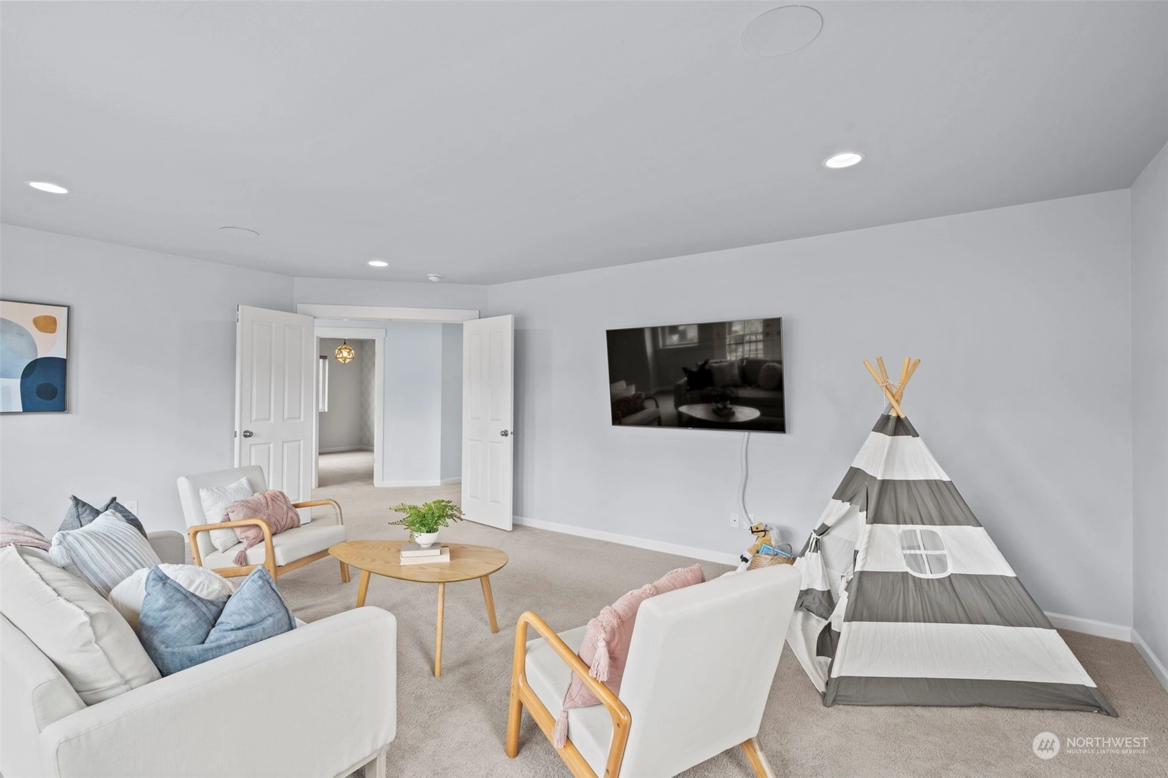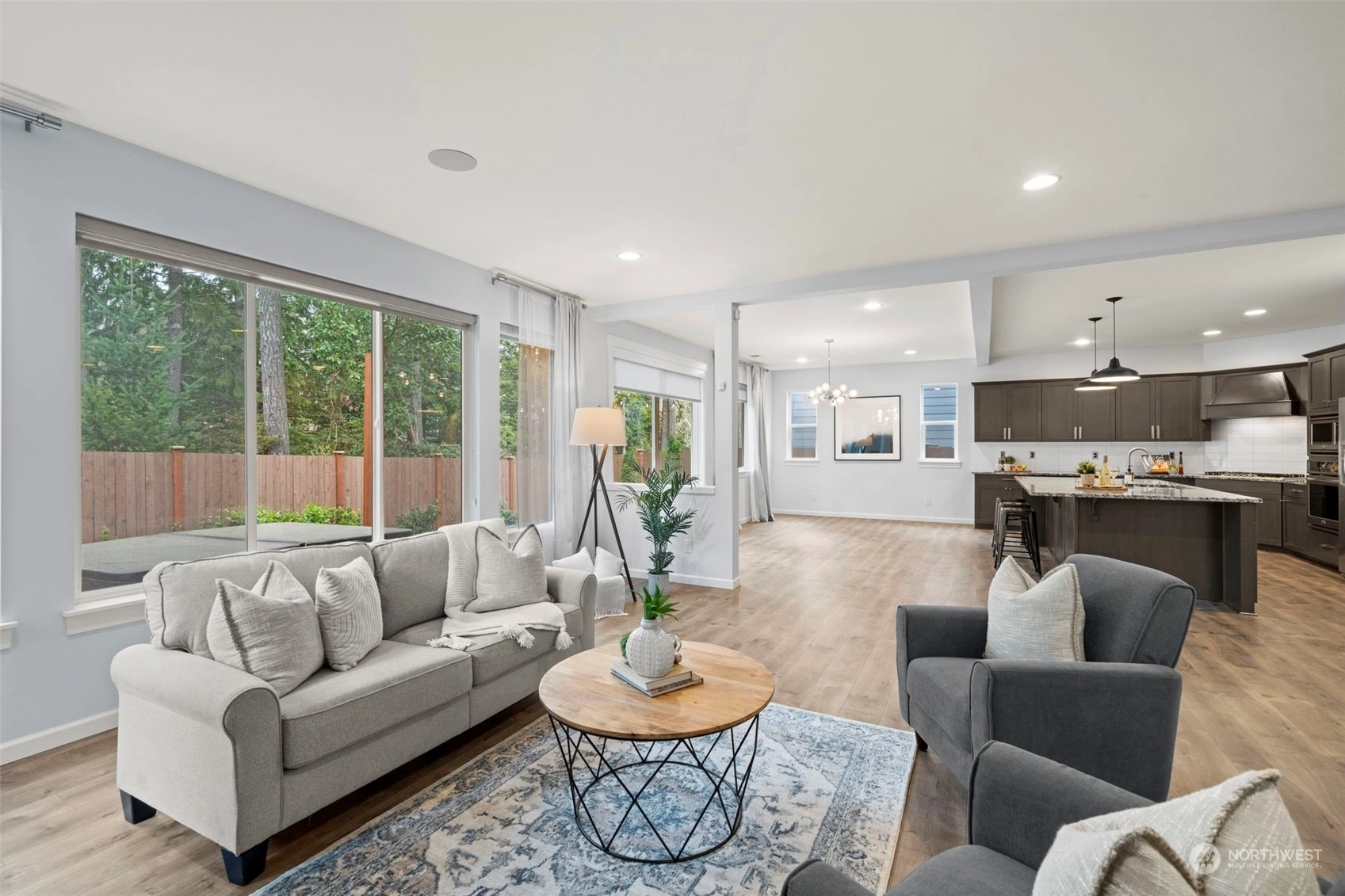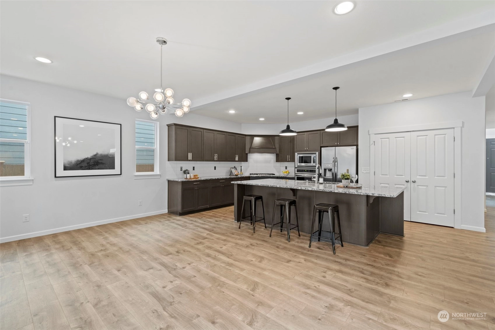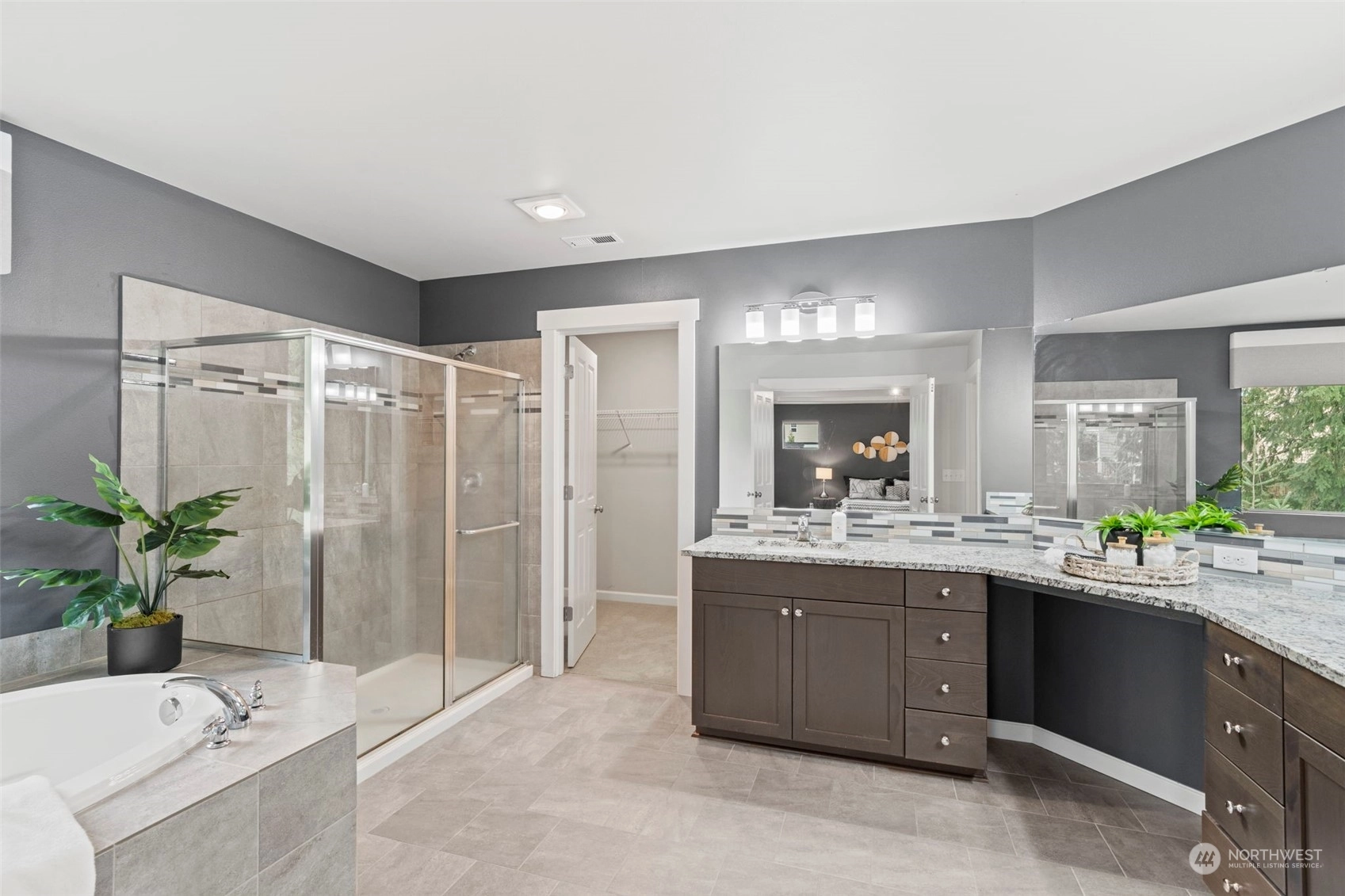 Modern, open concept, former model home on a cul de sac street. Huge primary suite with french doors to 5 piece primary bath and walk in closet. Upstairs bedrooms open up to skylit hallway and sun-filled family room with Juliette balcony. 5th bedroom on main floor can also serve as an office. Kitchen boasts 10 foot island and opens up to 2 entertaining spaces, massive dining room, and brand new backyard that backs up to a beautiful green belt. Backyard thoughtfully designed for parties, pets, with turf, hot tub and trex deck. Upgrades: finished garage with epoxy floors, custom shades in every room, built in speakers, and sprinkler system. Prime location, walking distance to school, duck pond, baseball fields, Cushman trail! Welcome Home!