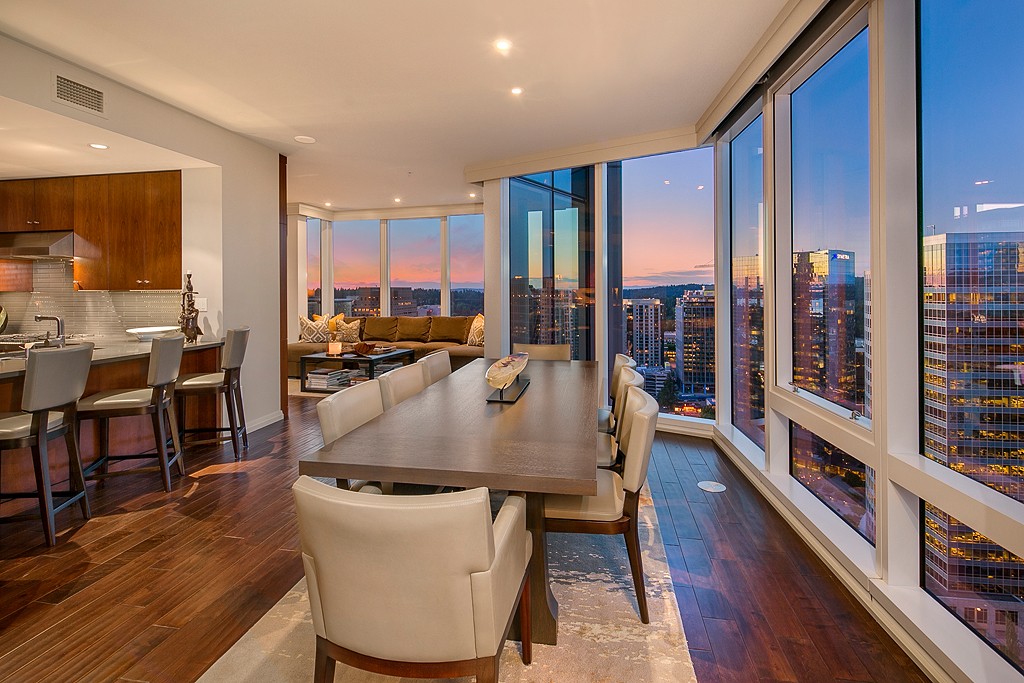 Live in the pinnacle of “Luxury” in this well dressed, stylish urban home. Exquisitely enhanced interiors, professionally sculpted to provide seamless design with a contemporary flair. Bold architectural lines blend form and function together as one. Located high above the pulse of Downtown Bellevue’s urban core. From brilliant sun rises to the shimmer of Bellevue’s evening city lights. Elegant living with effortless convenience. Amenities include 24 hour concierge, spa, and fitness center.