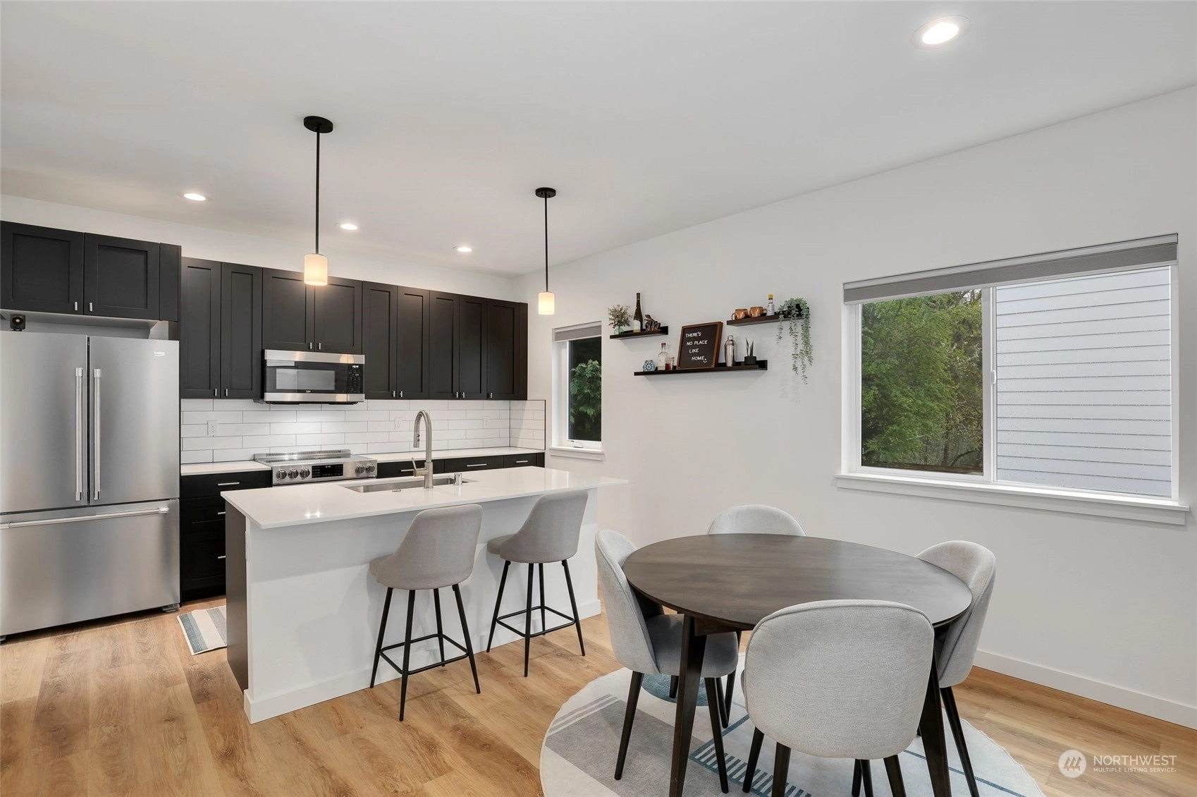 Sophisticated Standalone Modern Home in a cozy 6-unit community (constructed in 2022). Sleek kitchen with quartz island, bright & spacious living room, luxurious primary w/ designer tile finishes, exceptionally large bedrooms. Expansive windows that draw in abundant natural light. Private deck adjacent to kitchen, high-efficiency ductless mini-split heating & AC, rare attached garage. Minutes from Lake Washington—perfect for boating, biking, and enjoying water sports throughout the summer. Ideally located near public transit, light rail, shopping. No HOA dues.